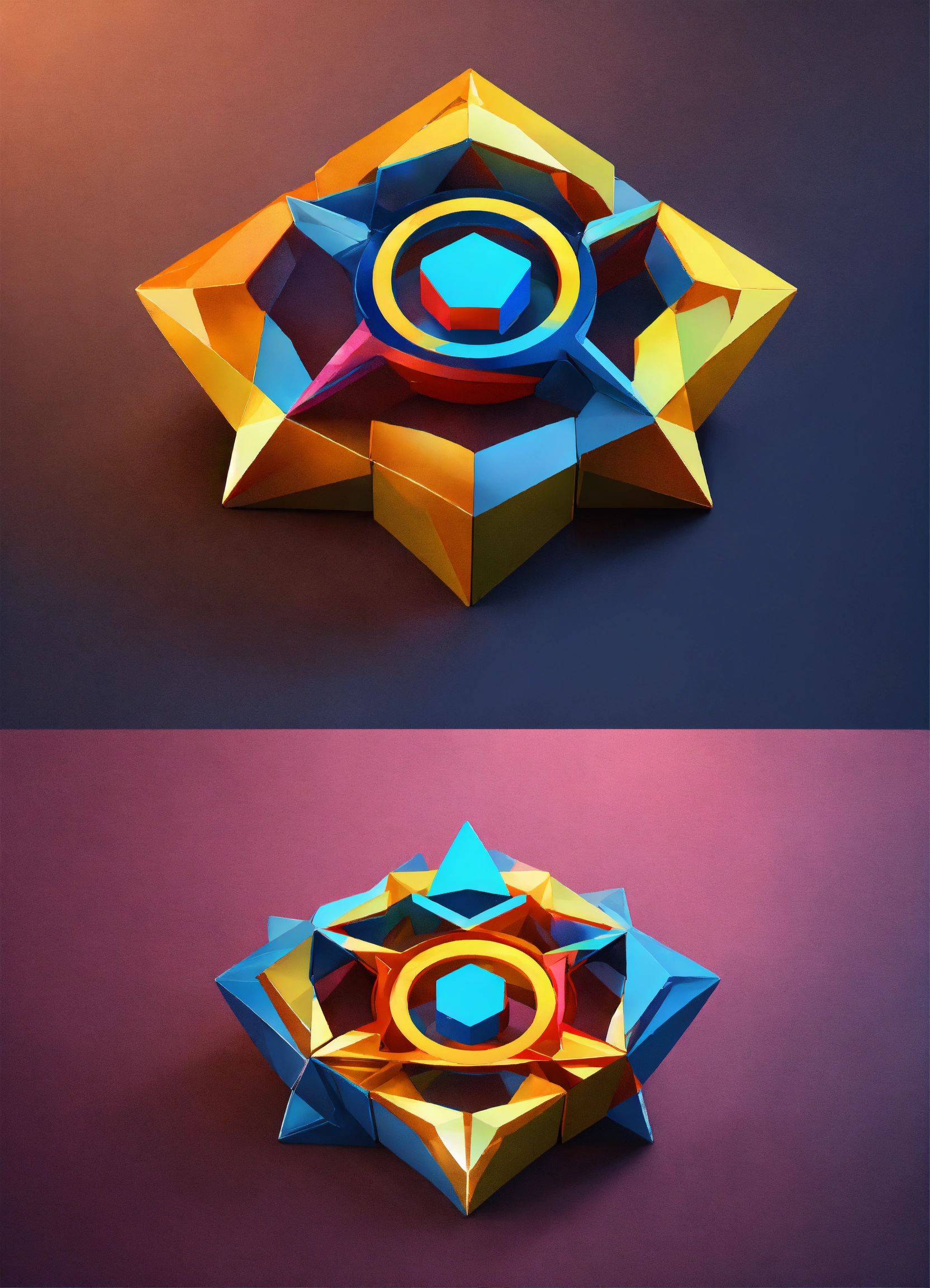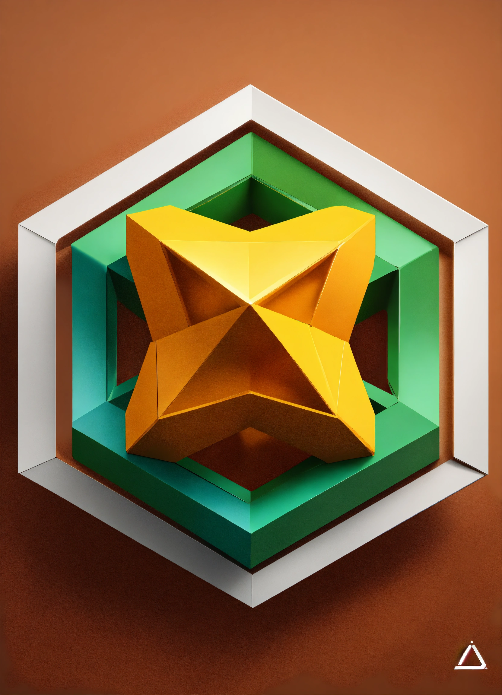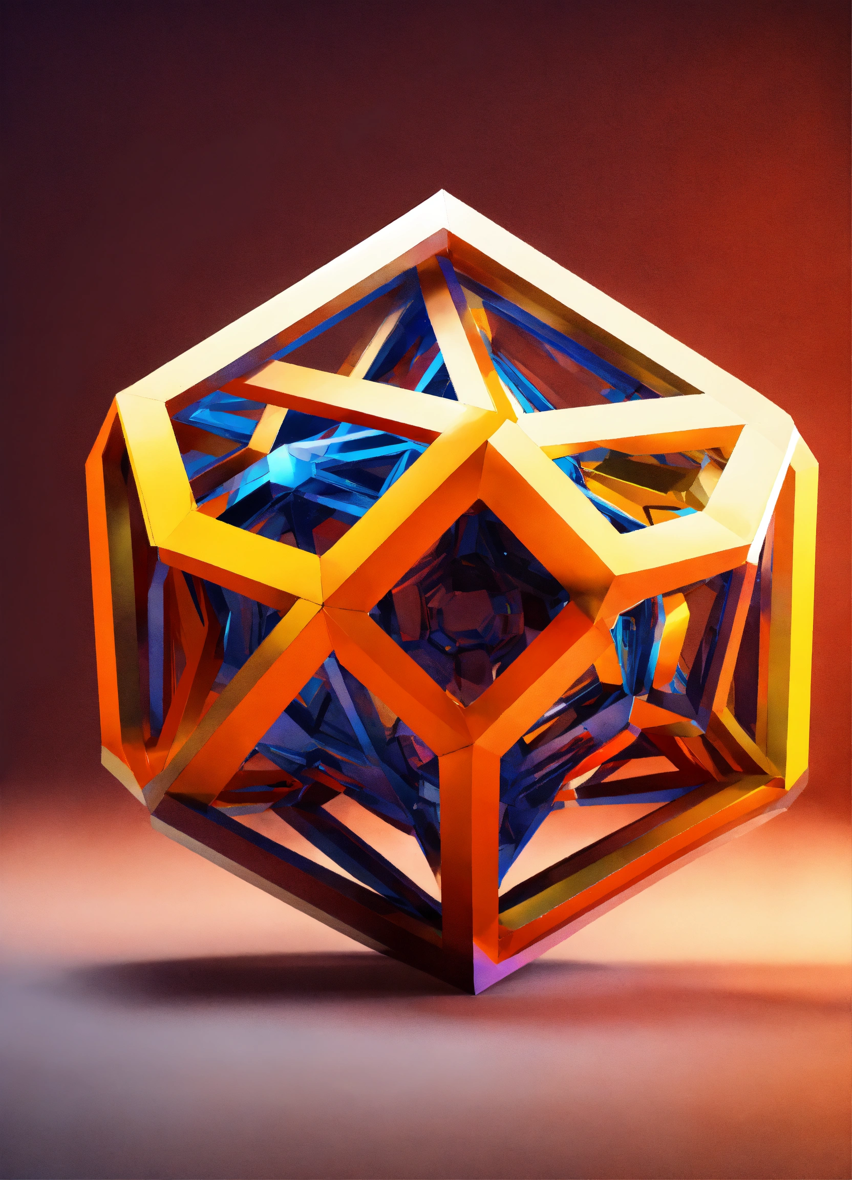 Logotipo enmarcado en un pentagono 3d, para un diseño que muestre una conciencia cuántica, marca, atomo, lupa, sofisticación, corporativo moderno, sin texto, moderno, arte vectorial, logo, icono de átomo, ciberspace, google, seo.