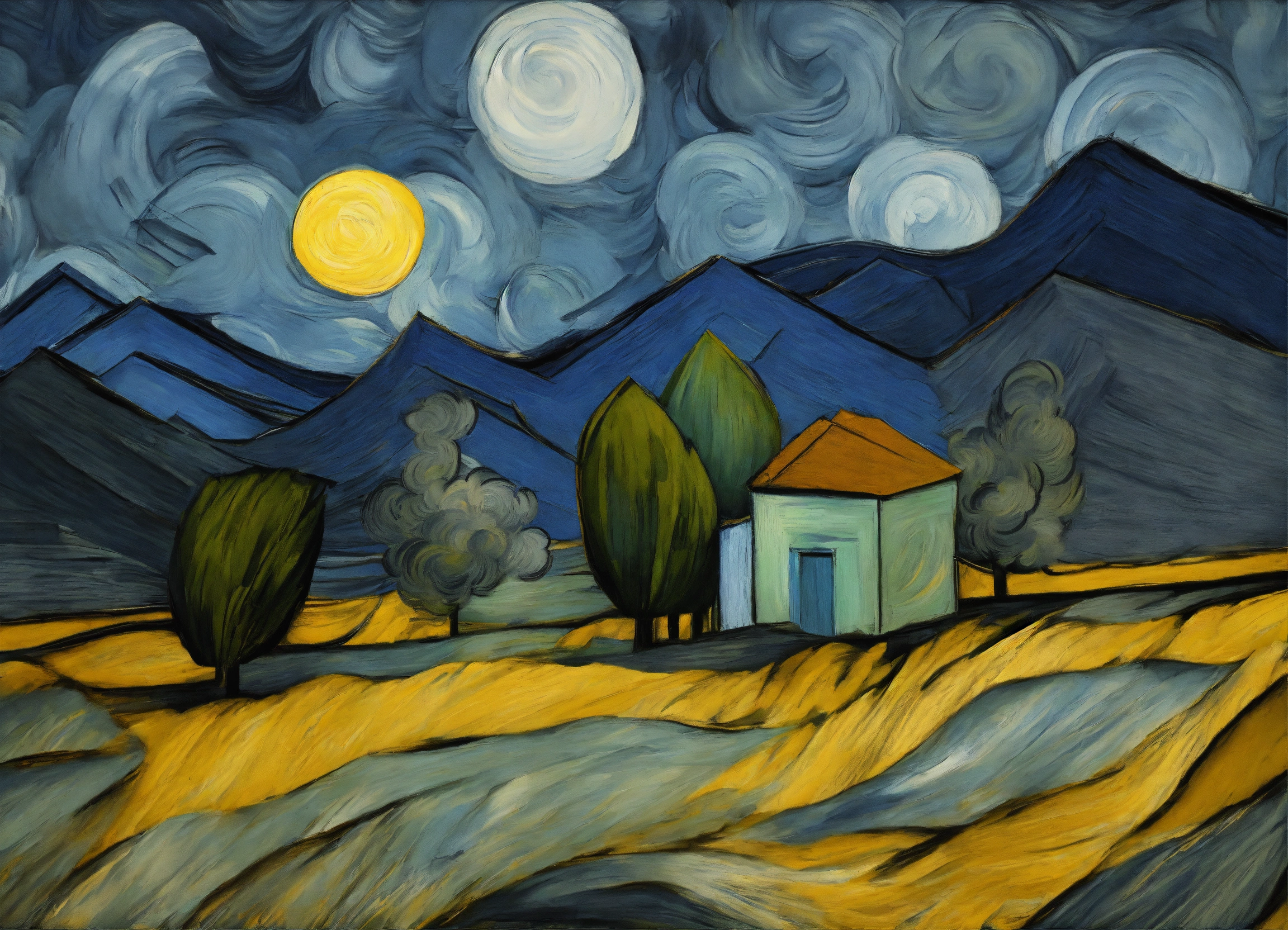 Abstract art abstraction abstract sketchup moonlight vincent van gogh charcoal cubism