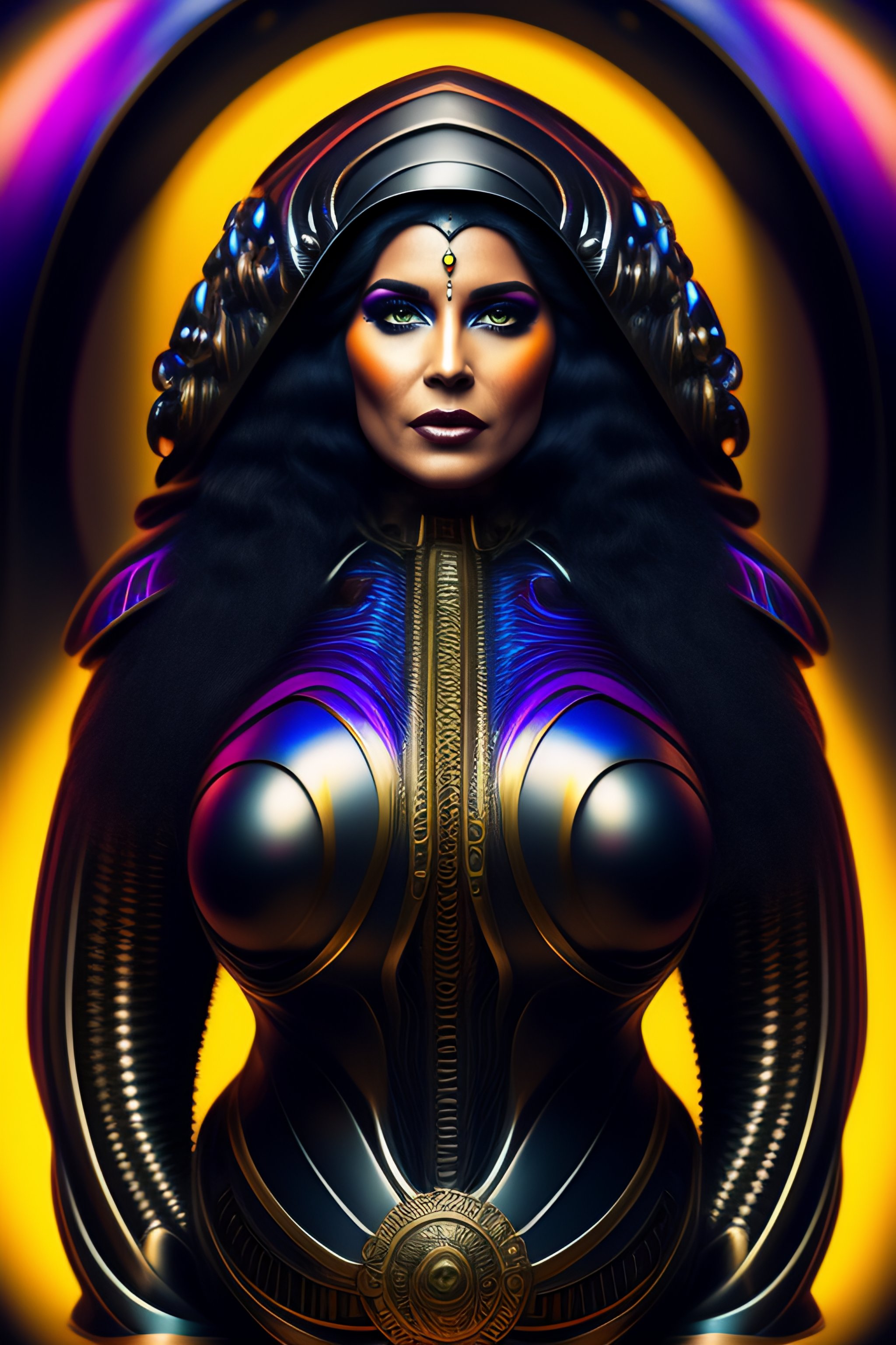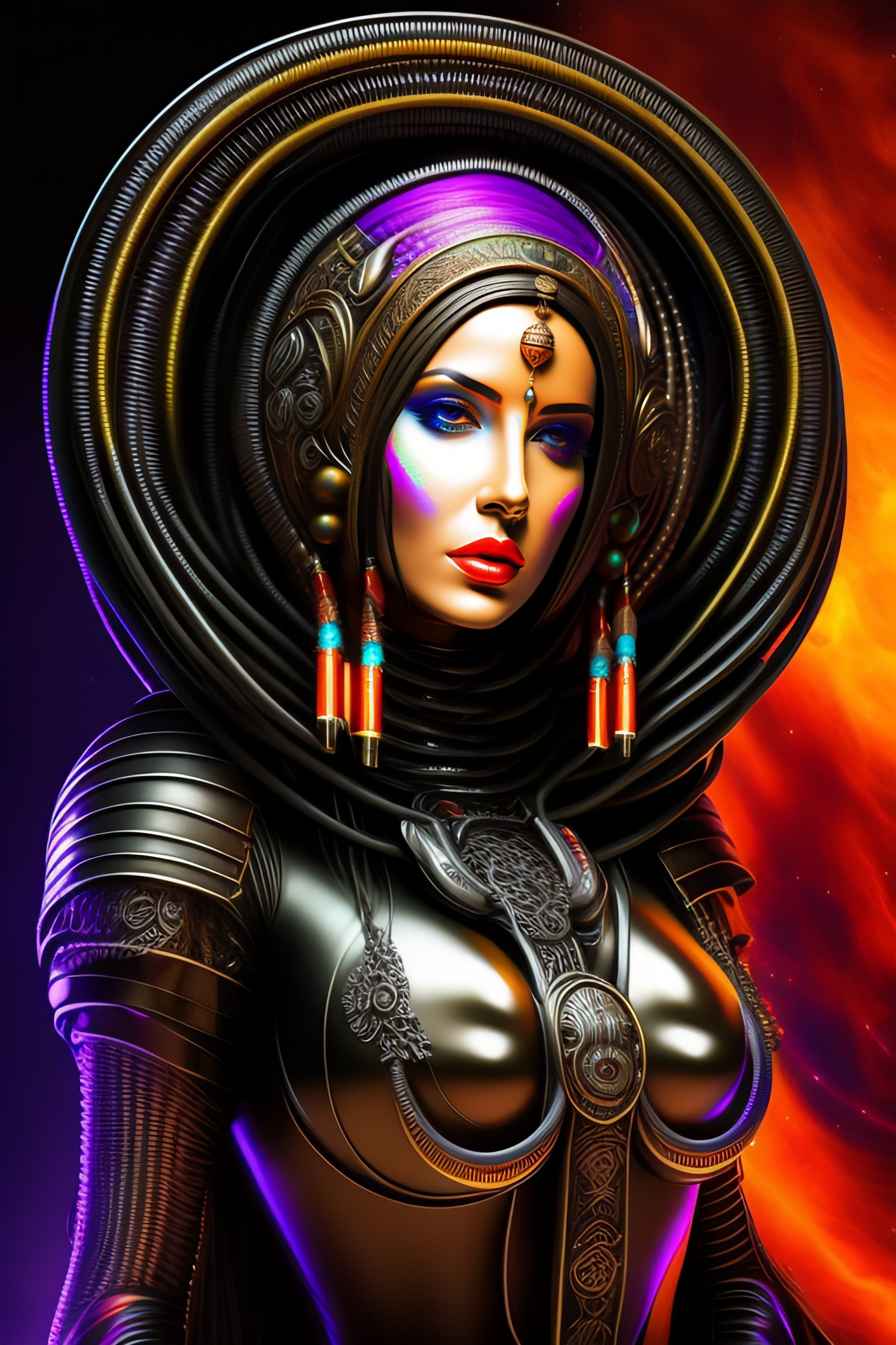 Estilo hr giger. mujer ciborg. alienígena. futurista. barroco. cables