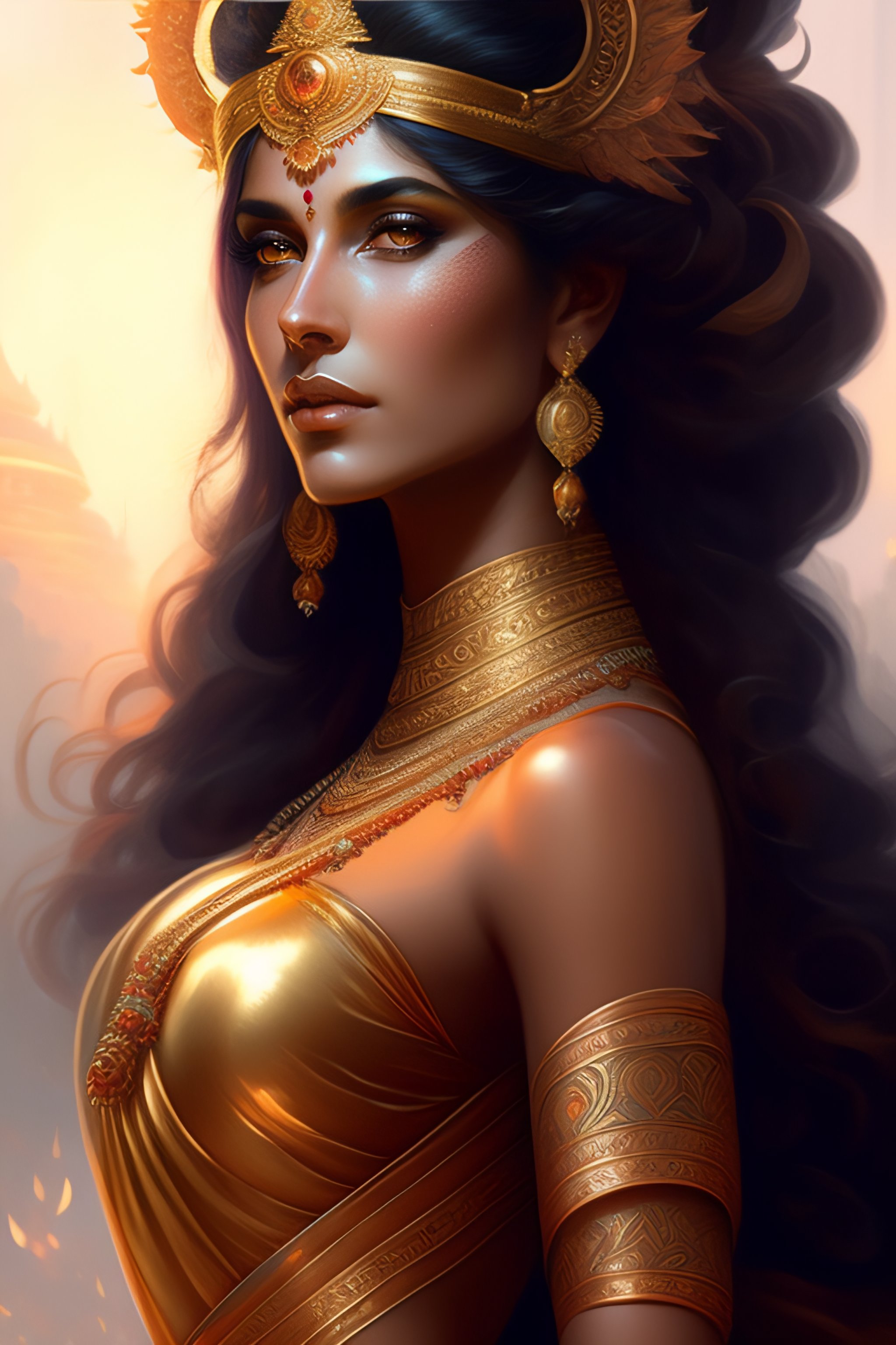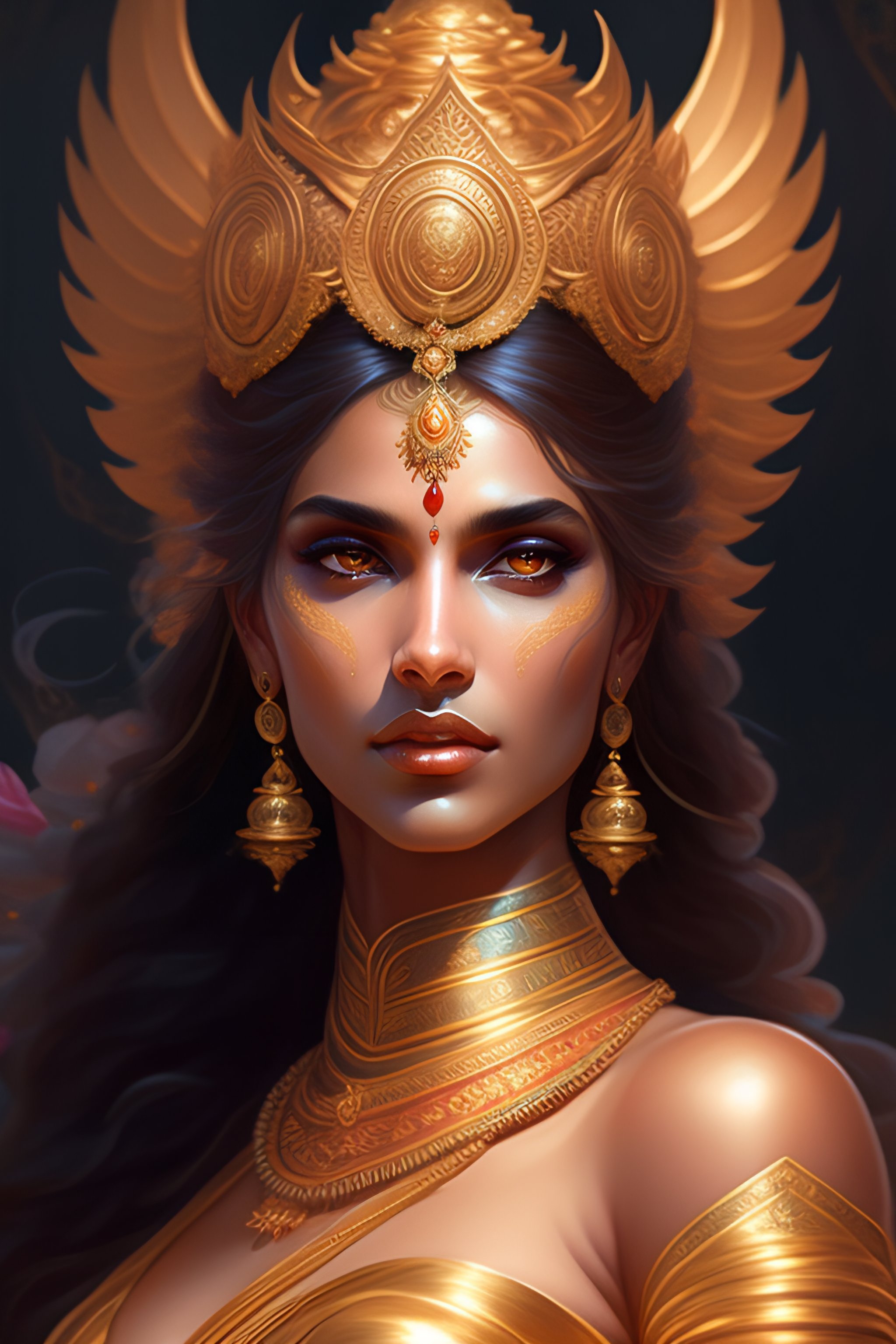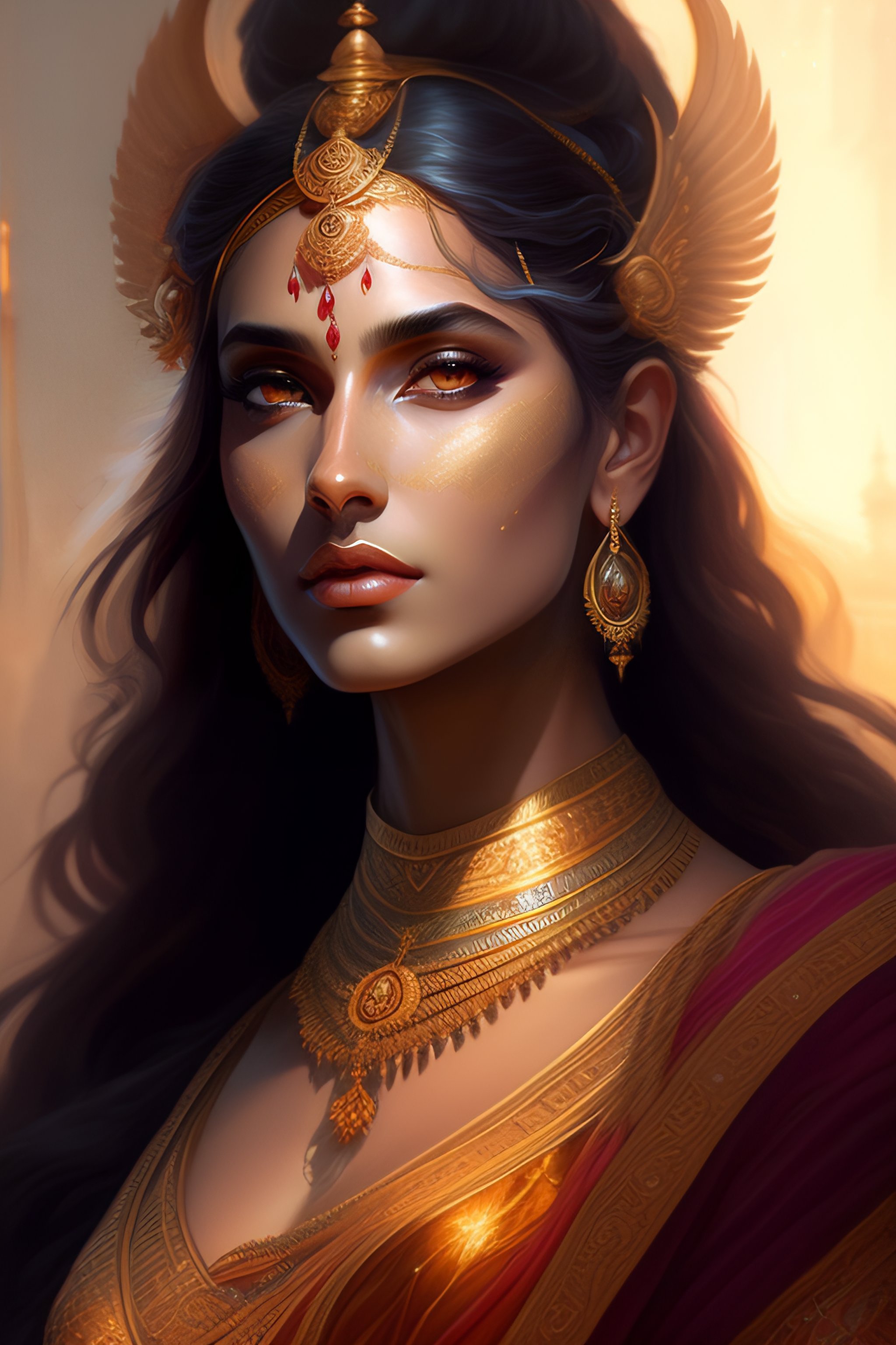 Image of goddess devi, d & d, beautiful, renaissance, fantasy, intricate, elegant, hindu, highly detailed, digital painting, artstation, concept art, smooth, sharp focus, illustration, art by artgerm and greg rutkowski and alphonse mucha