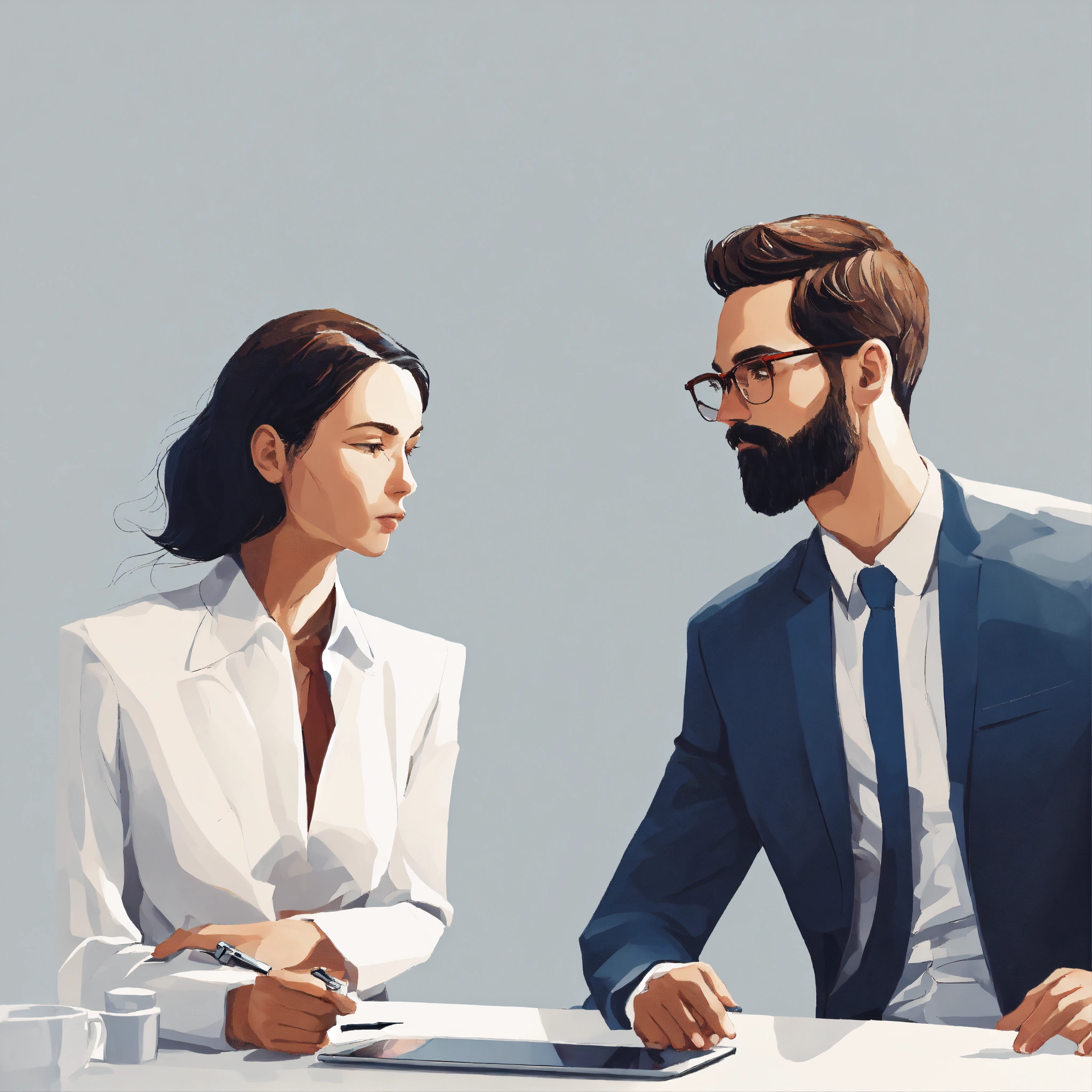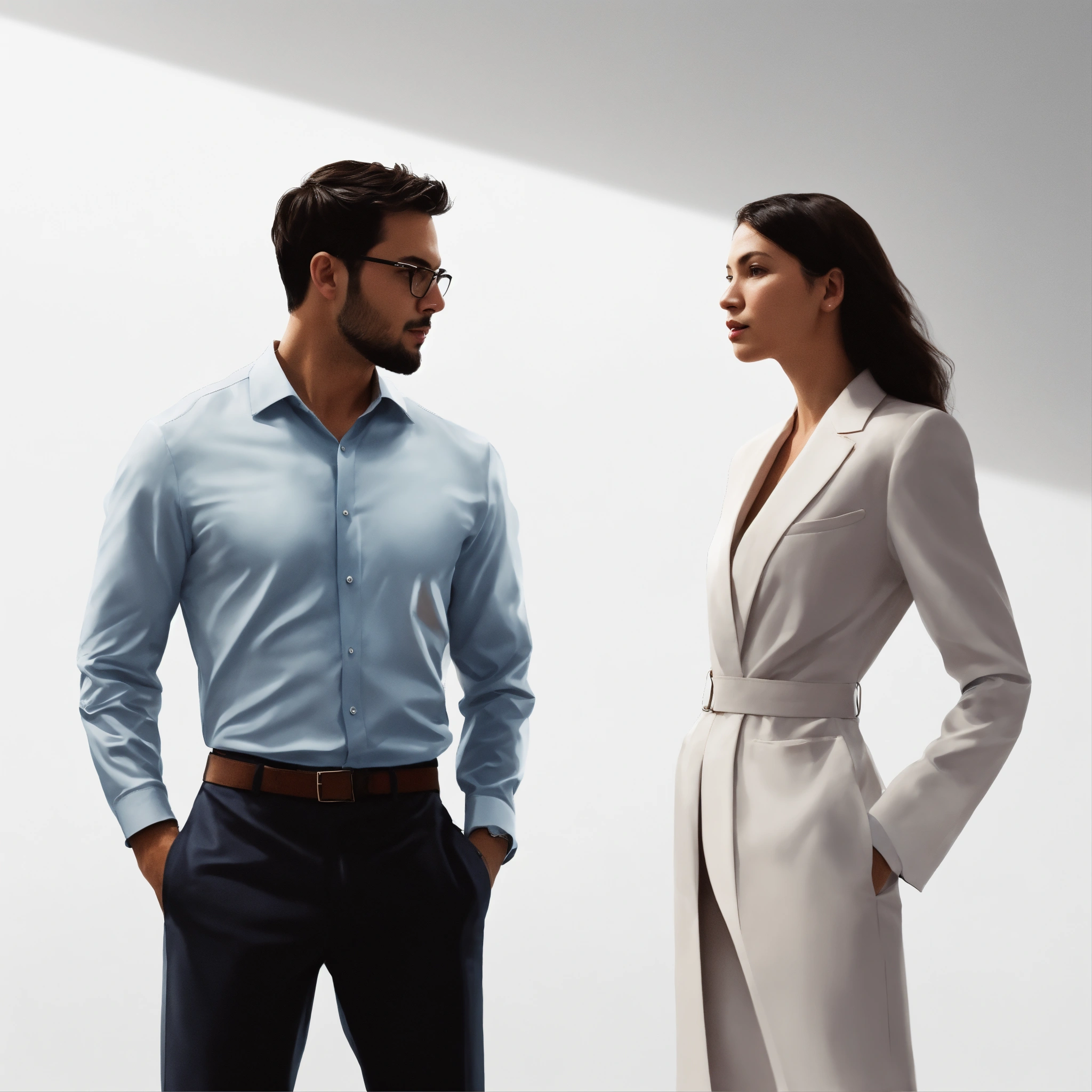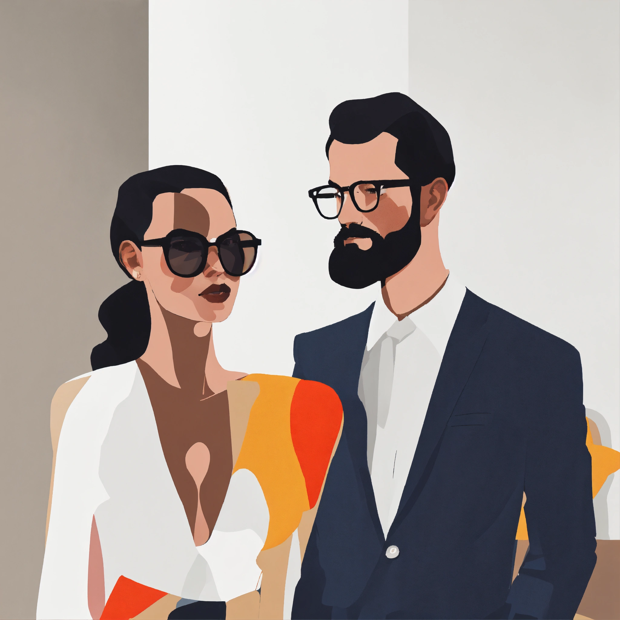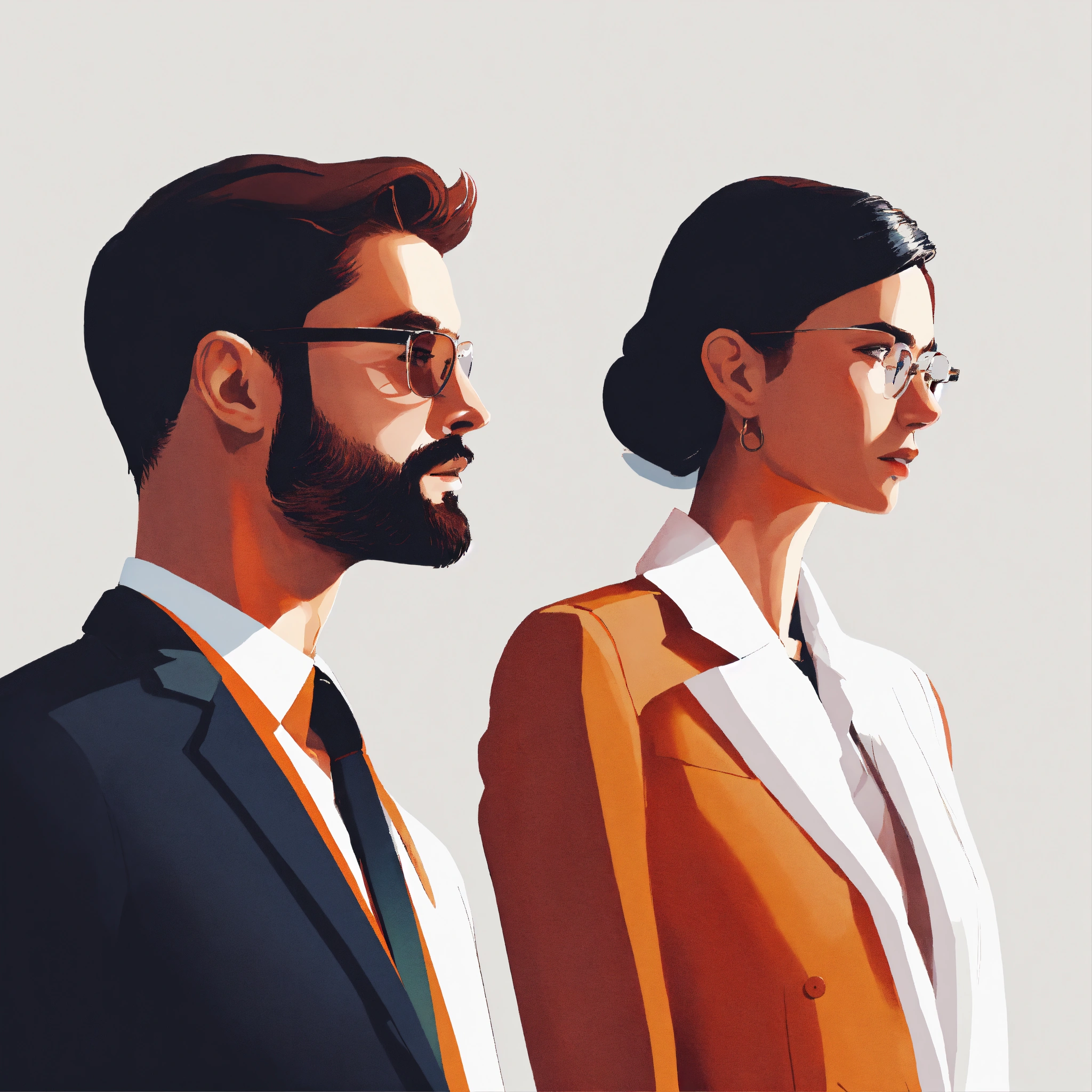 An illustration of a disruptive entrepreneur man and woman on a pure white backdrop in minimalism