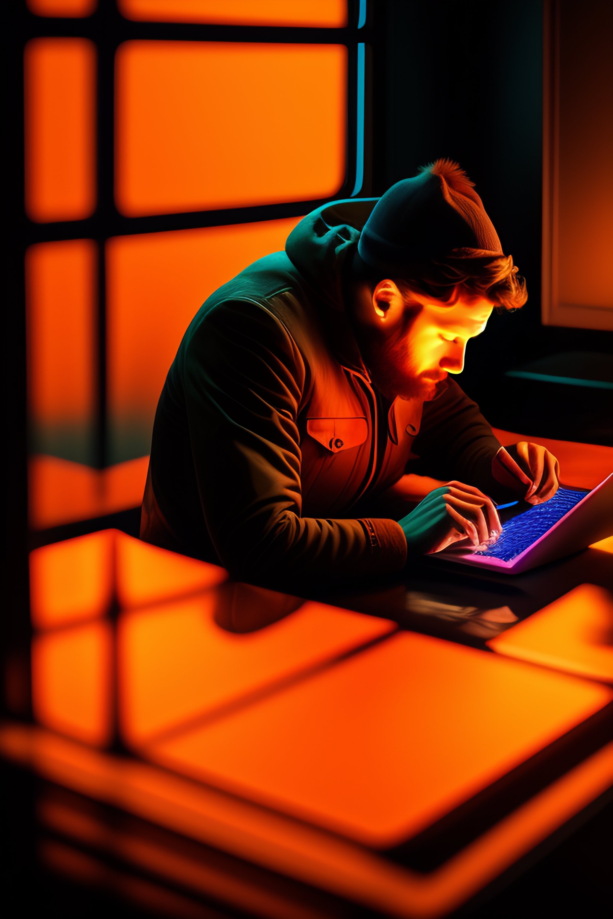 writing code with his laptop