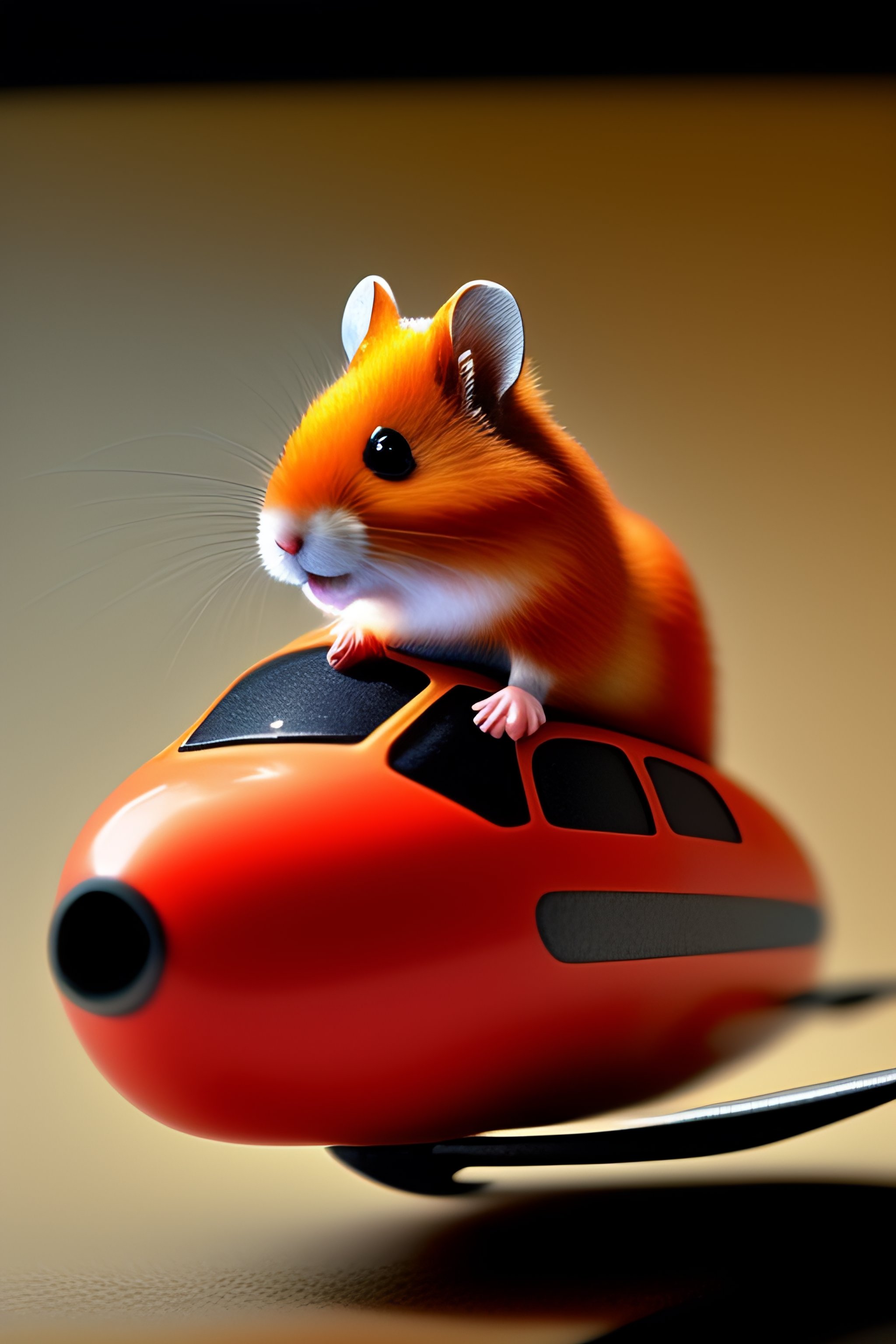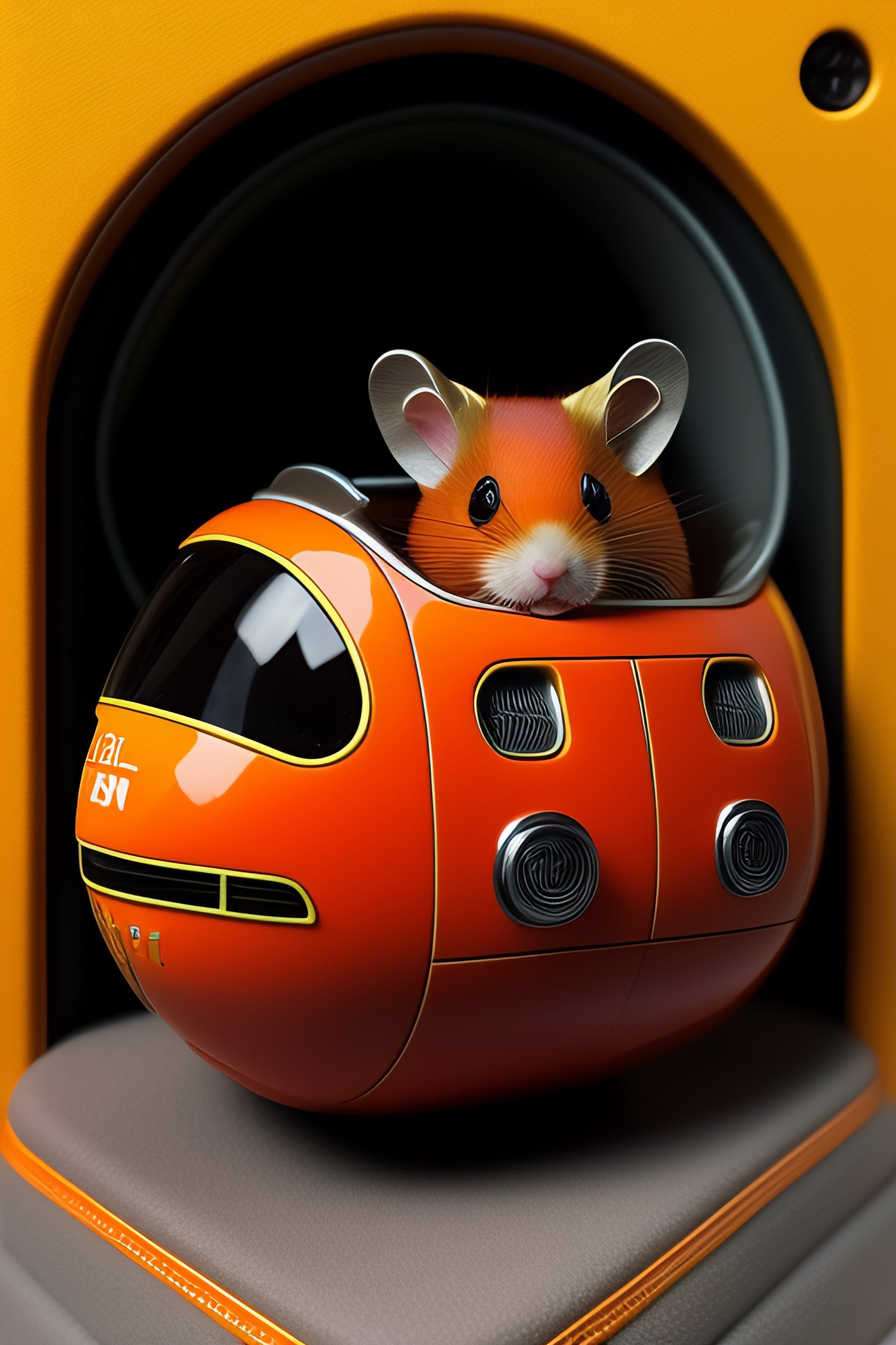Anthropomorphic red hamster pilot wired to commands, detailed minimalist interior cockpit, hyperdetailed, by john blanche