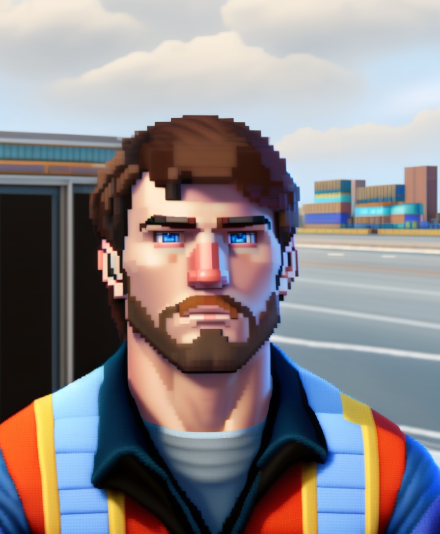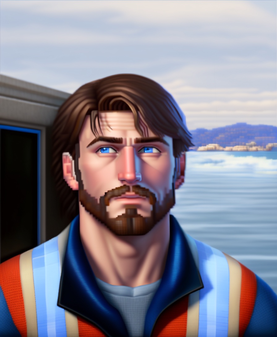 "photorealistic pixel painting", "project zomboid", survivor, "scruffy beard", tired, "frowning man", "dark brown hair", "tired blue eyes"