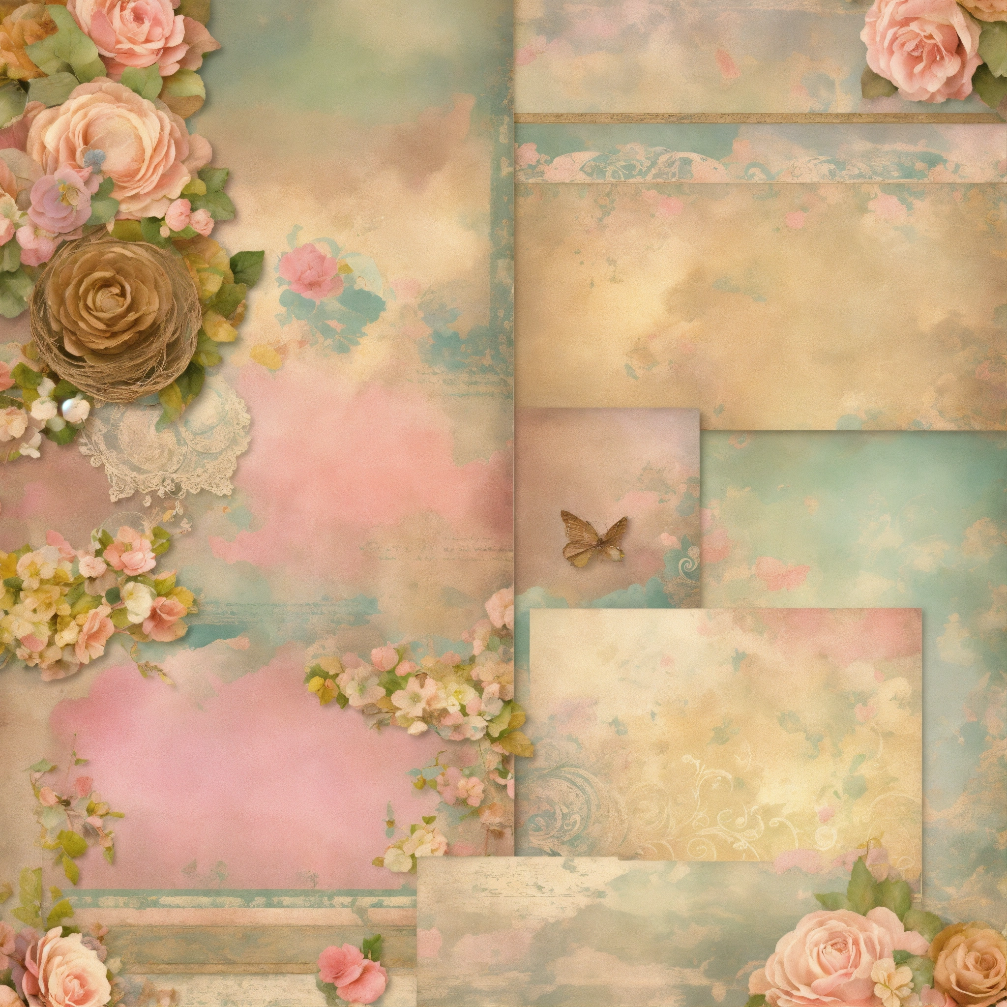 Shabby chic dreamy mist pastel junk journals vintage toy seamless abstract patterns, fullpage full page, ephemera digital paper, textured digital paper, scrapbook, decoupage, papercraft, antique texture swirling magical fairytale abstract art style
