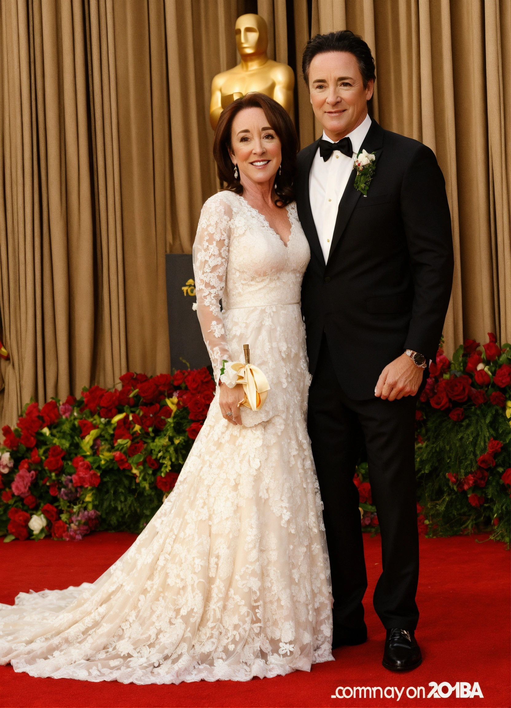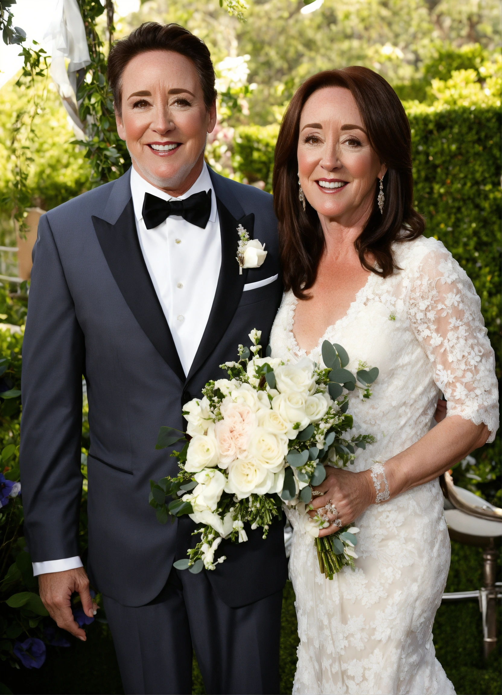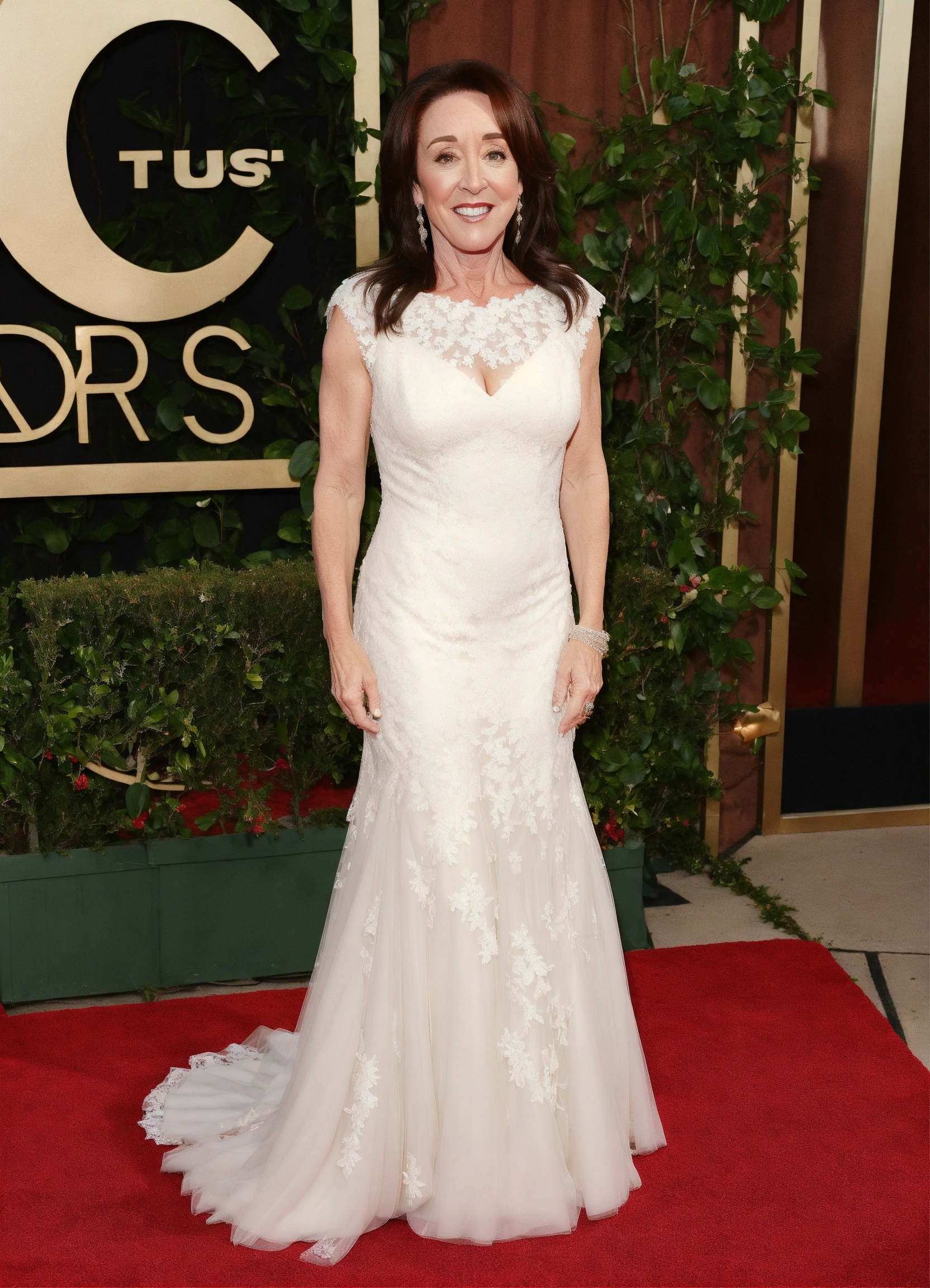Patricia heaton wearing a beautiful white lace wedding gown