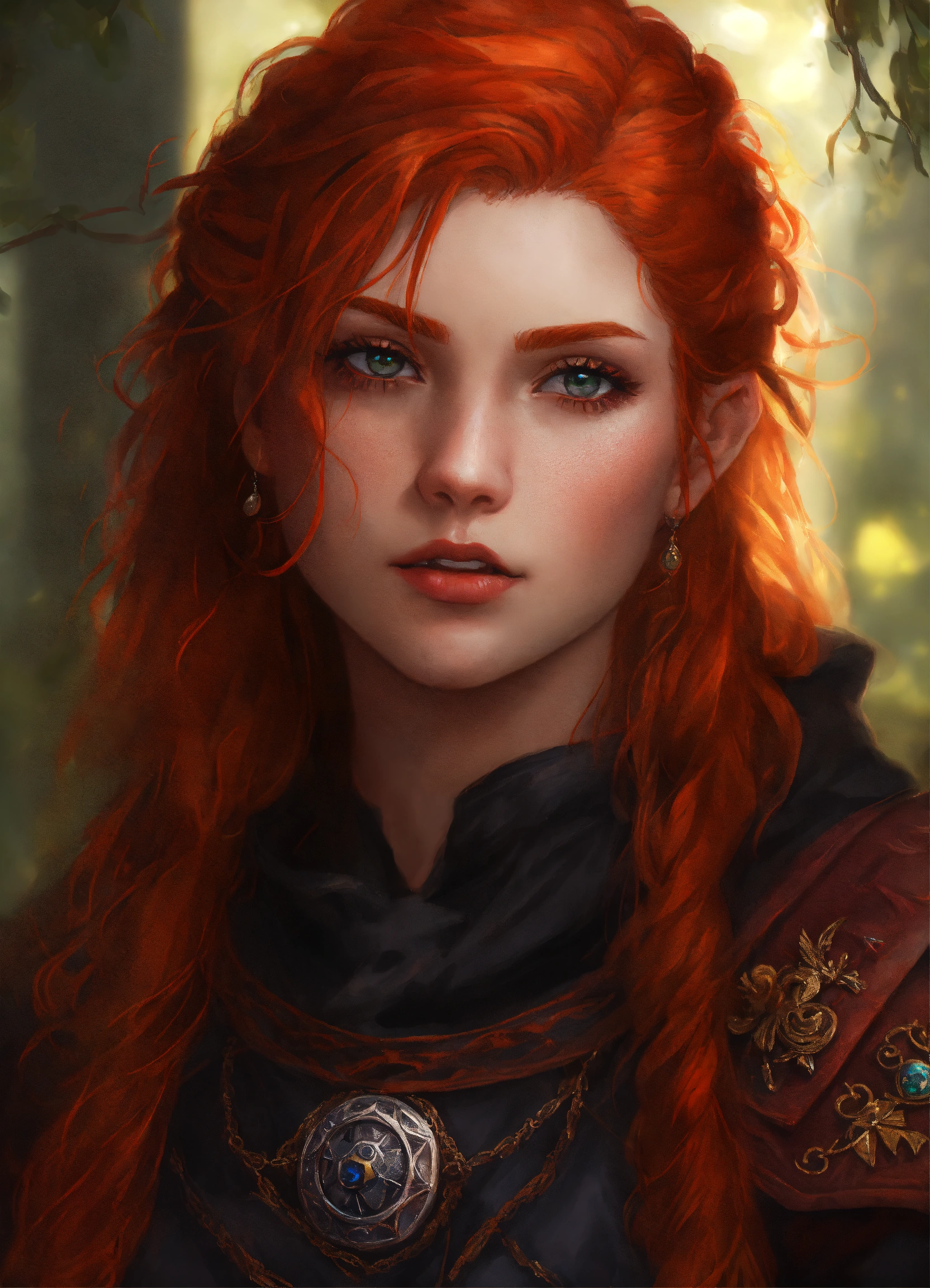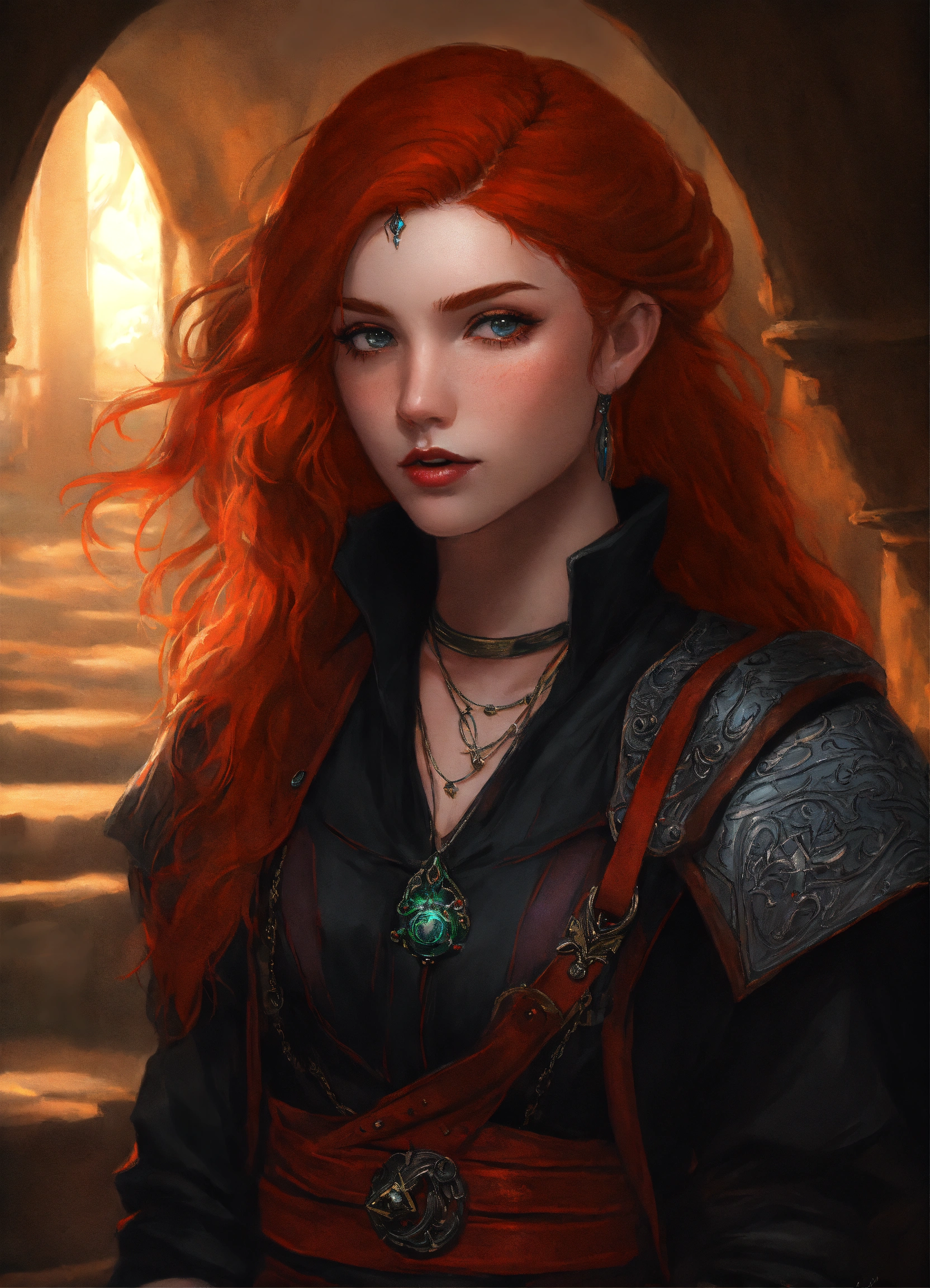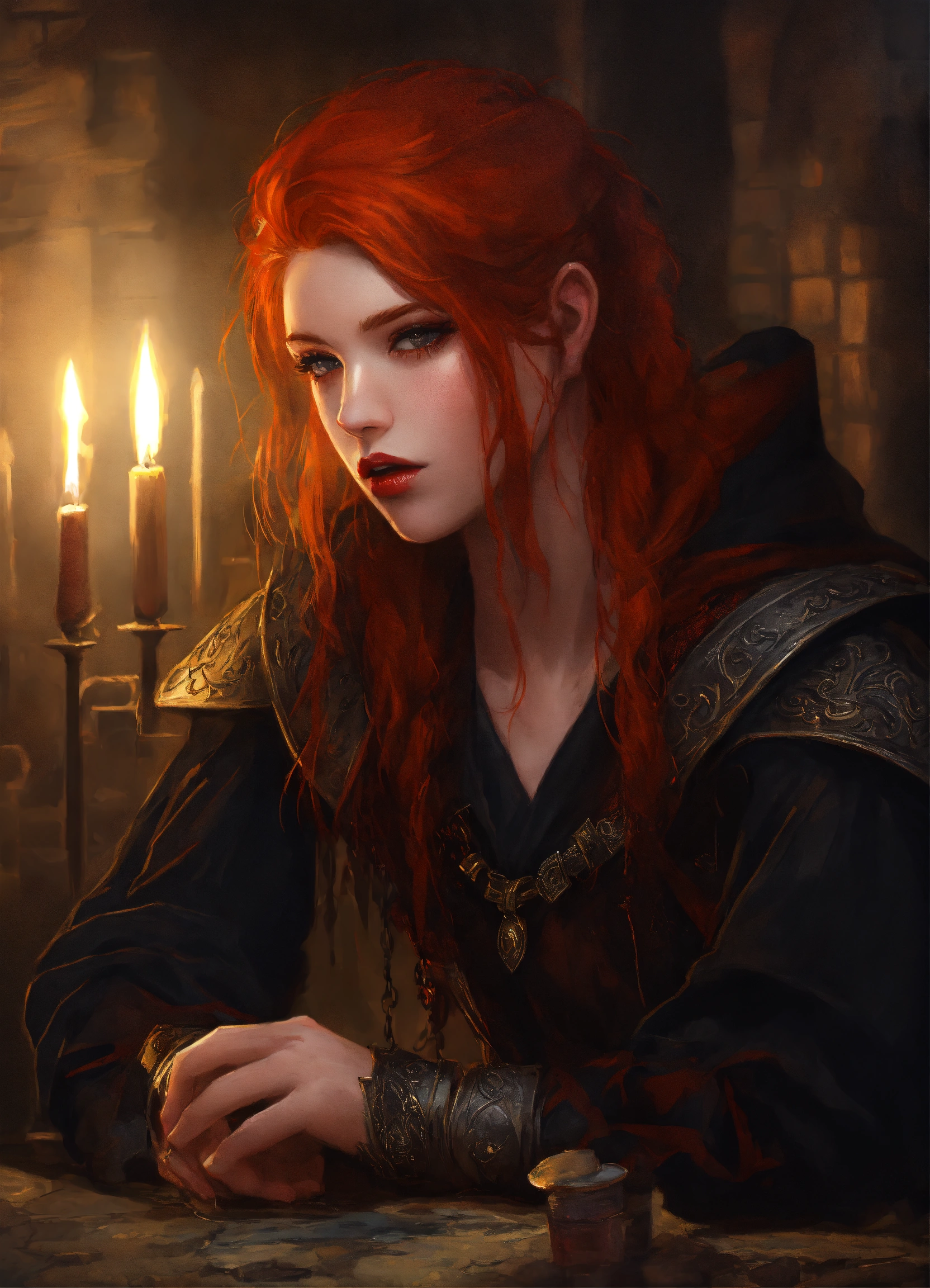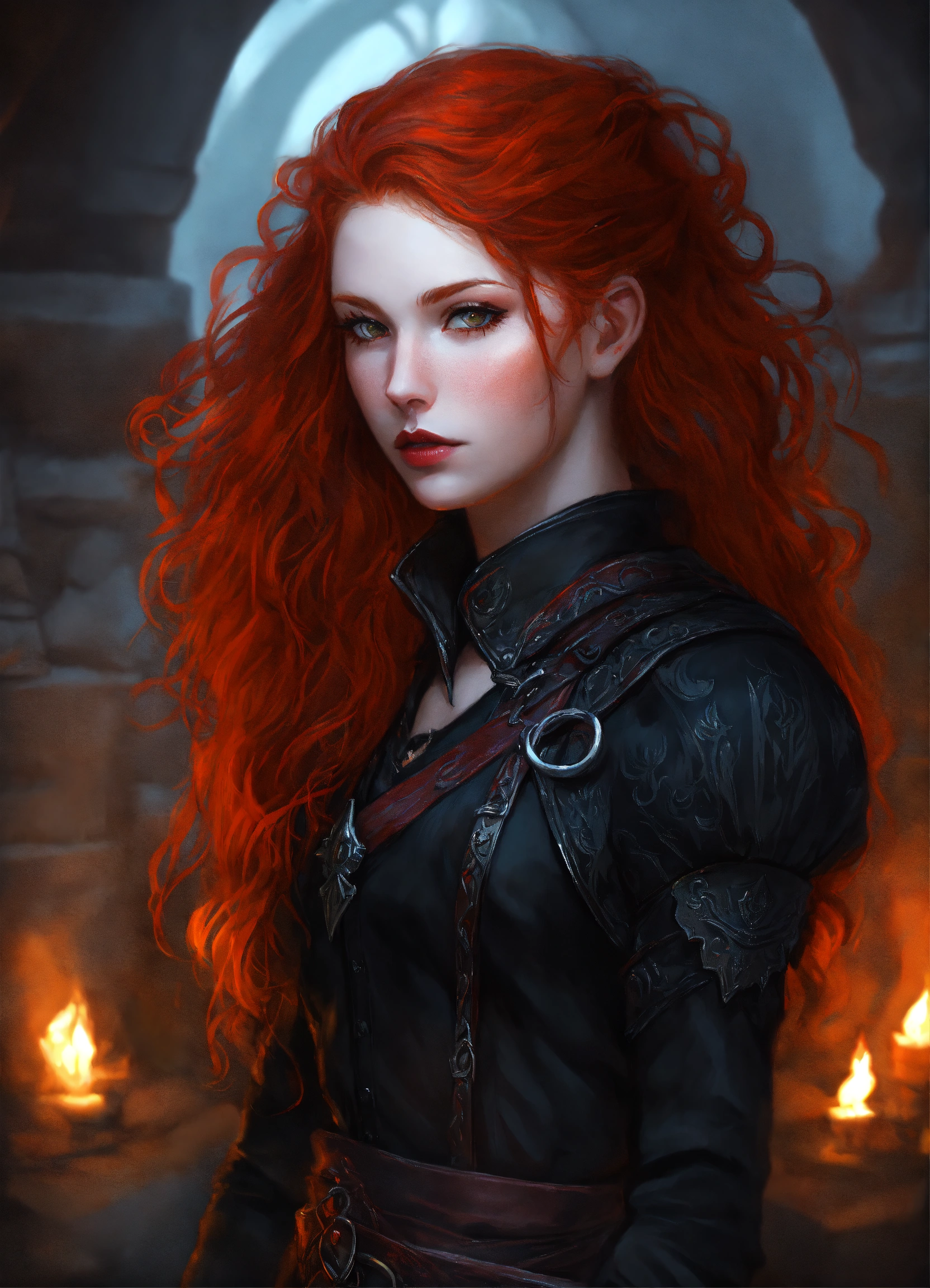 18 year old red head goth realistic art fantasy dungeons and dragons