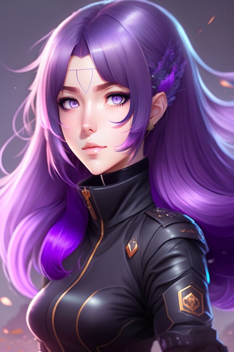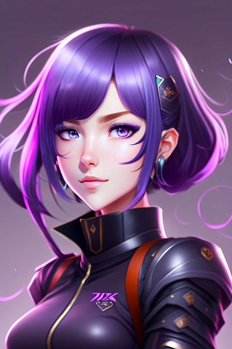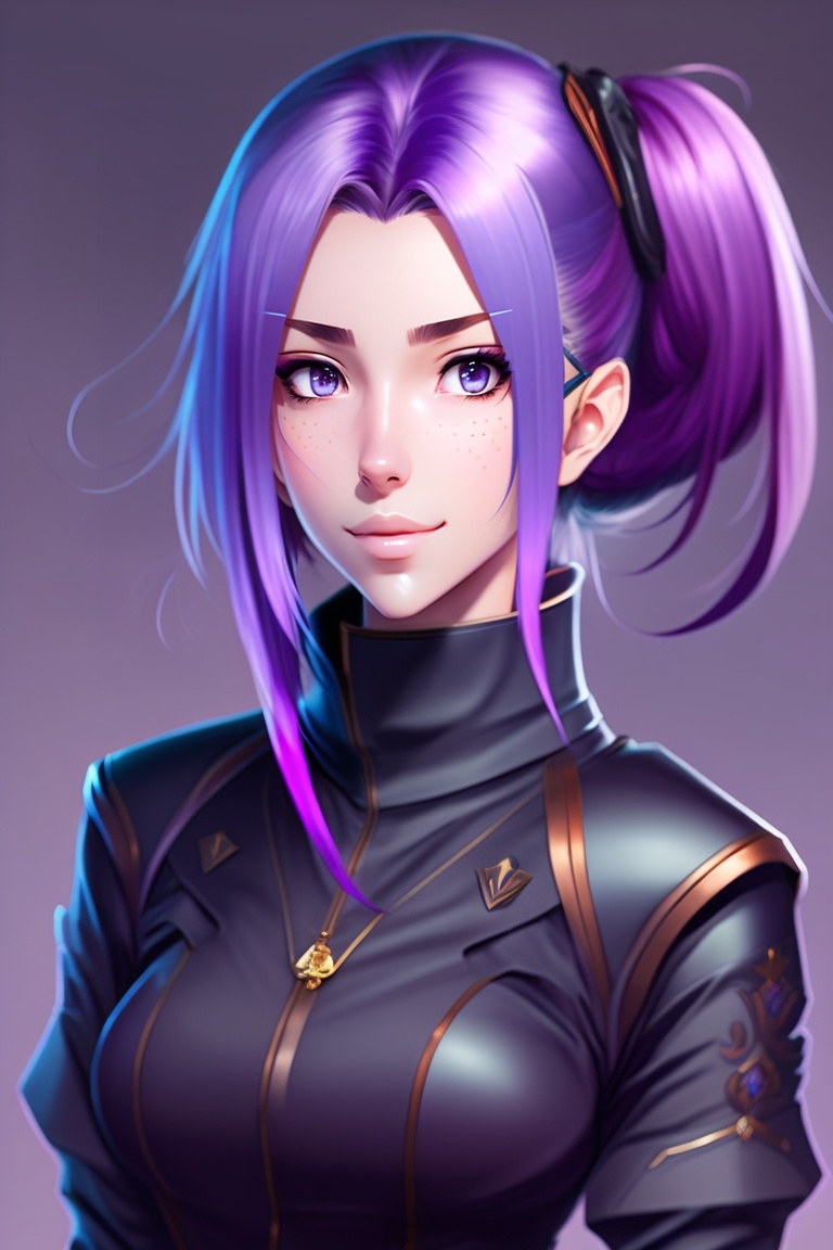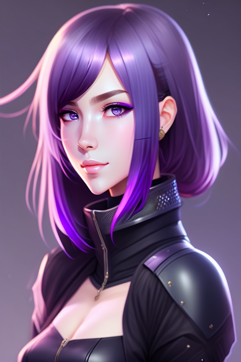 Anime girl with purple hair and sharp fangs