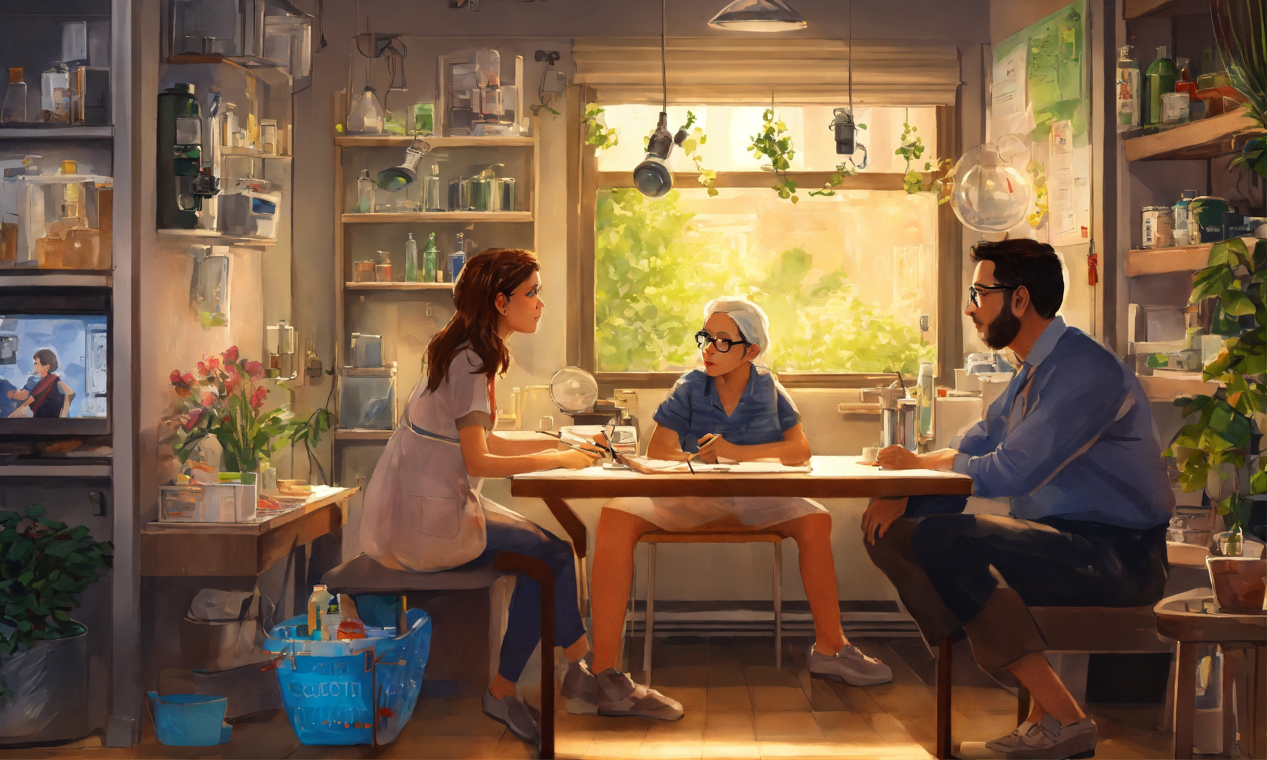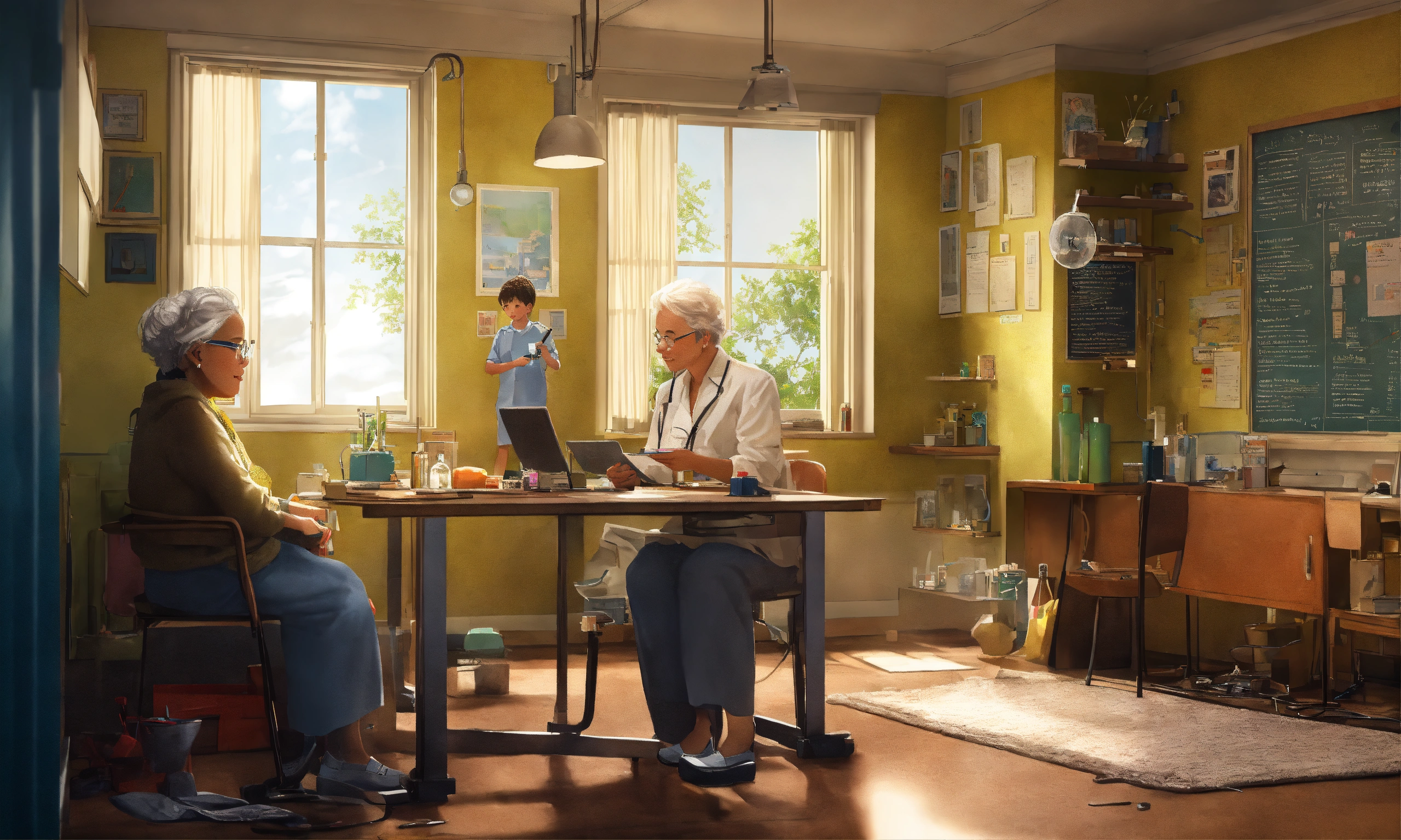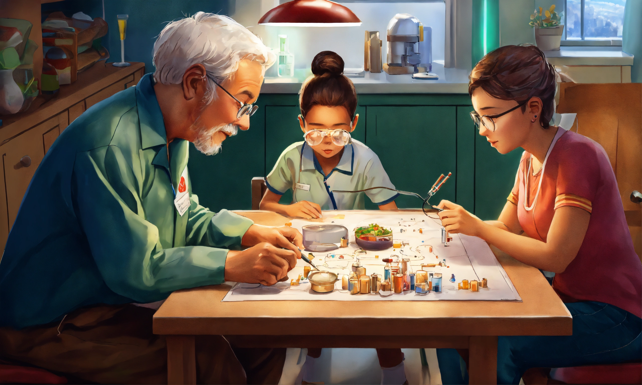 Draw a photorealistic picture that shows how science is improving common human lives and helping them make smarter decisions without depending on experts. show normal people like grandmothers, kids and poor people in the picture.