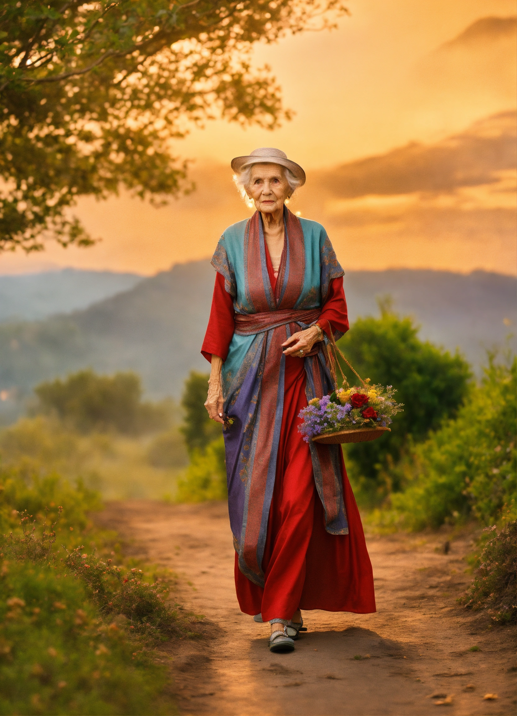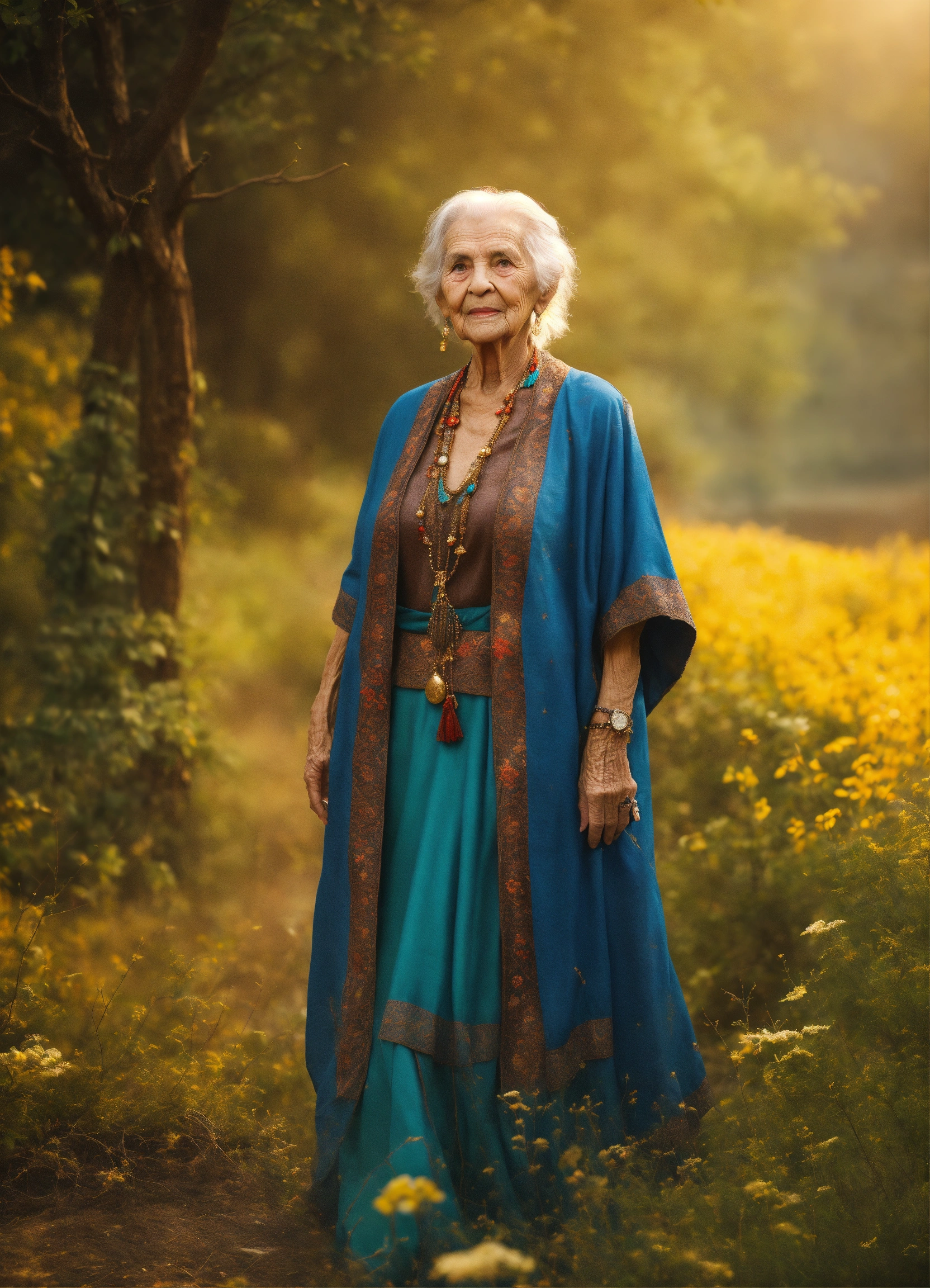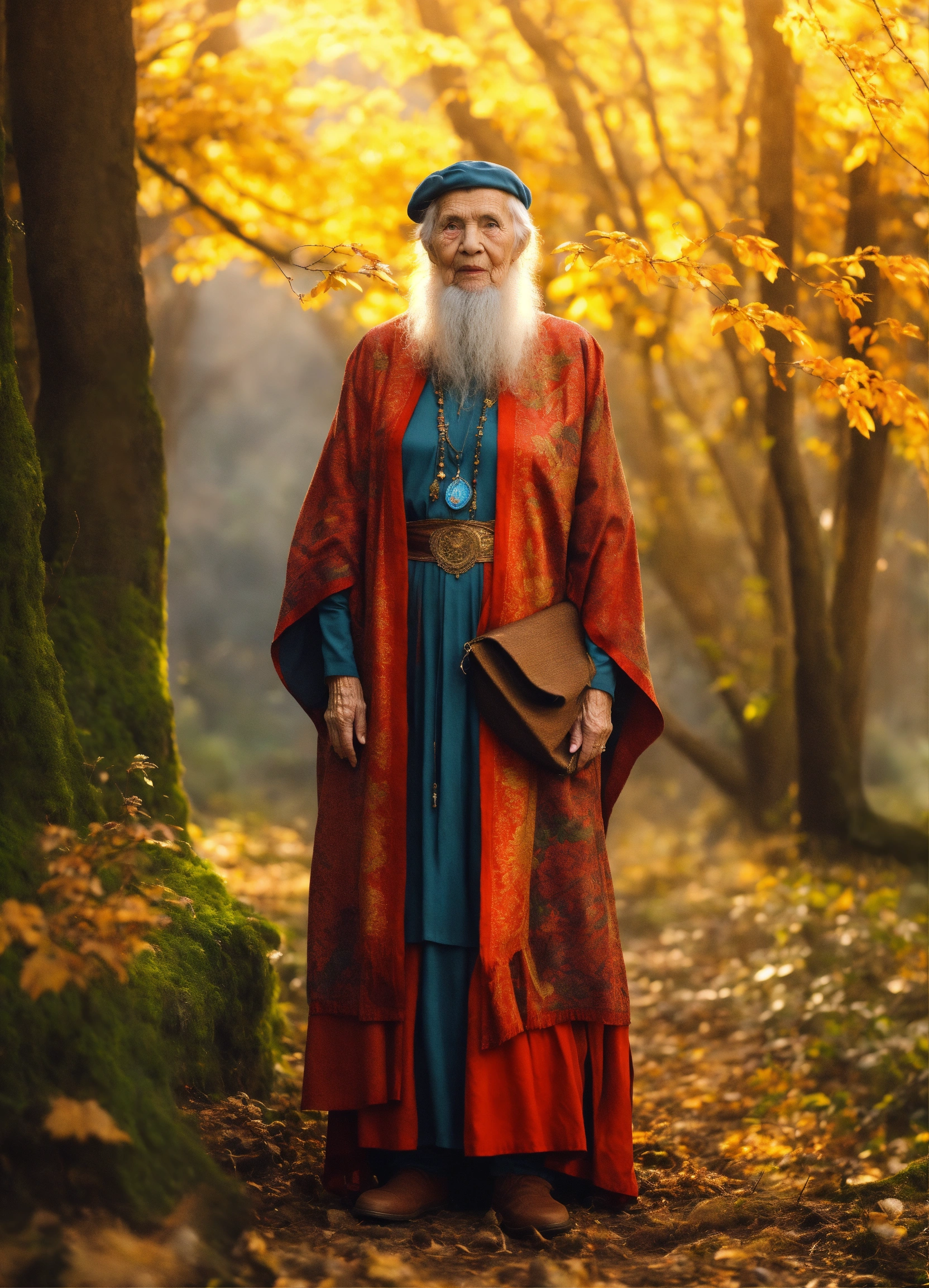 A ultra beautiful full body elderly person of nature in the most beautiful clothes in a mystical world perfect clarity photorealistic high definition