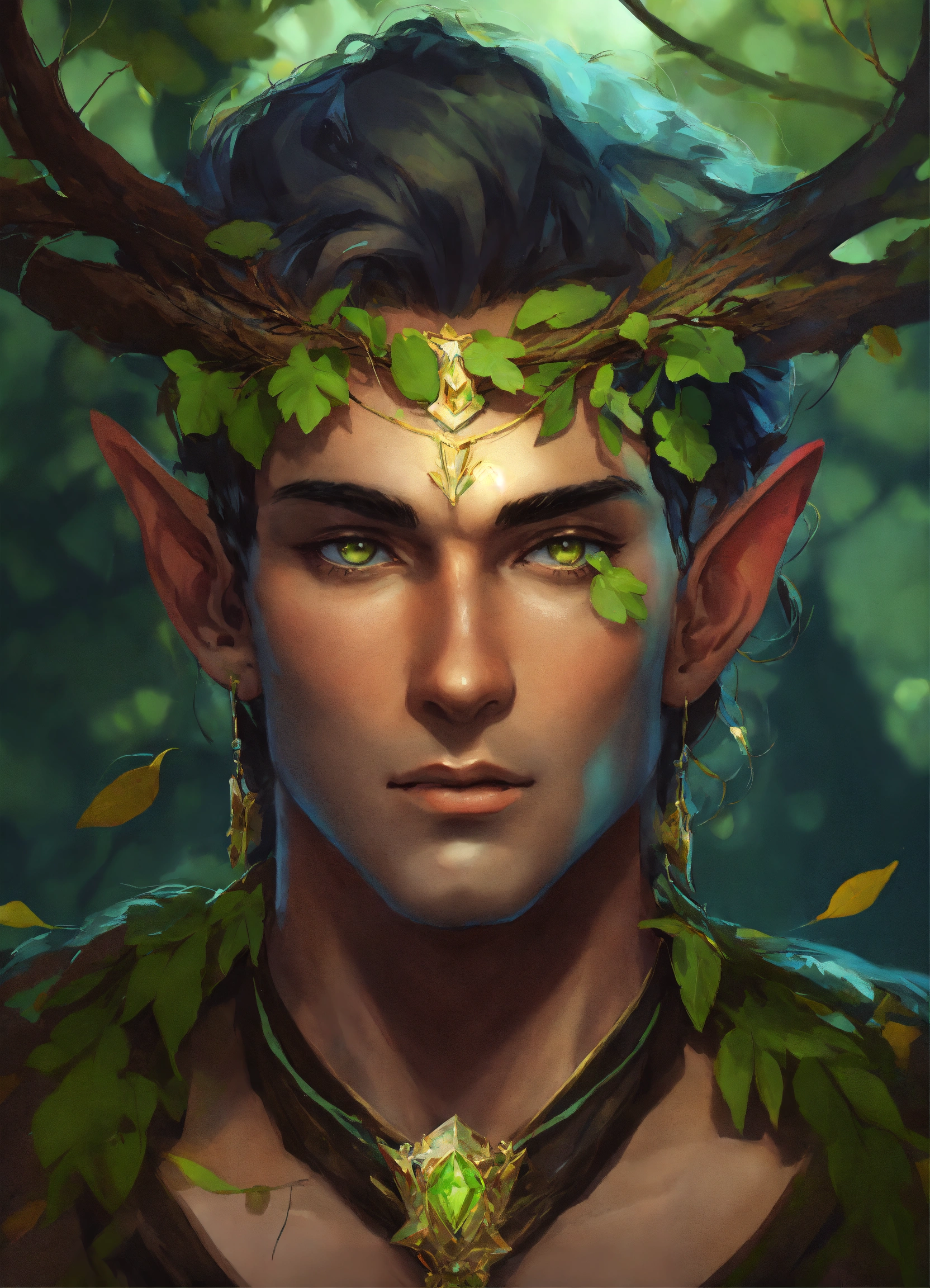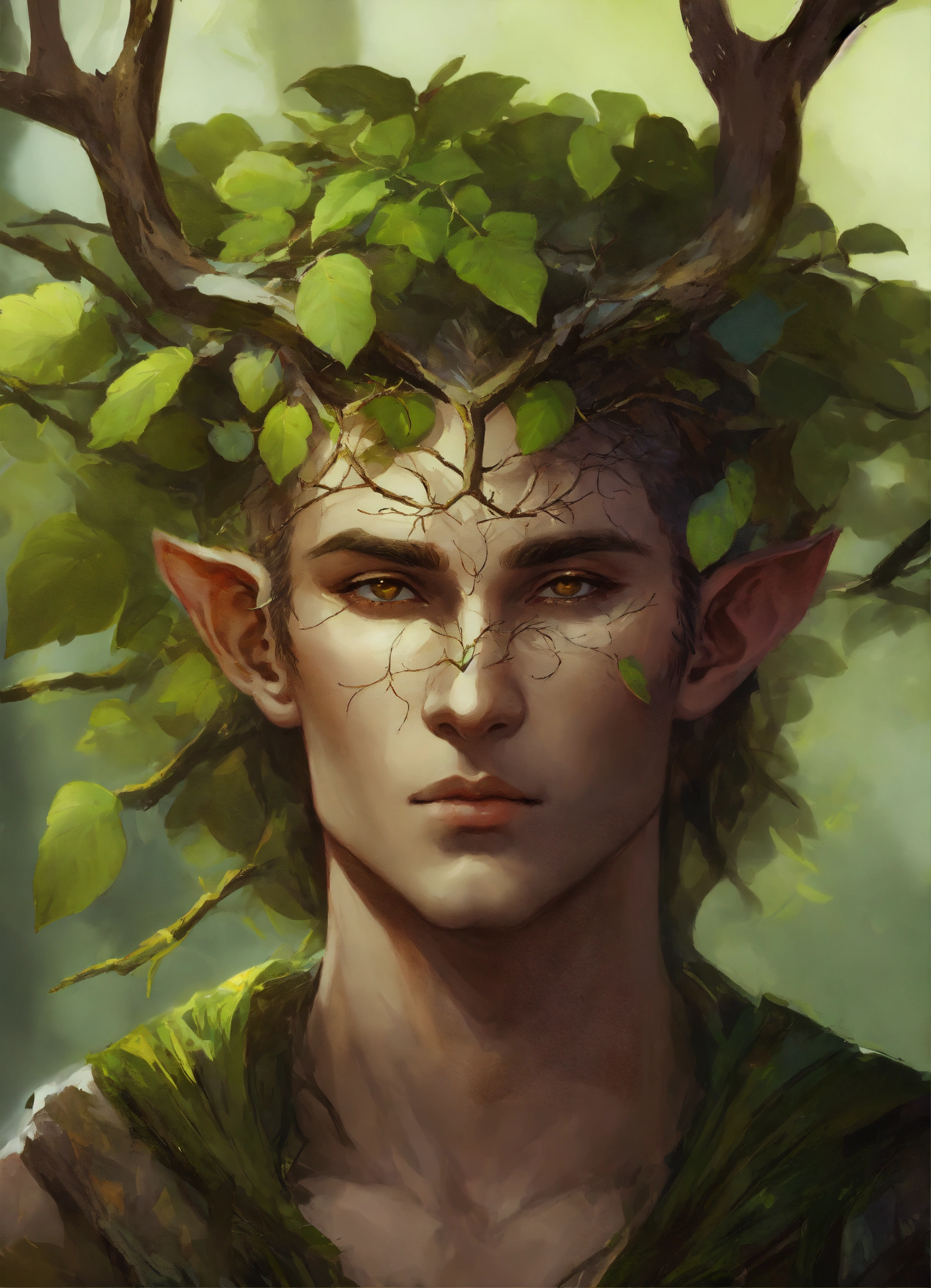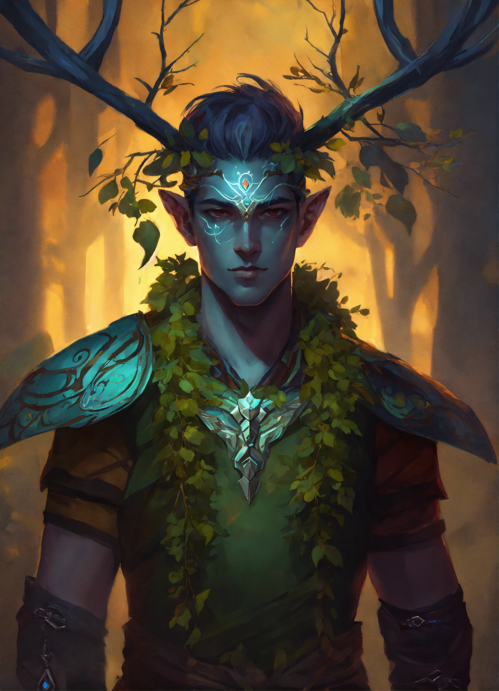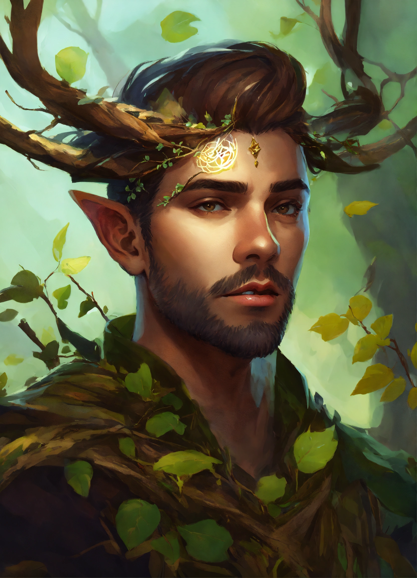 A male fey with branches in forehead