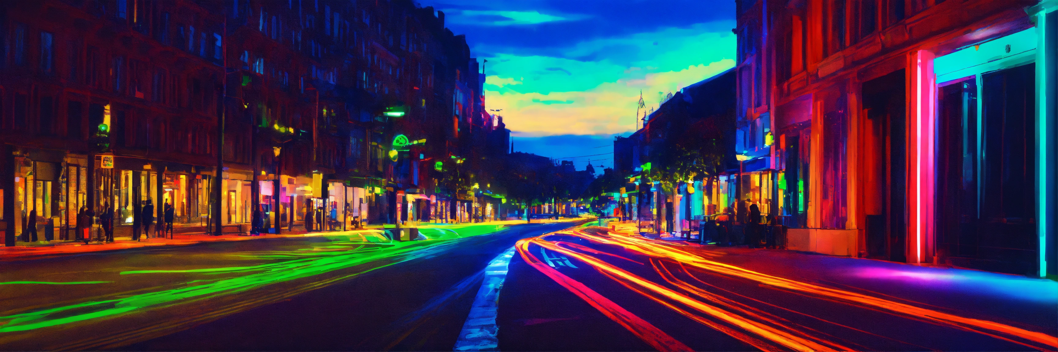 369, azure, center of image blurry, blank with electric circut, feeling fo success colors, neon green, neon red, neon blue, path, bright and inviting, blank