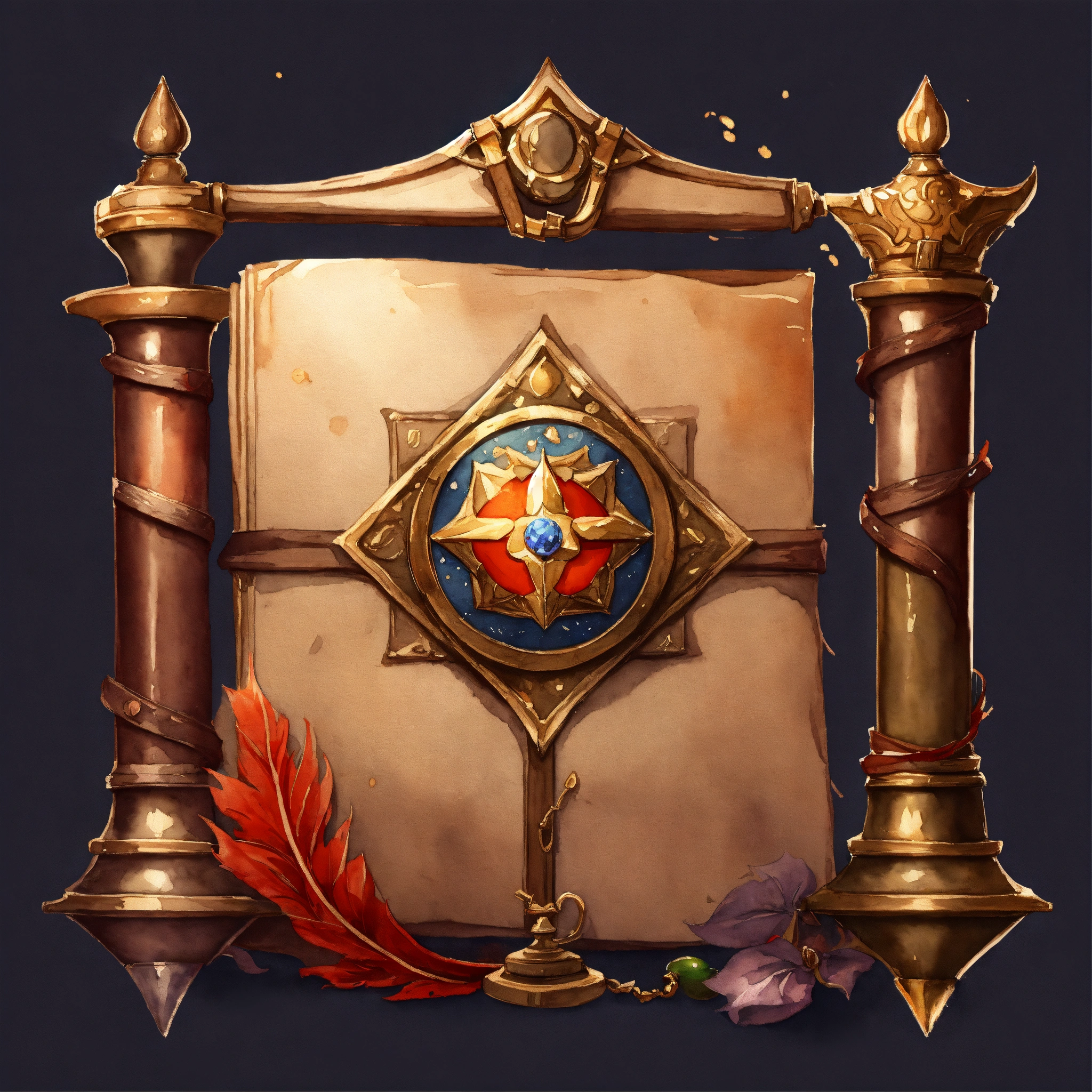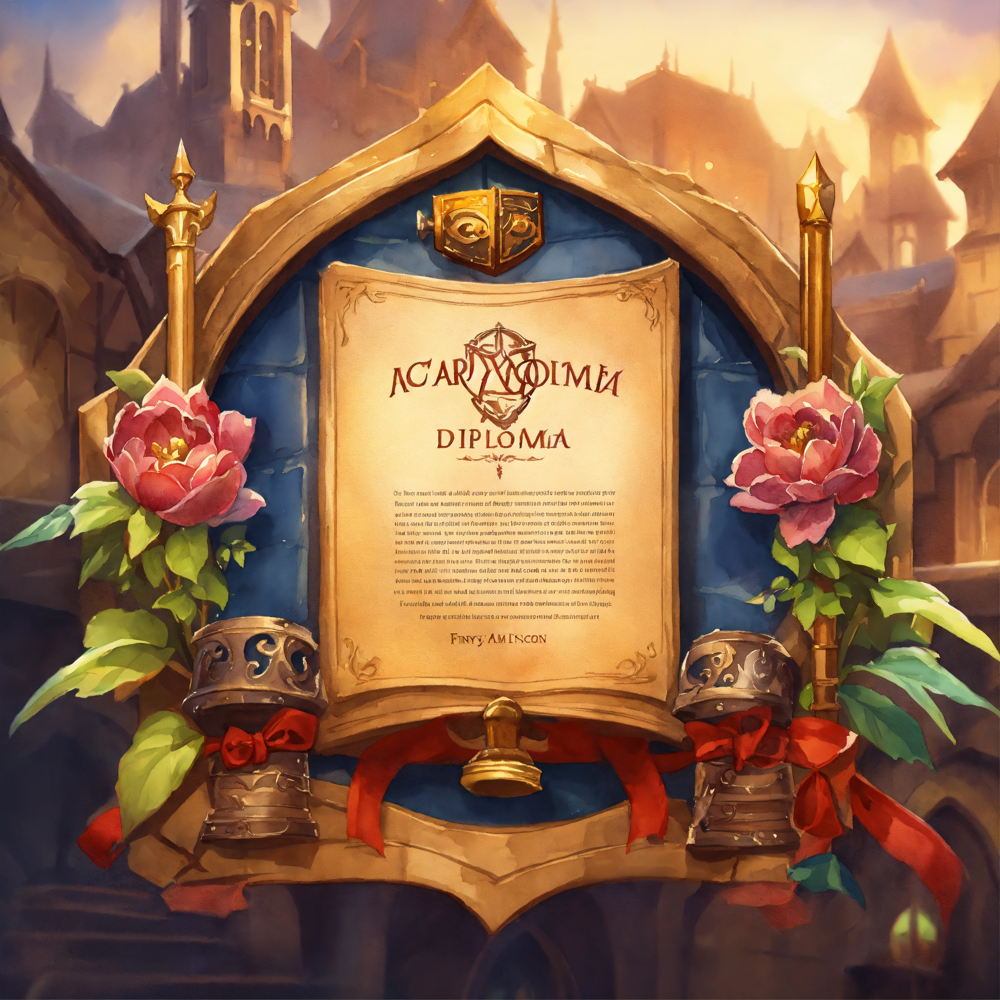 Academy diploma, fantasy medieval, game icon, fantasy style, digital drawing, artstation, watercolor illustration
