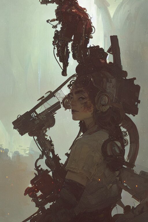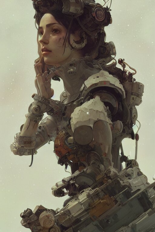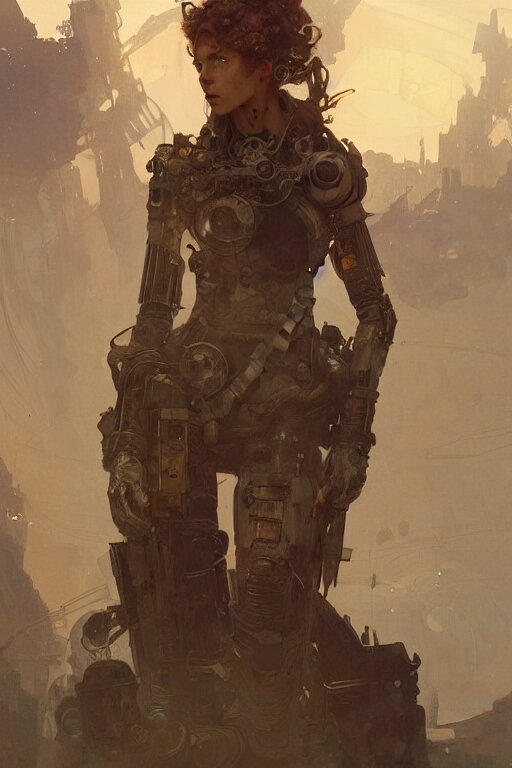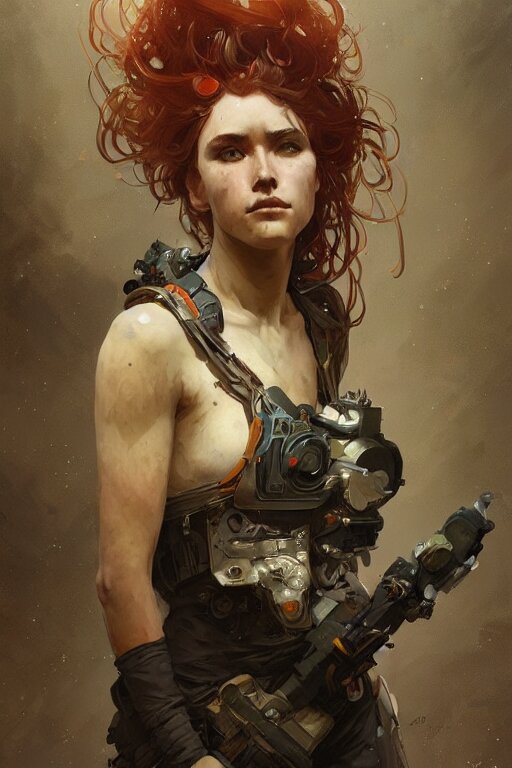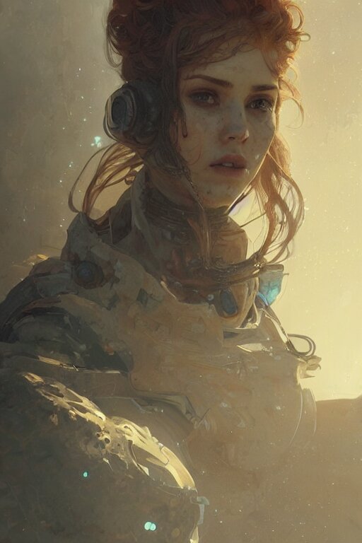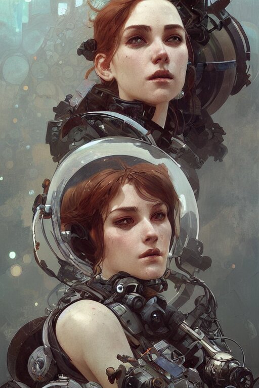 A full portrait of a beautiful post apocalyptic offworld space miner, intricate, elegant, highly detailed, digital painting, artstation, concept art, smooth, sharp focus, illustration, art by krenz cushart and artem demura and alphonse mucha