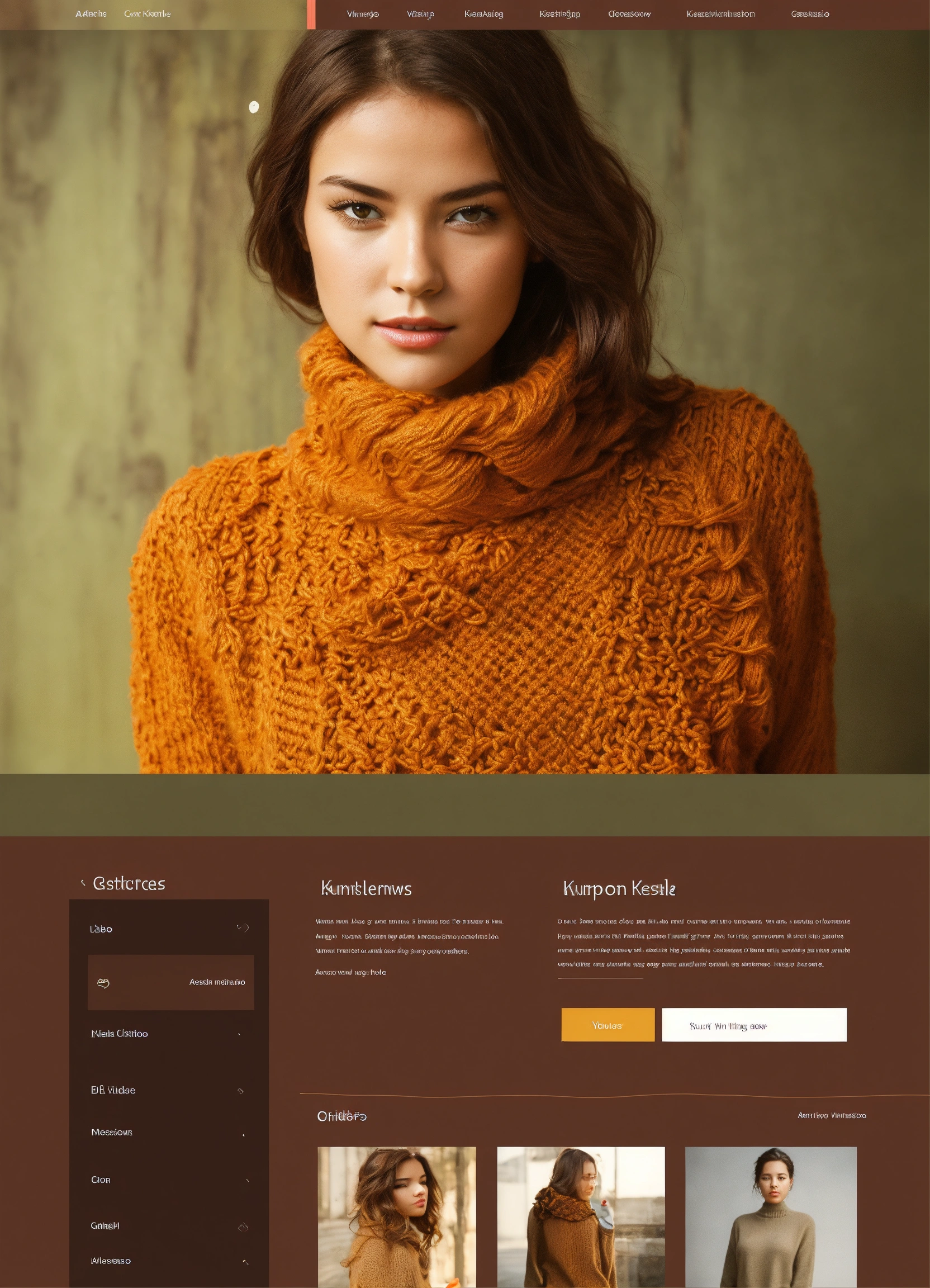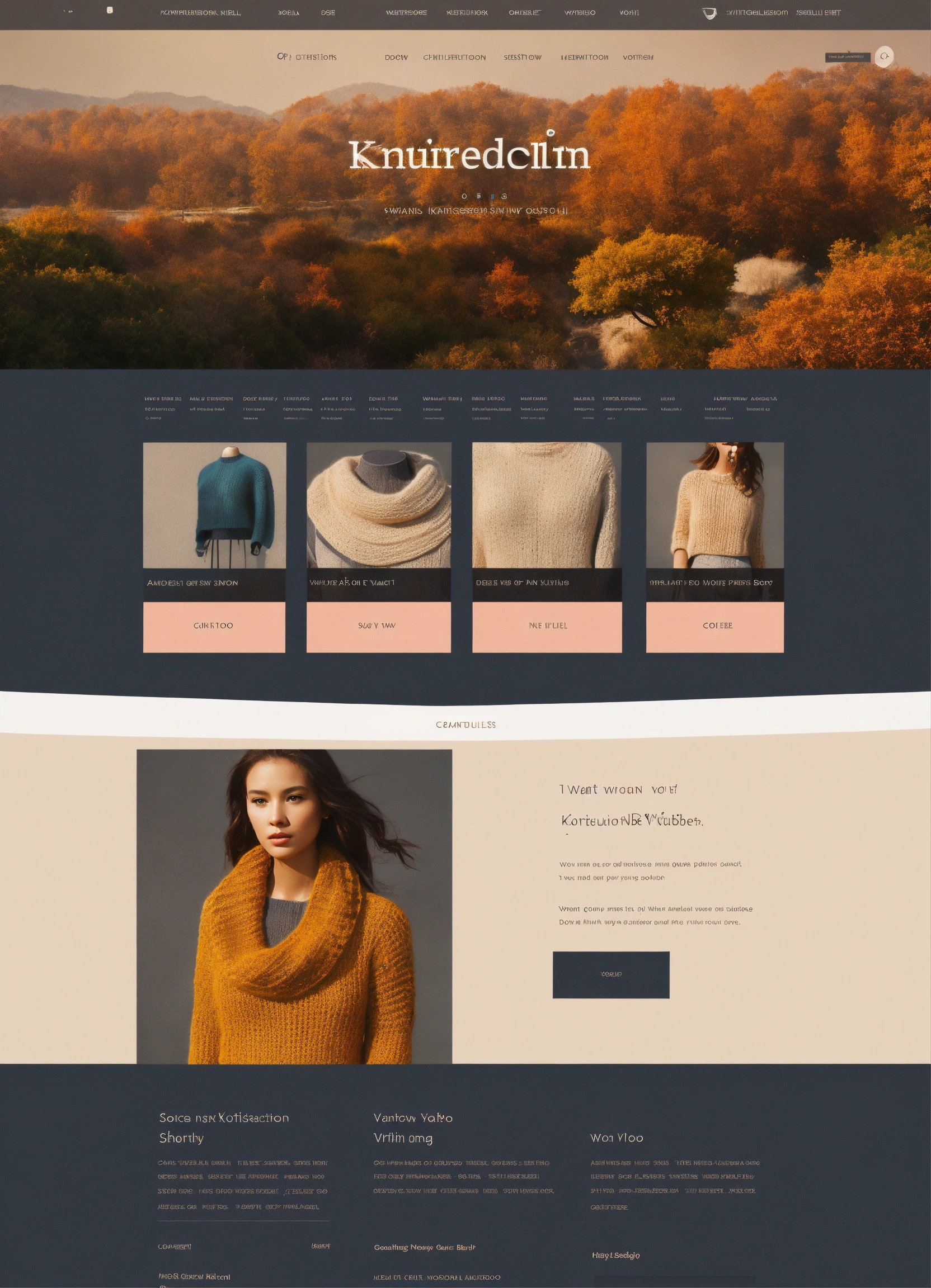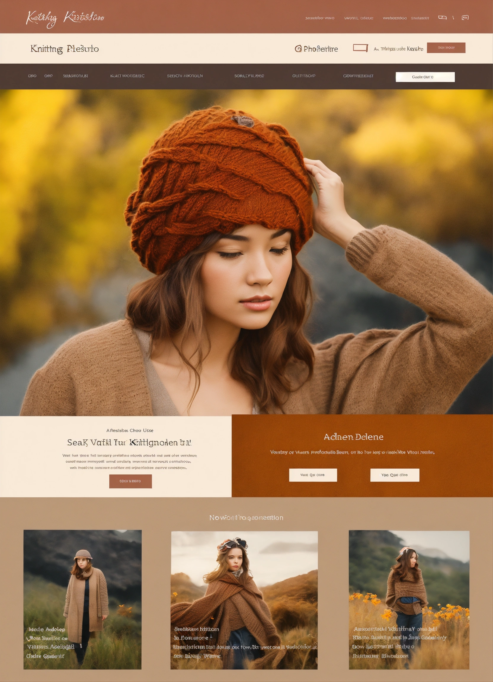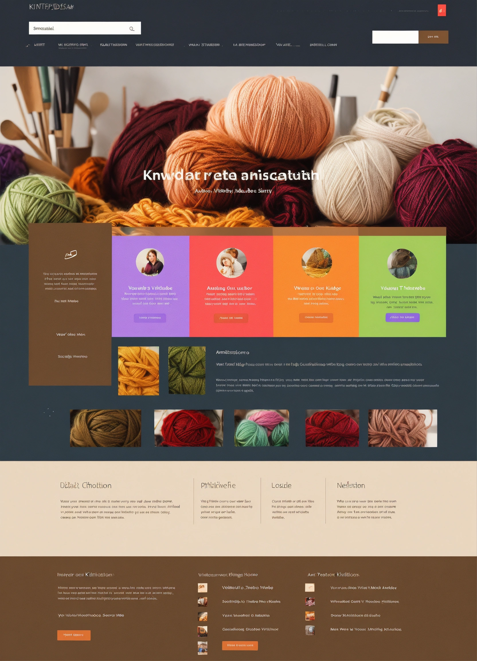 Portfolio website for knitting ui design sophisticated, modern, adobe photoshop, professional, simple navigation, visually appealing layout, high quality graphics, i want principal search bar for find videos like youtube, soft and muted tones, don't show me a photo of anyone