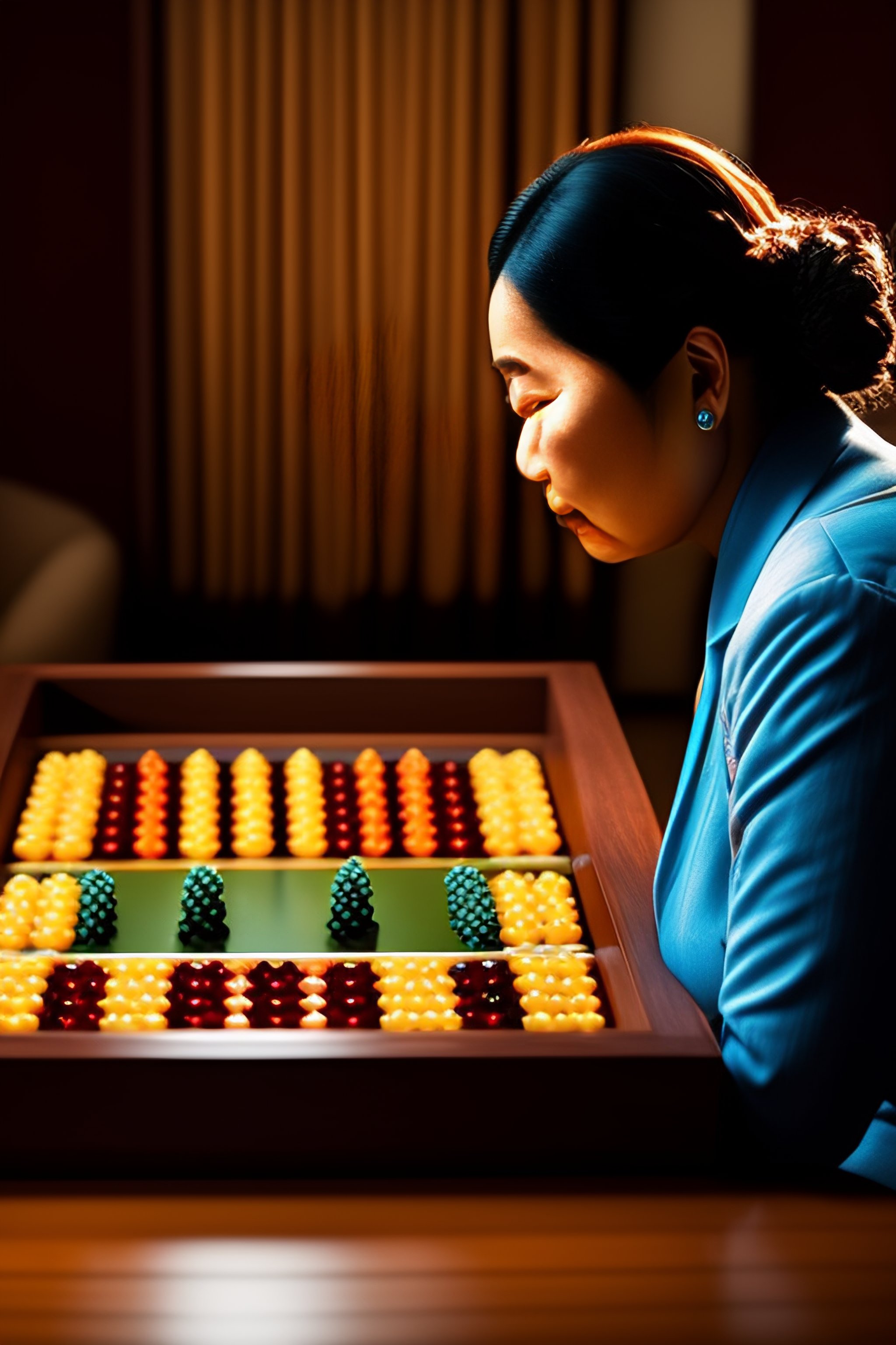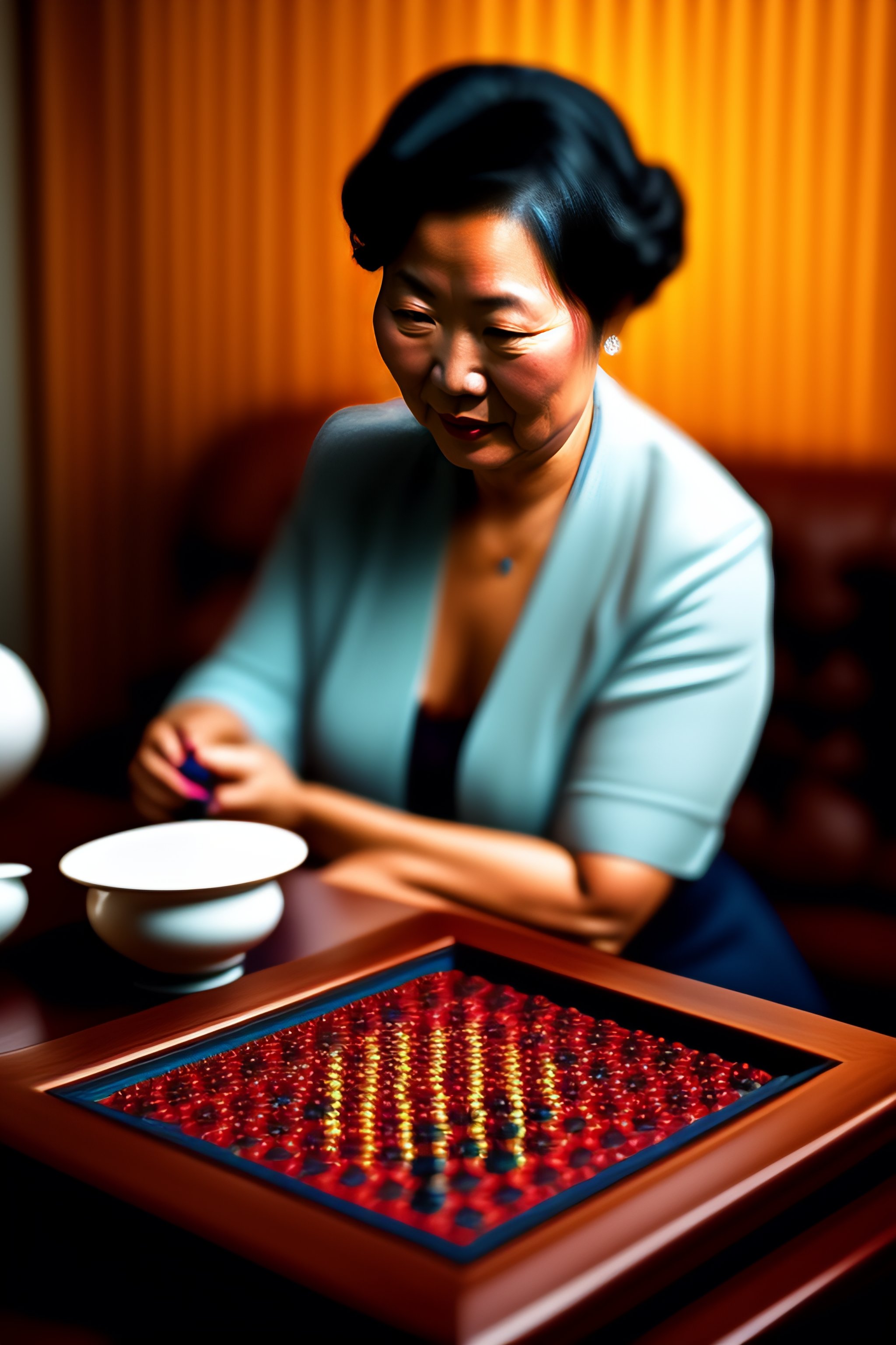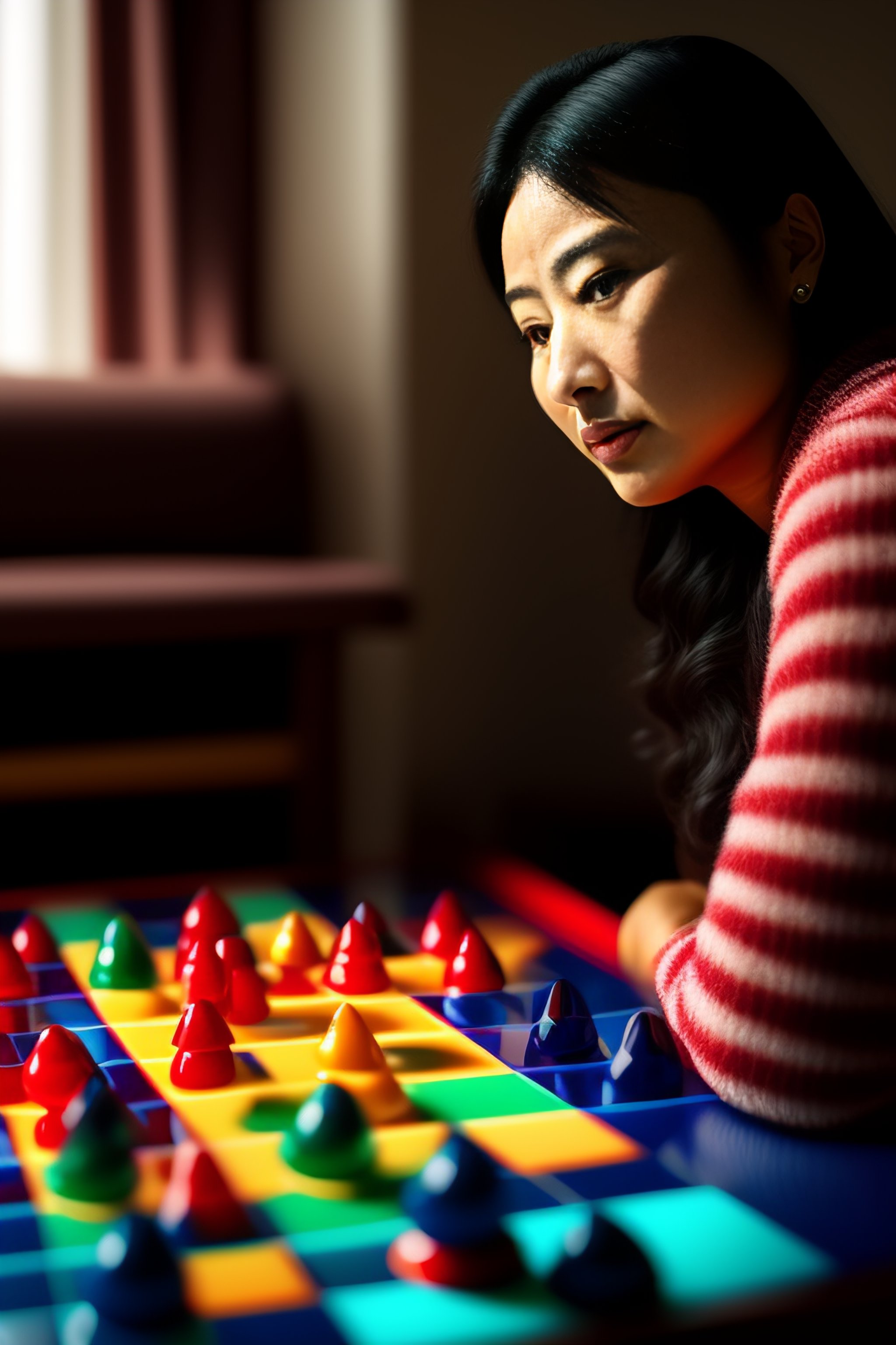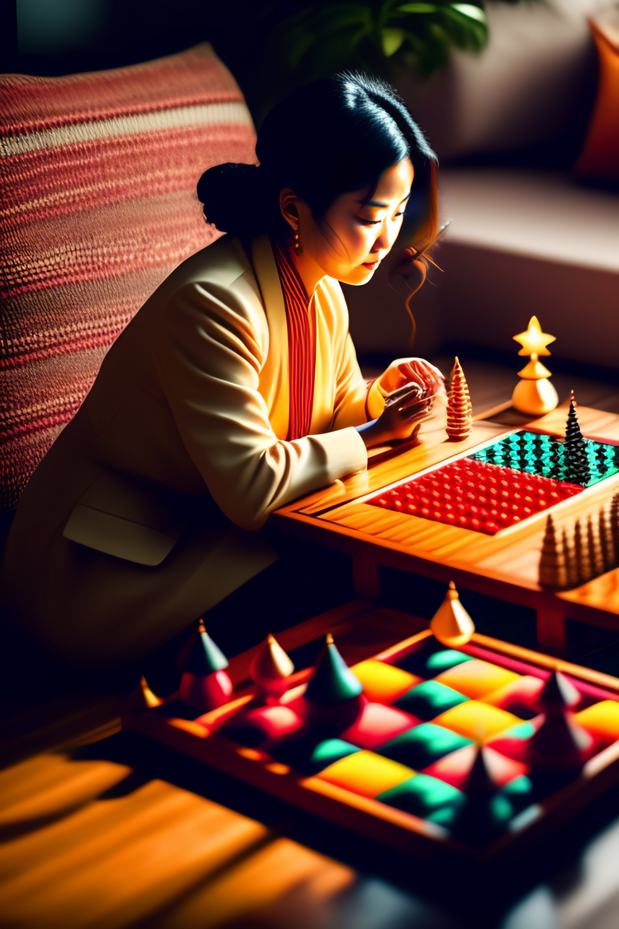 A woman playing chinese checkers