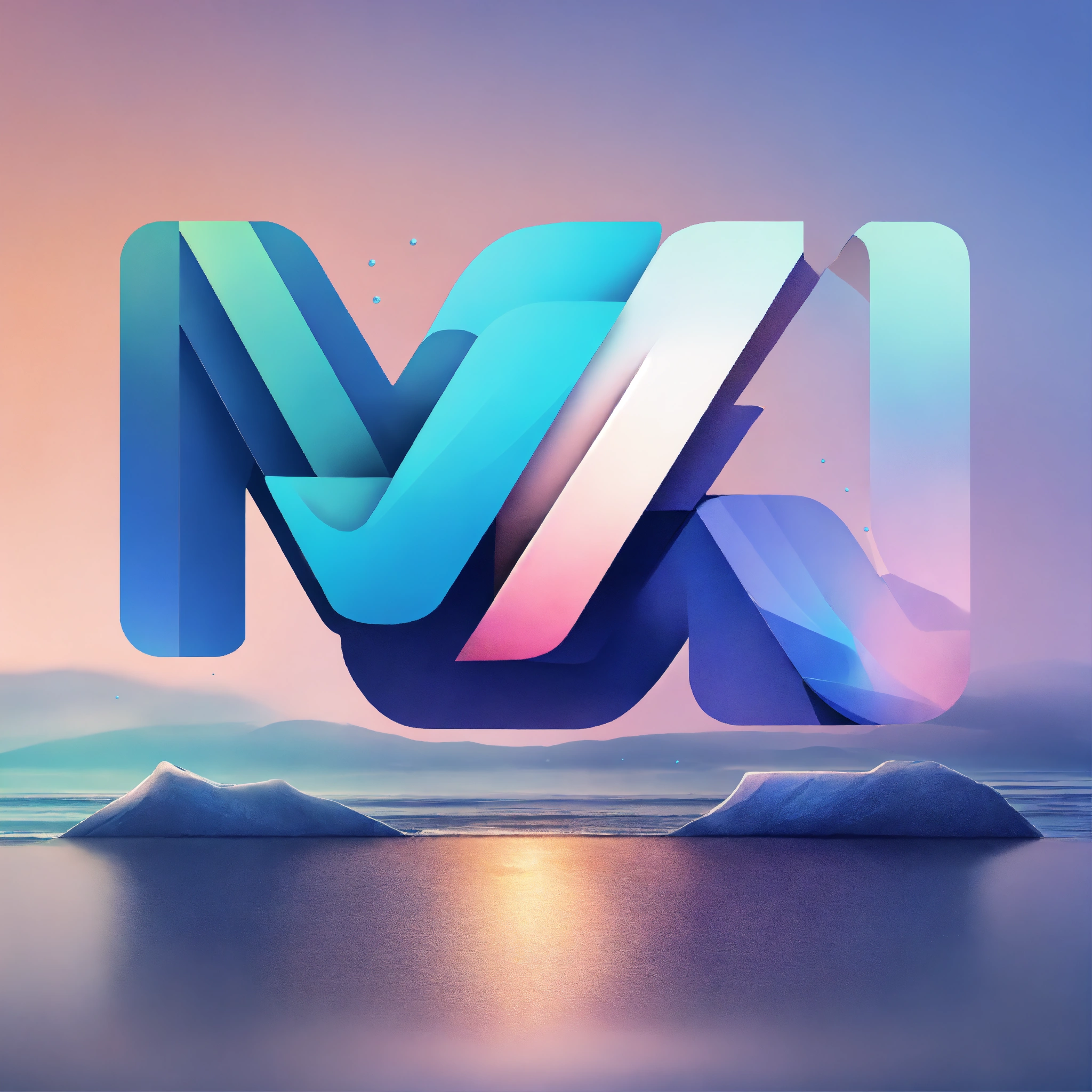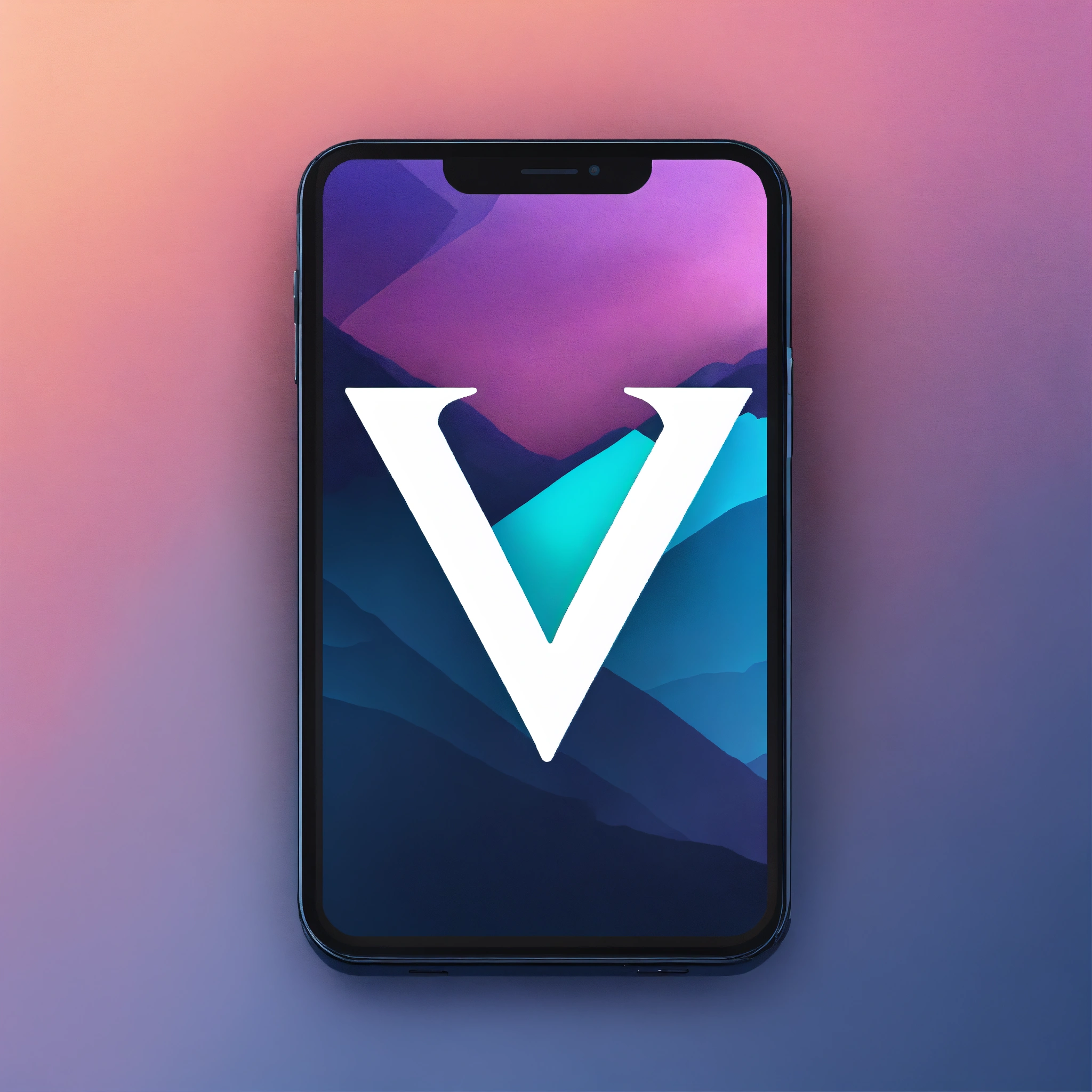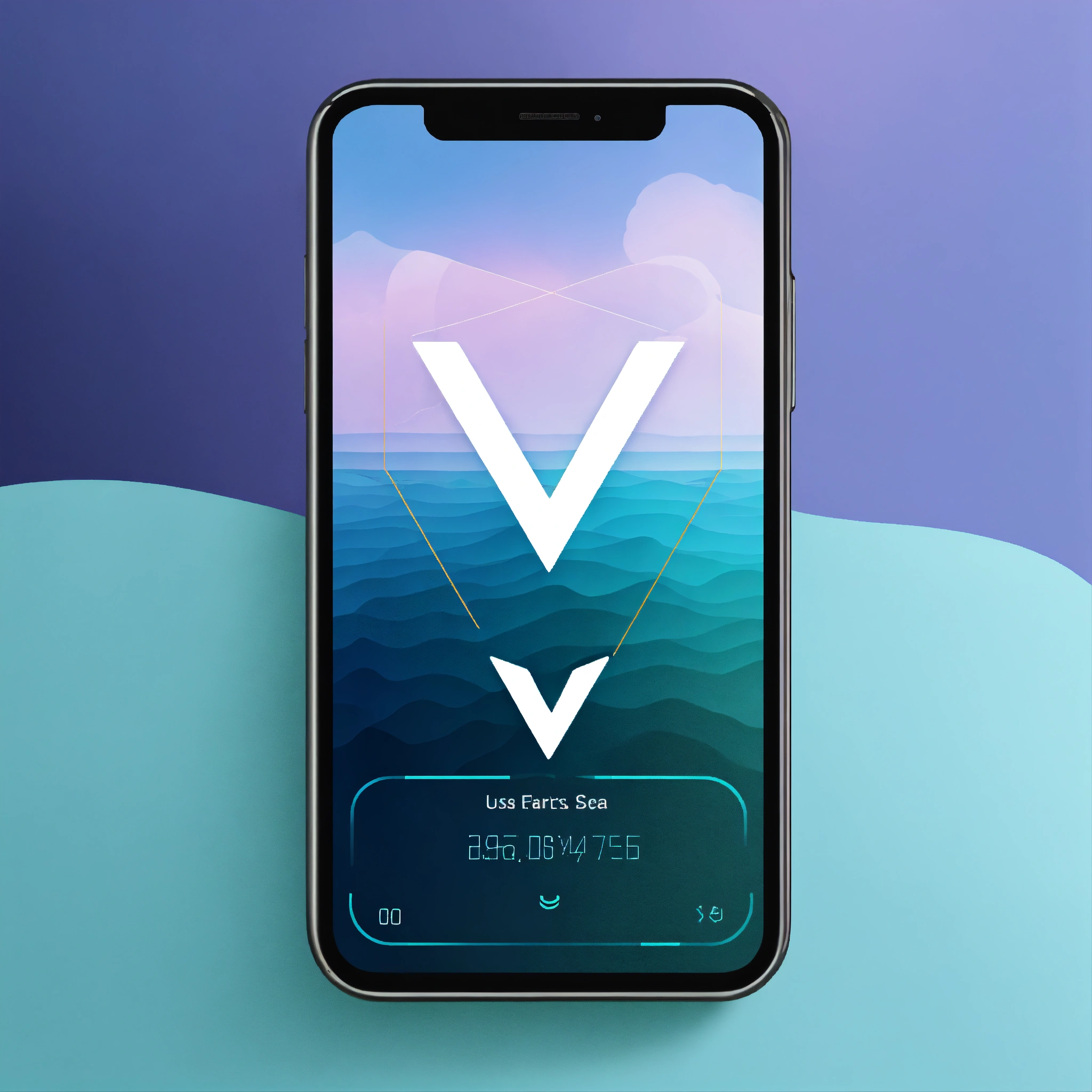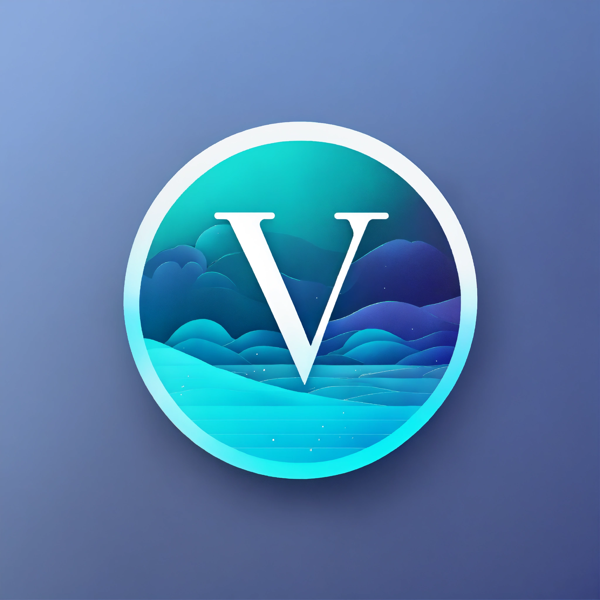 Icon of an app with a "v" in front and a plain background with cold colors resembling the sea and the sky, use a smooth and clean and simple design and a modern font for the "v"