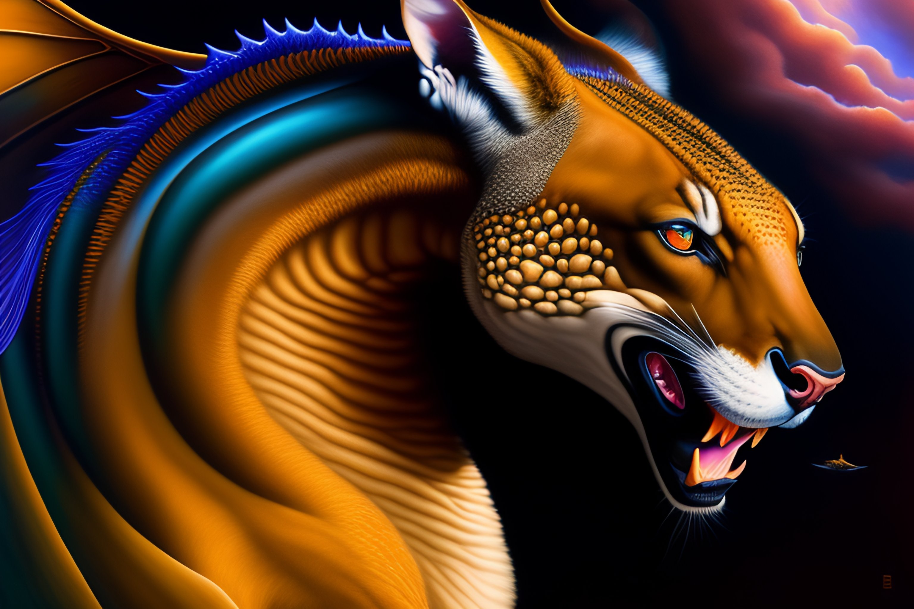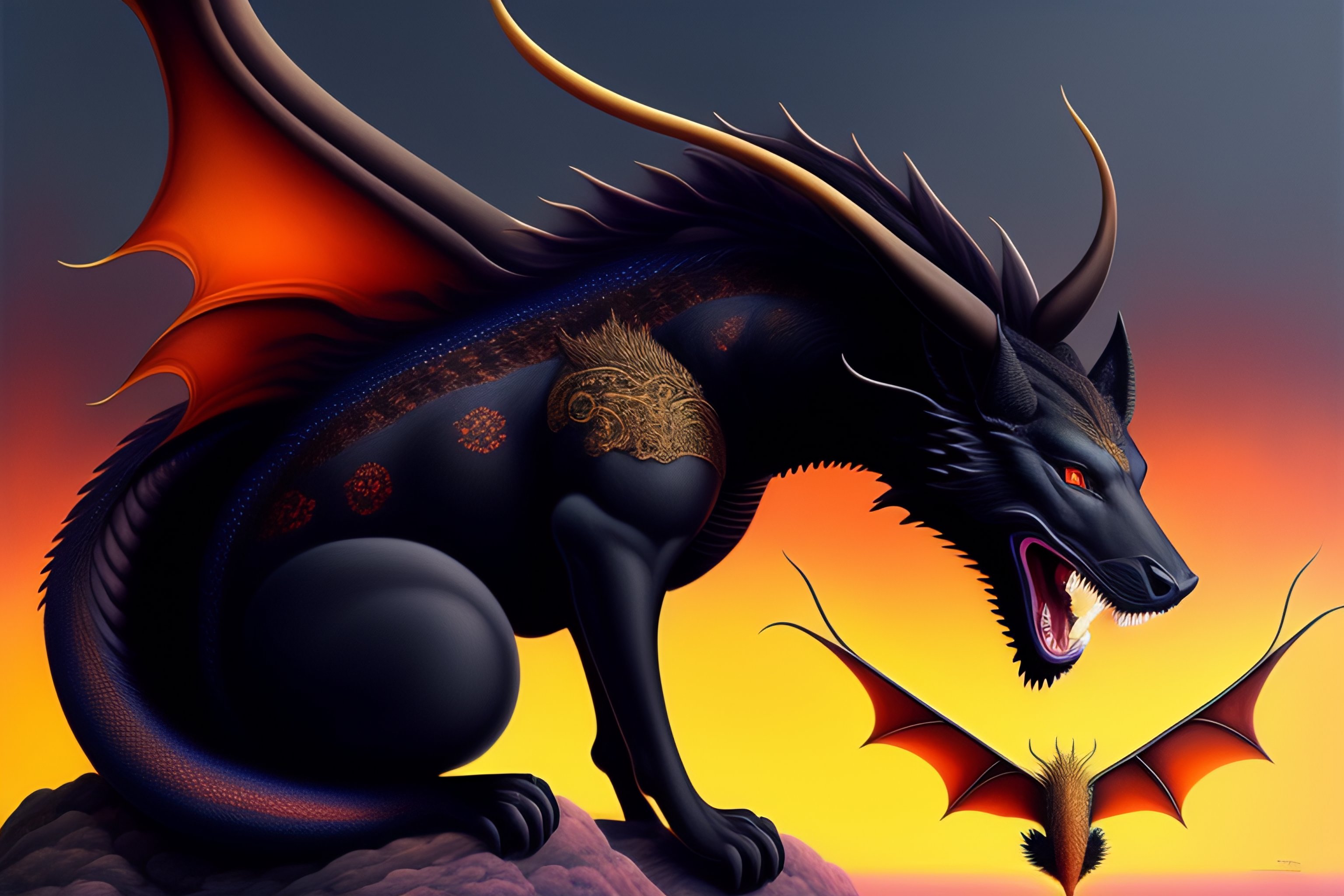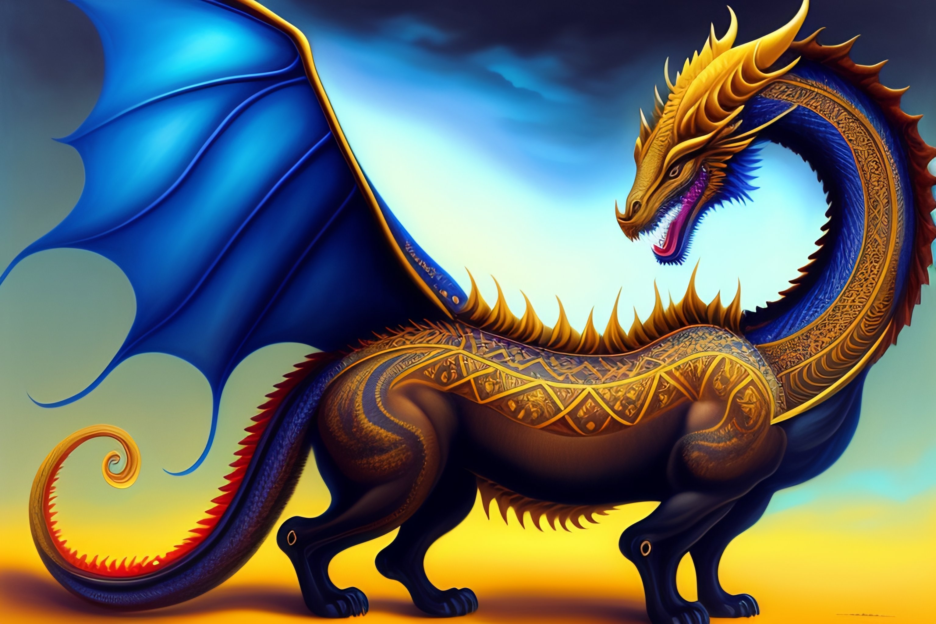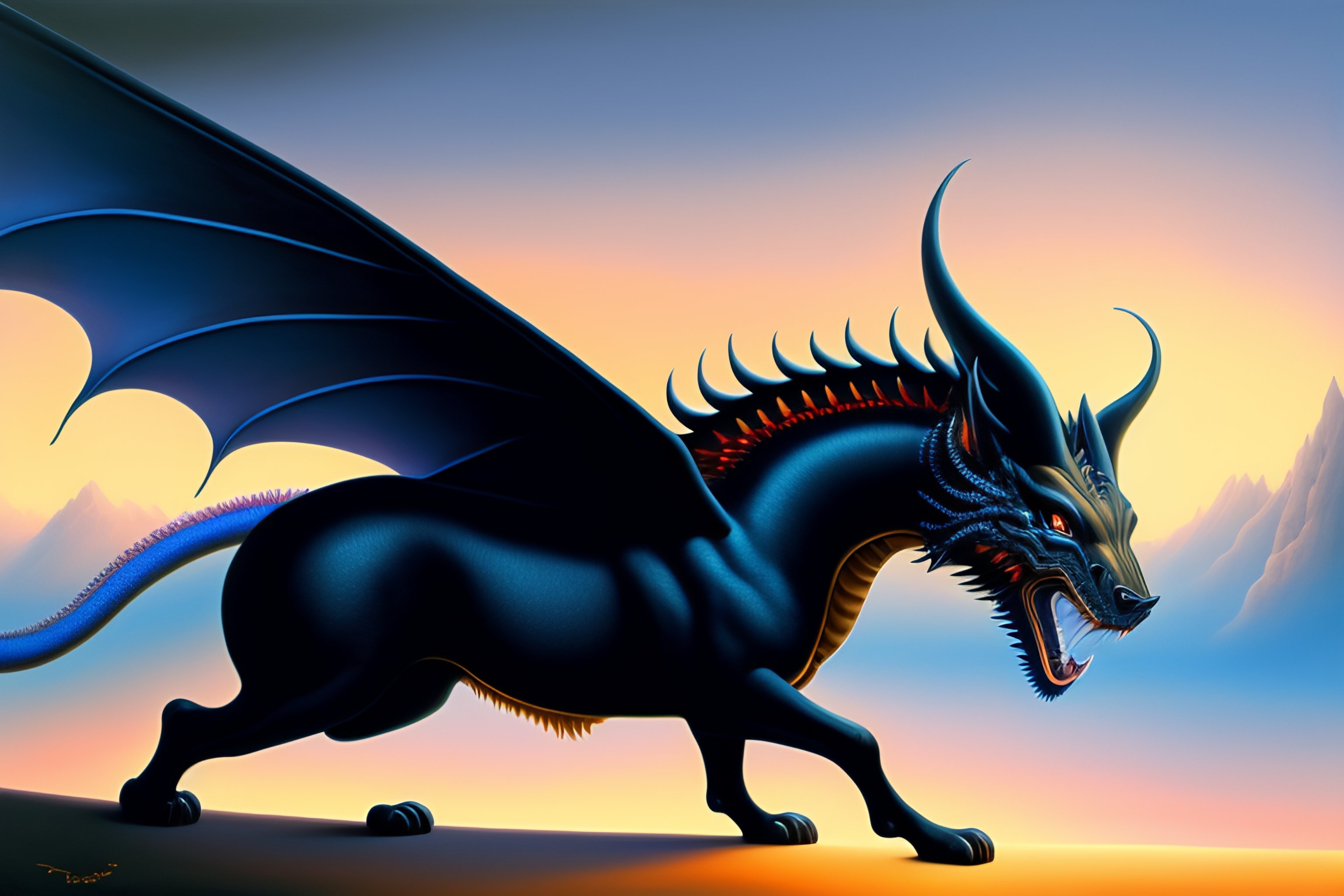 Painting of hybrid between black man & dragon!!!!, intercrossed animal, mixture animal, by tiffany bozic, by zdzislaw beksinski, by salvador dali, cold hue's, warm tone gradient background, concept art, beautiful composition, digital painting