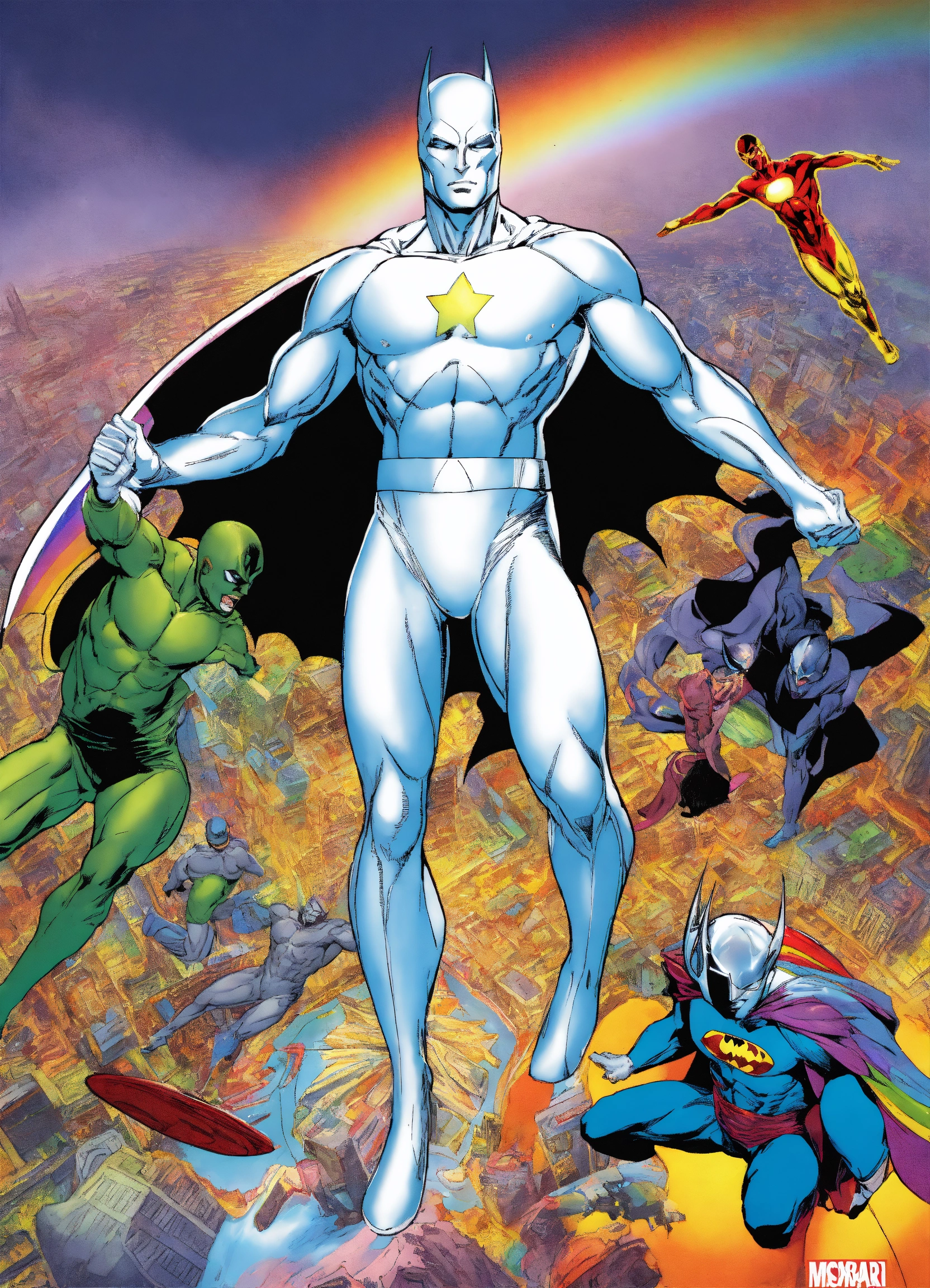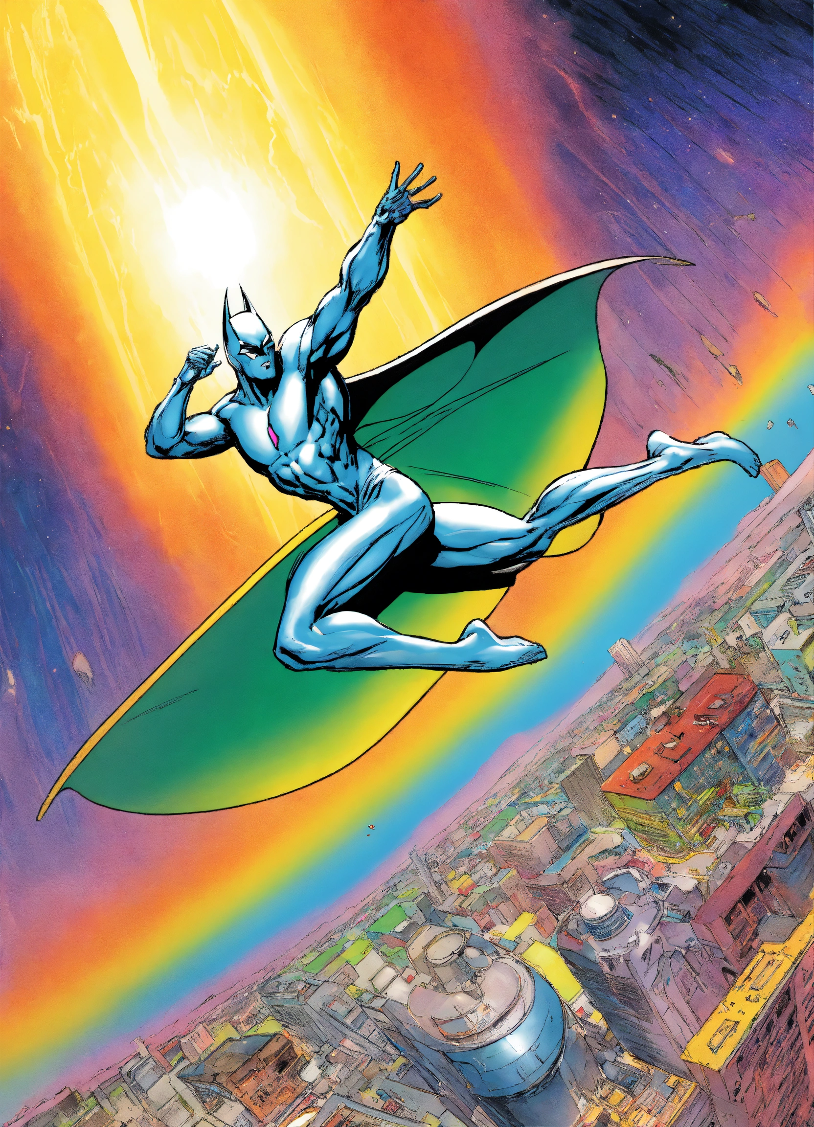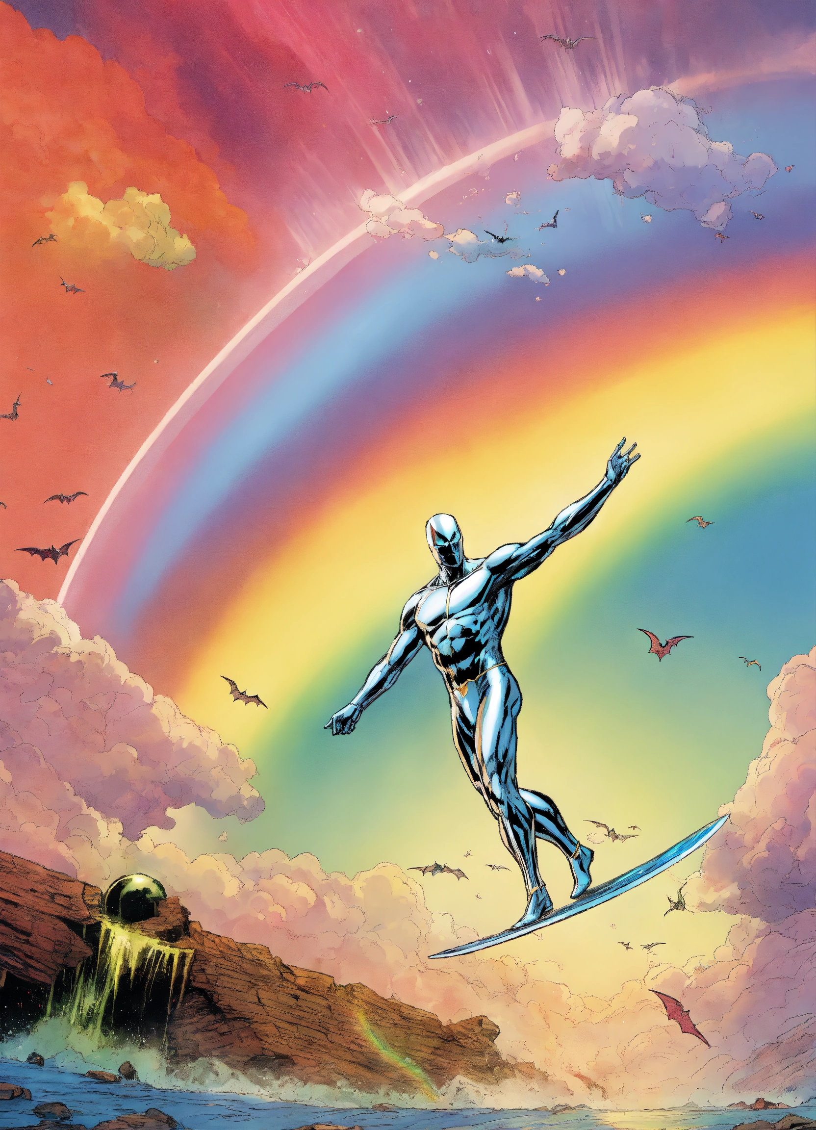 Silver surfer bat man god rainbow