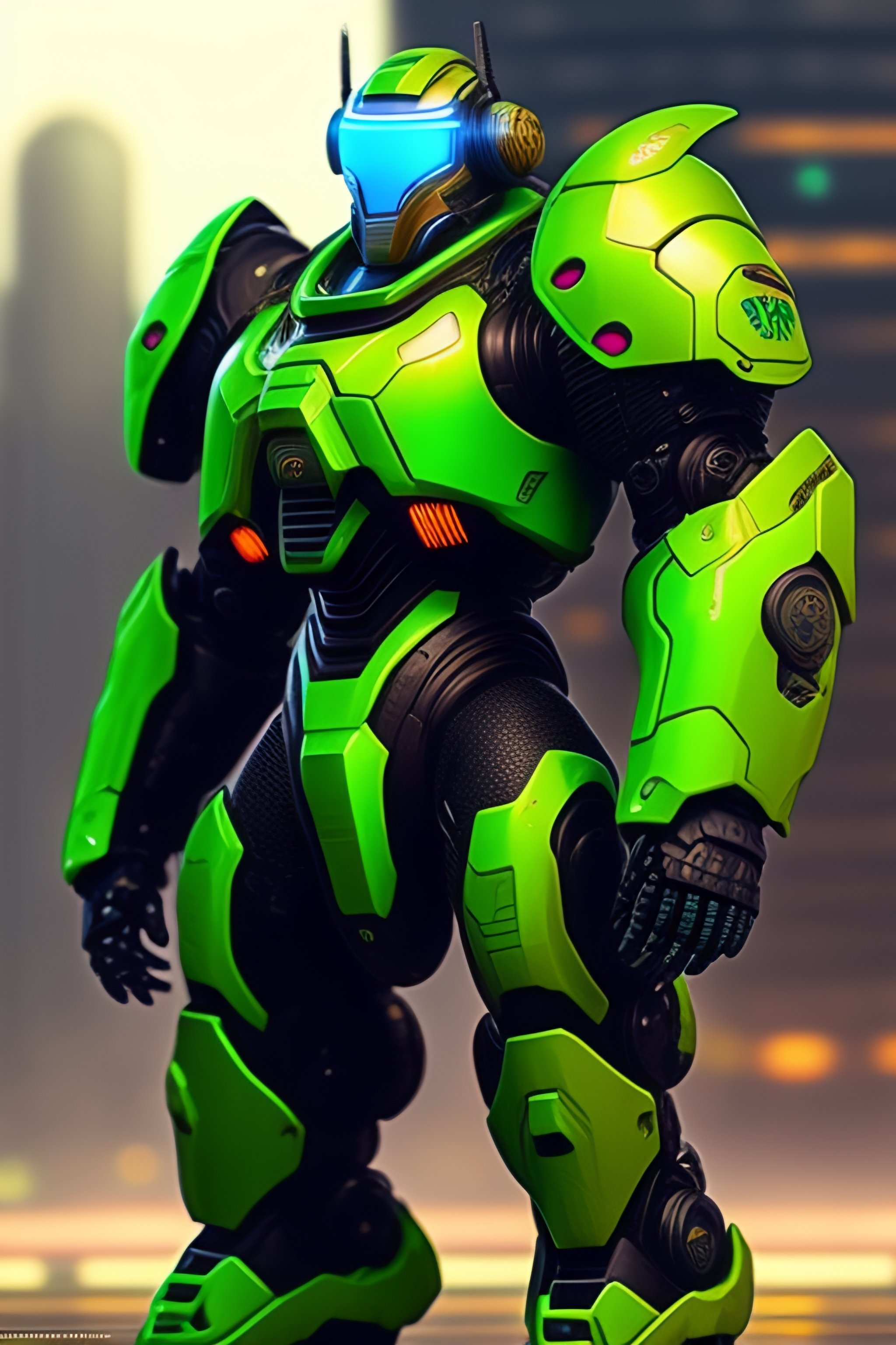 realistic scifi cyberpunk power armor robot
