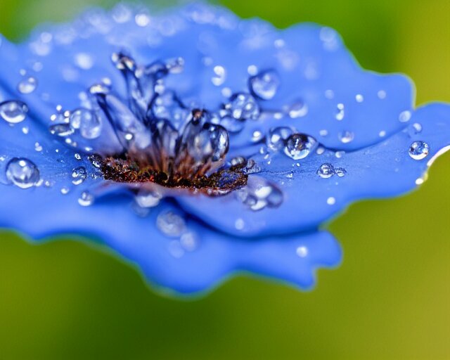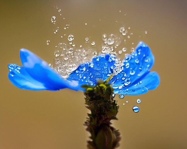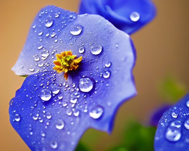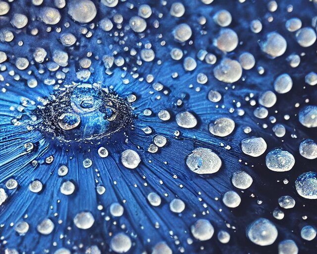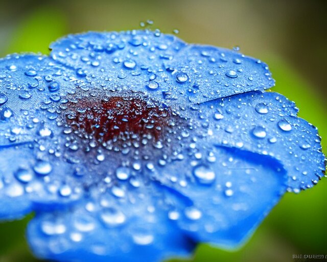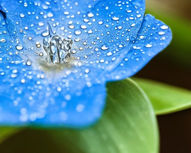 A blue flower with water droplets on it, a macro photograph by kume keiichiro, trending on unsplash, photorealism, photo taken with ektachrome, photo taken with provia, shallow depth of field