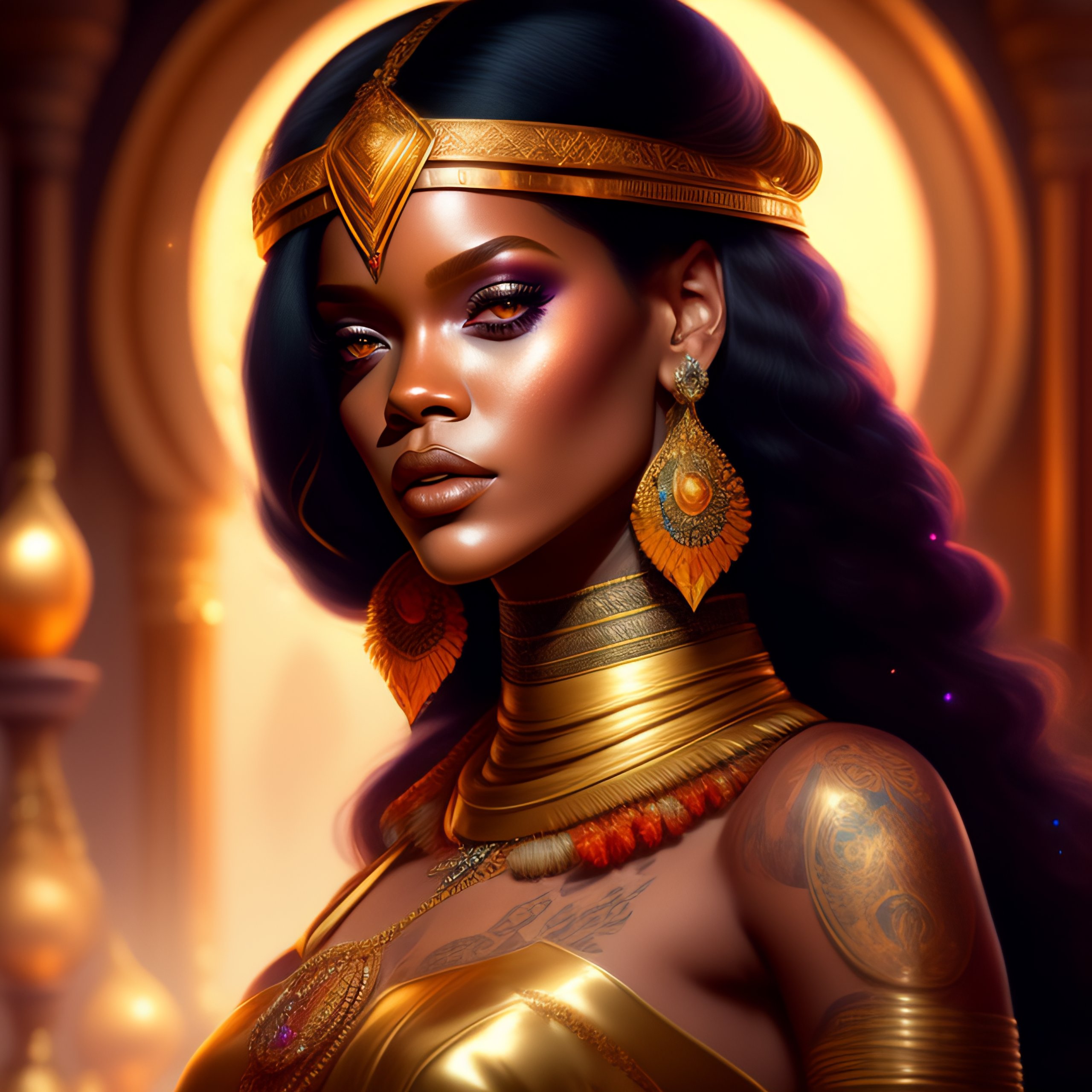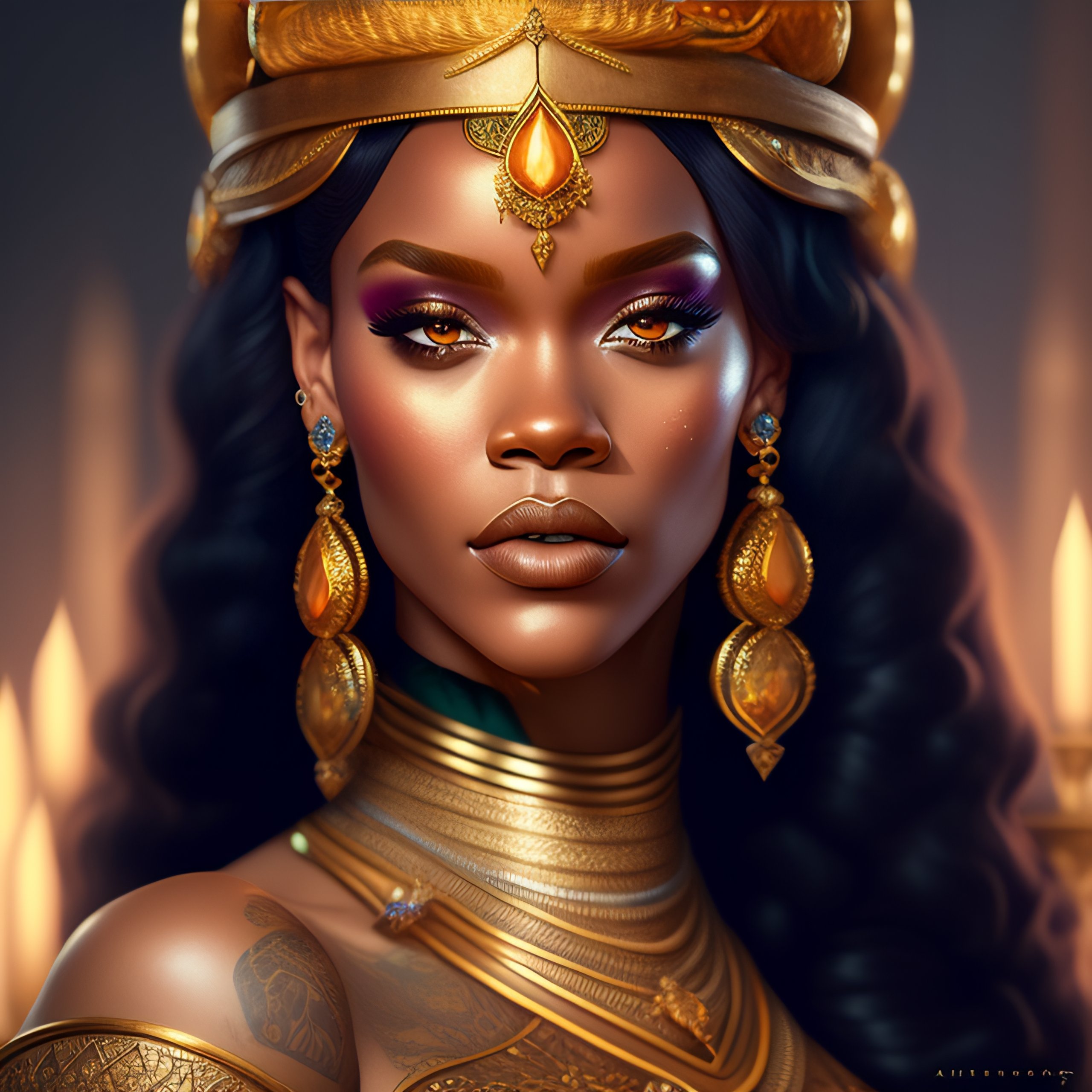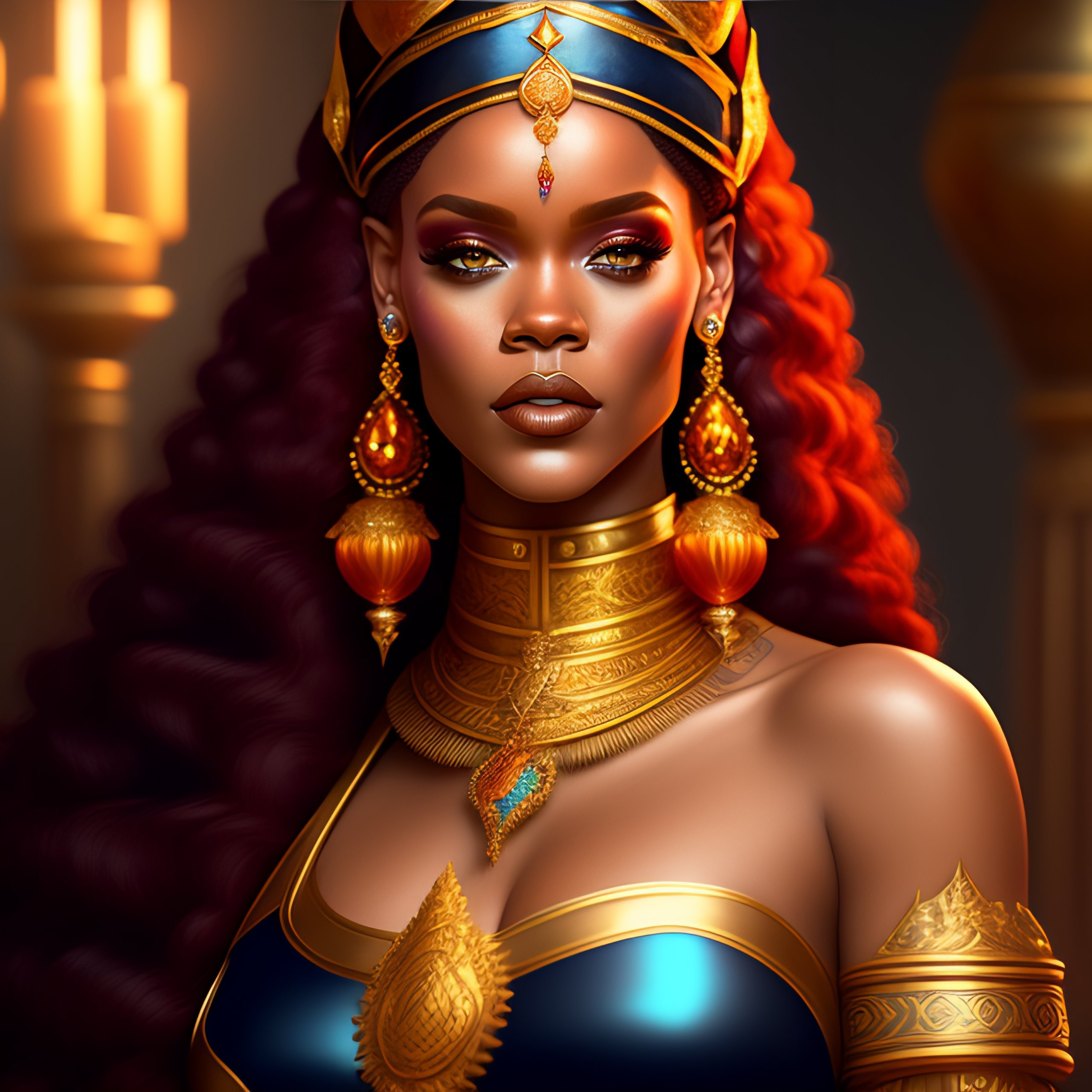 Beautiful portrait of rihanna as cleopatra, ginger hair, d & d, fantasy, intricate, elegant, dragons, highly detailed, digital painting, artstation, octane render, concept art, matte, sharp focus, illustration, hearthstone, art by artgerm, alphonse mucha johannes voss