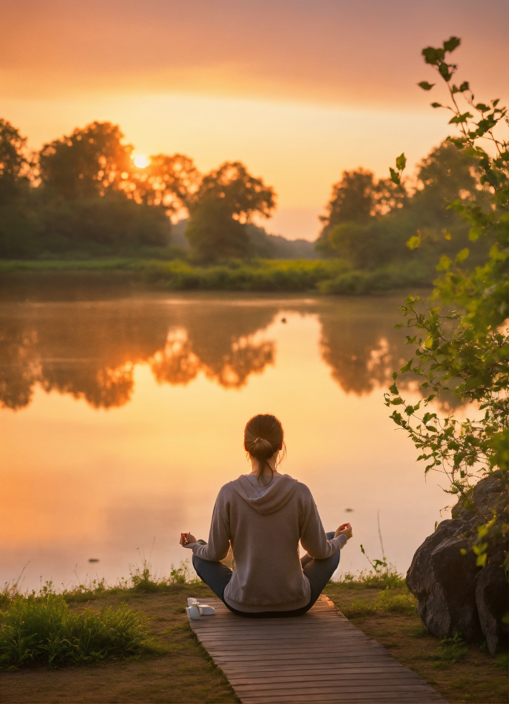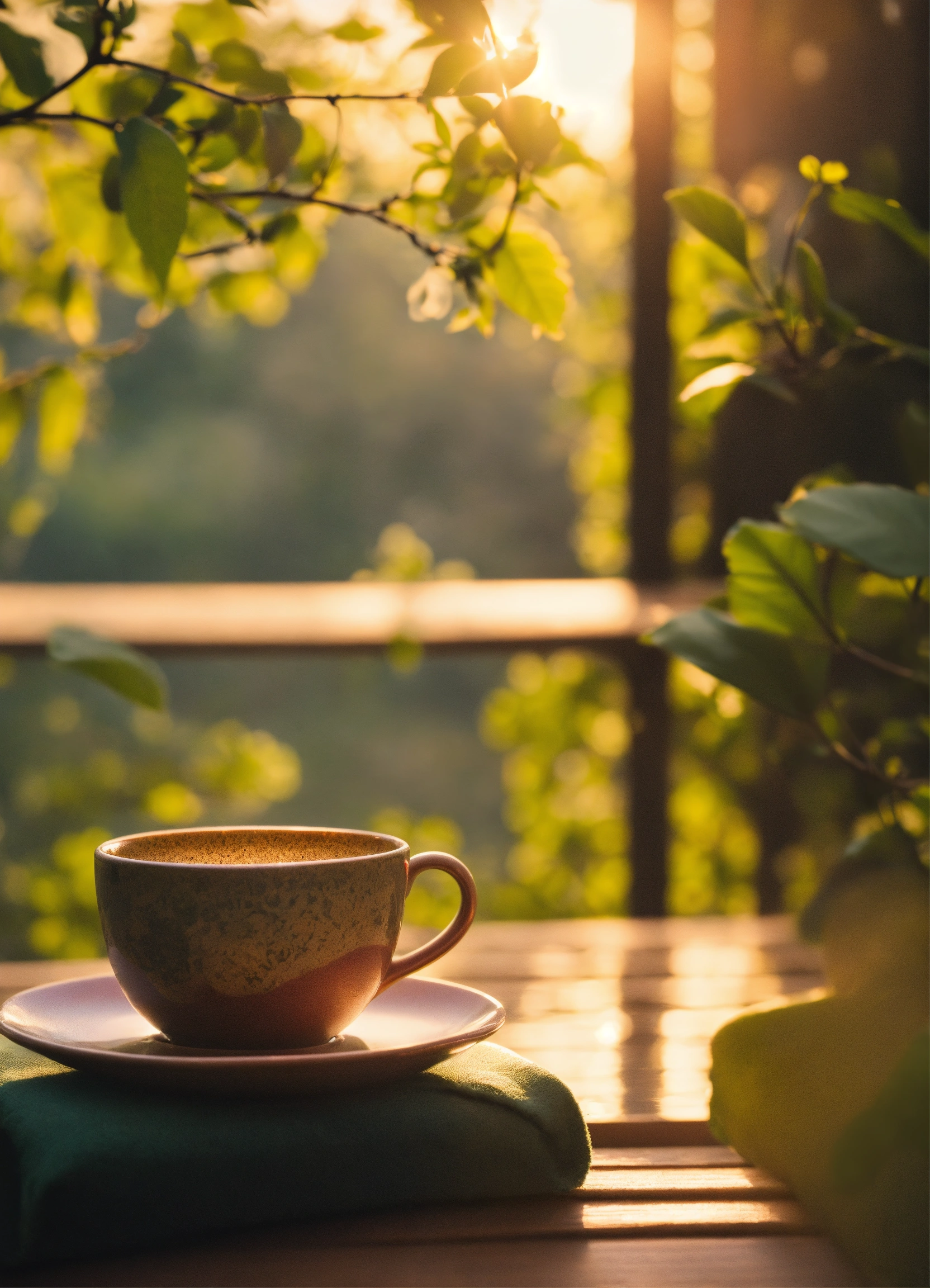 Create a serene morning routine, showcasing moments of mindfulness and brain care. emphasize the importance of a calm, focused start to the day. peaceful and reflective