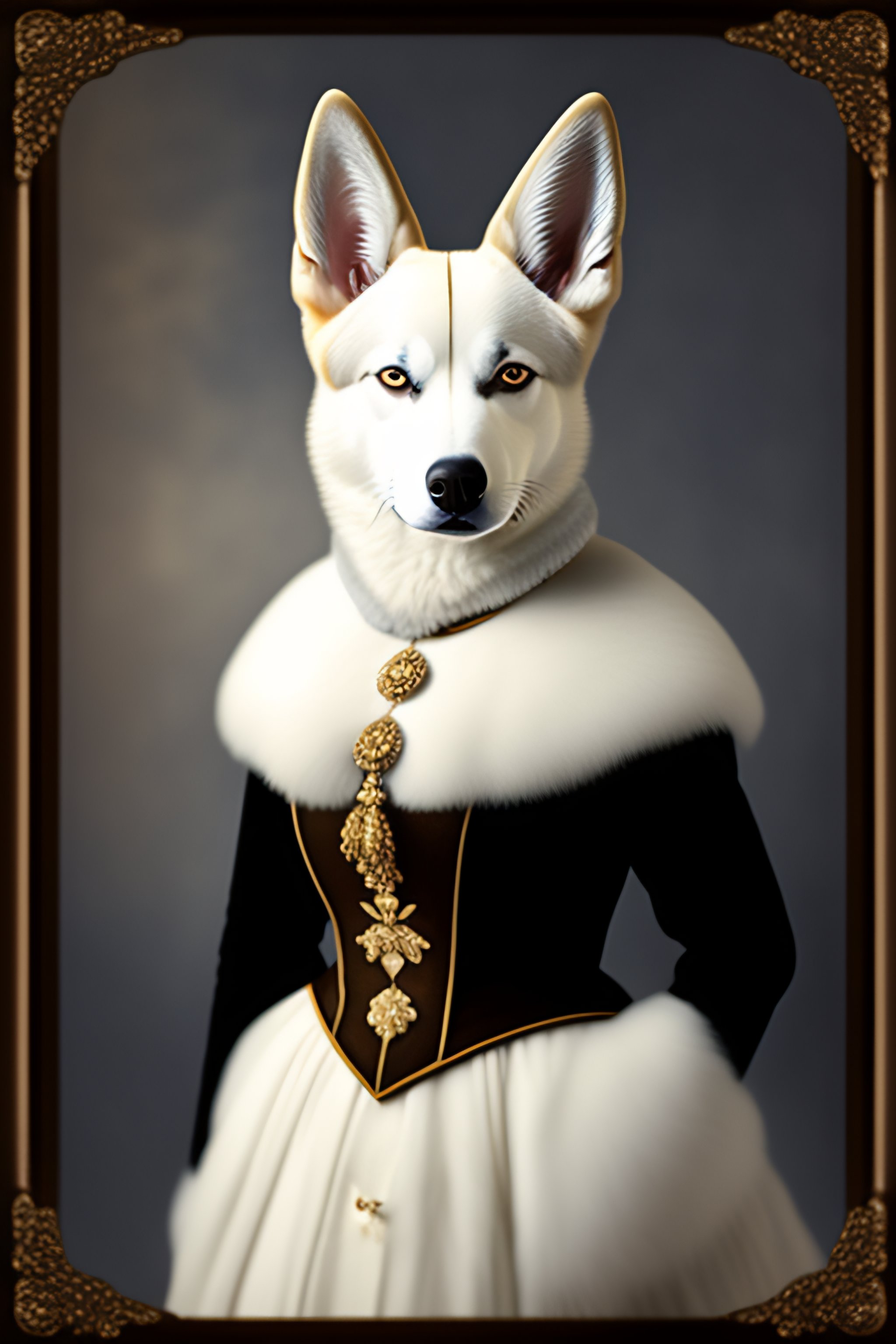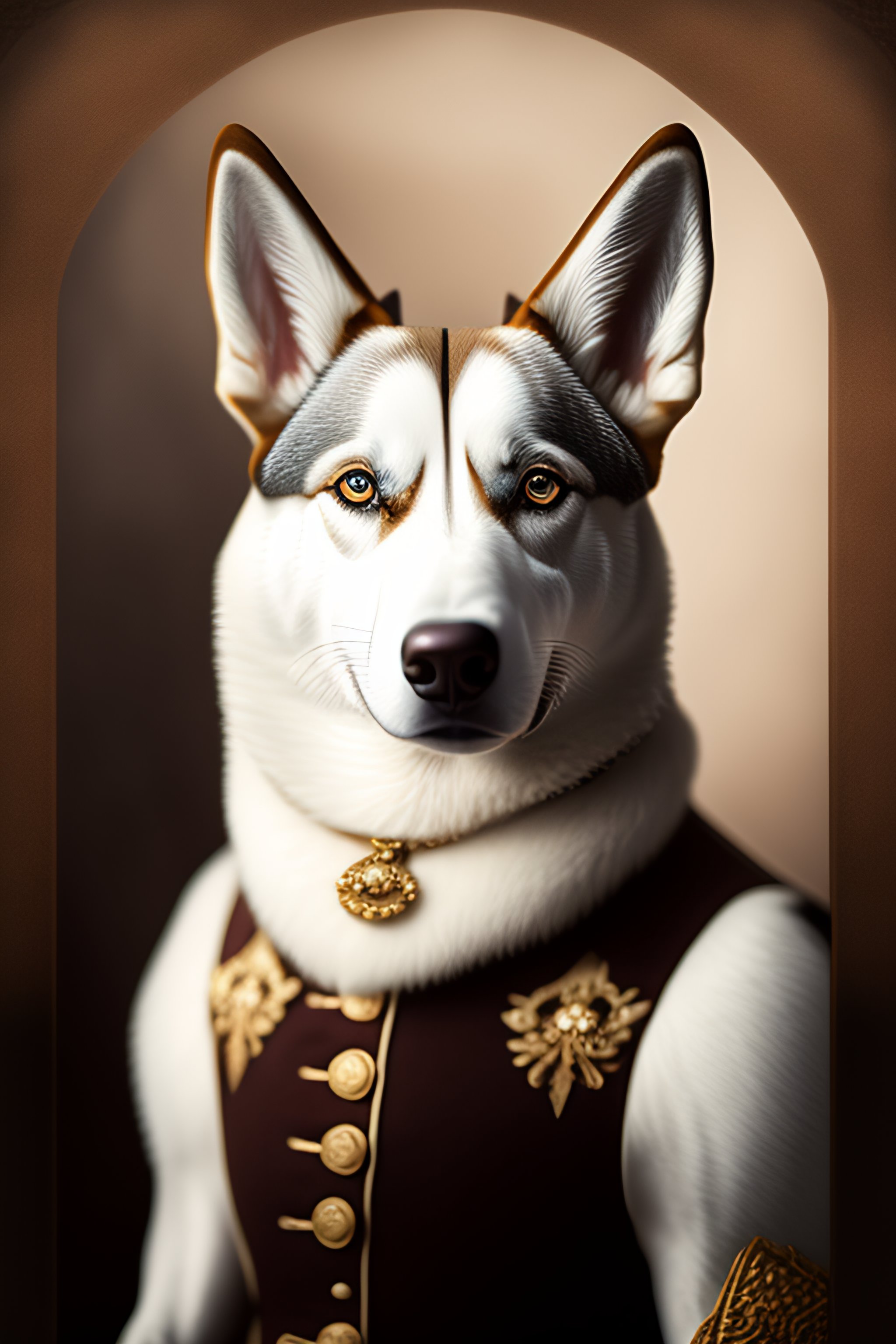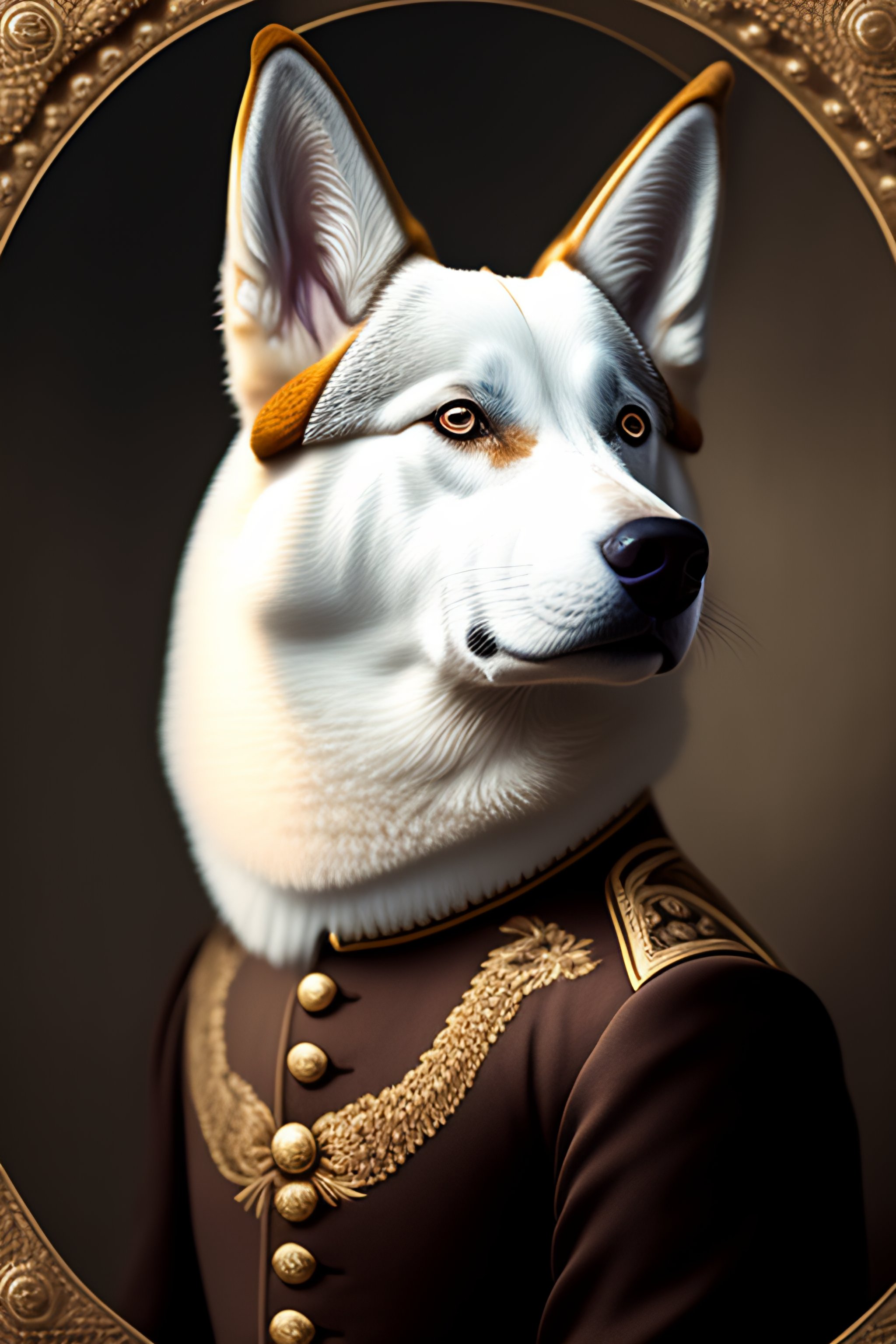 Headshot edwardian photograph portrait of anthro anthropomorphic white husky dog head animal person fursona serious wearing elaborate military general uniform clothes degraded medium by louis daguerre daguerreotype tintype, daguerreotype a brown rabbit, 1 9 2 0 s film actress, realistic face, ethereal, 1 9 1 0 s, grainy, victorian, soft blur