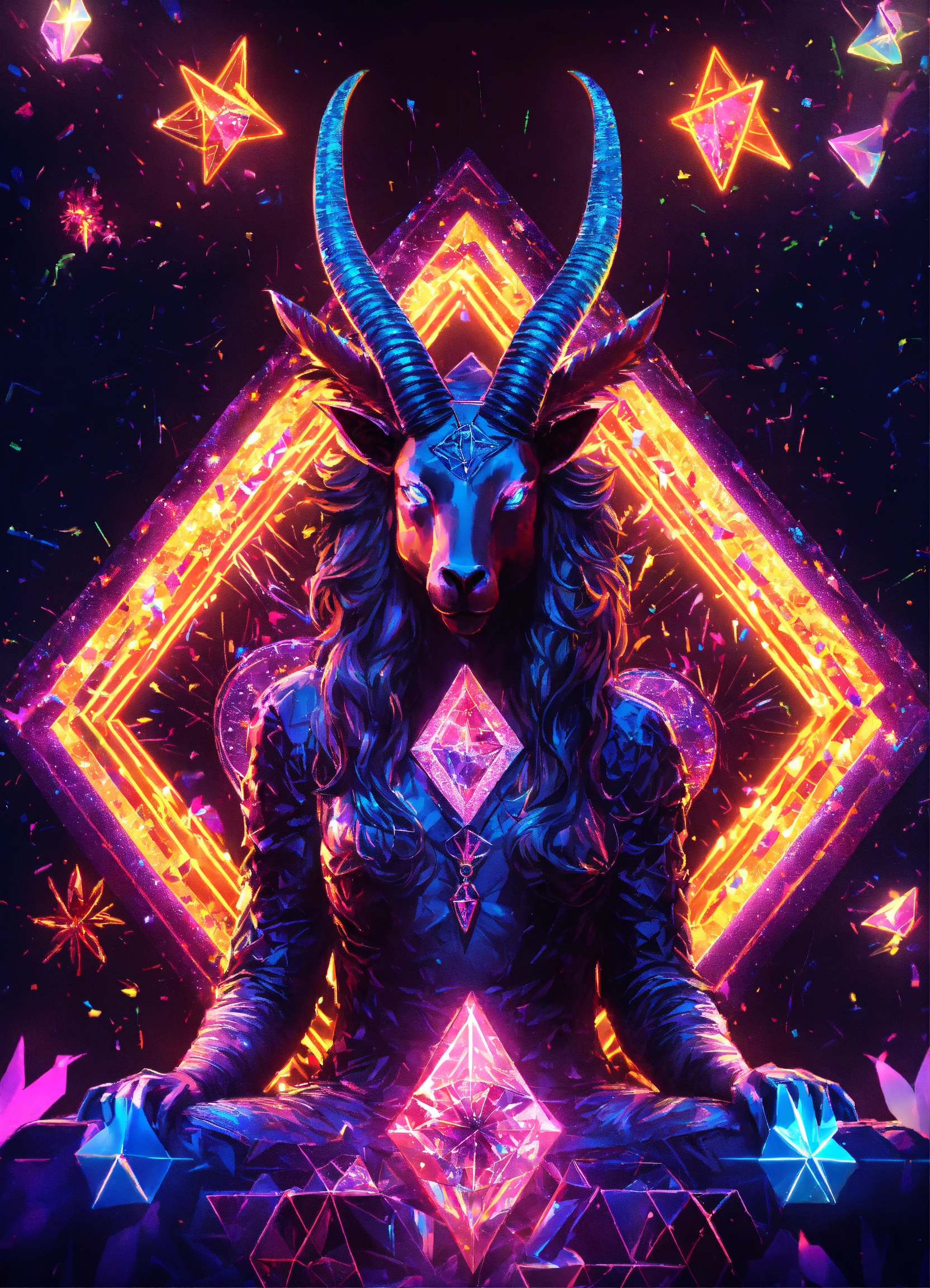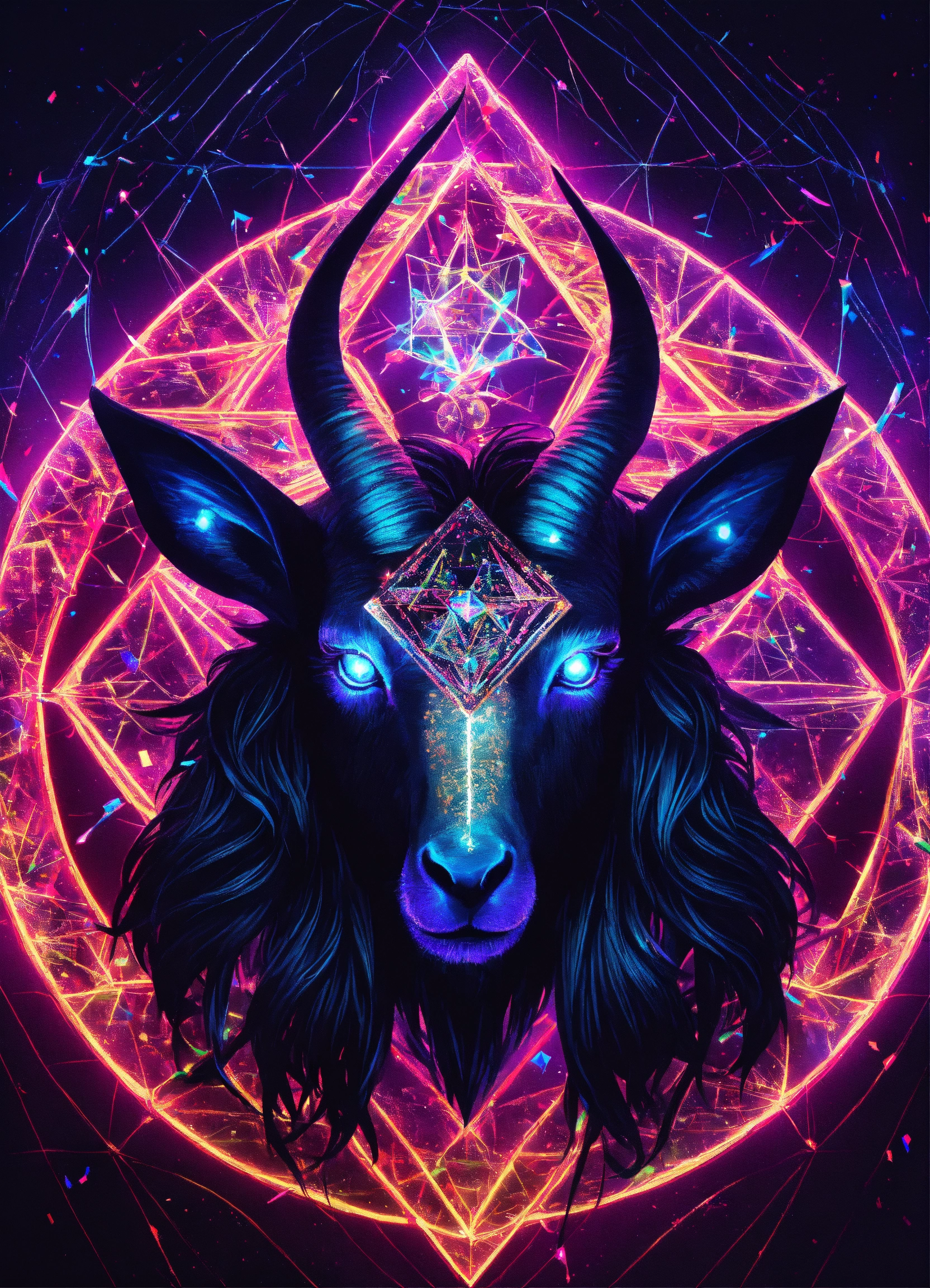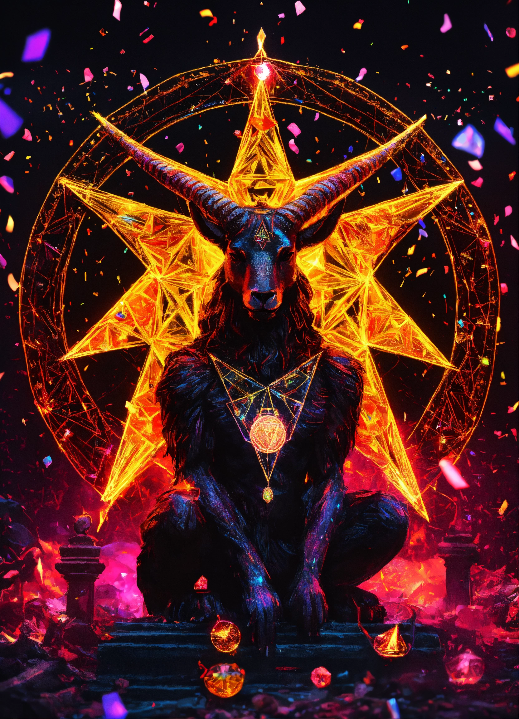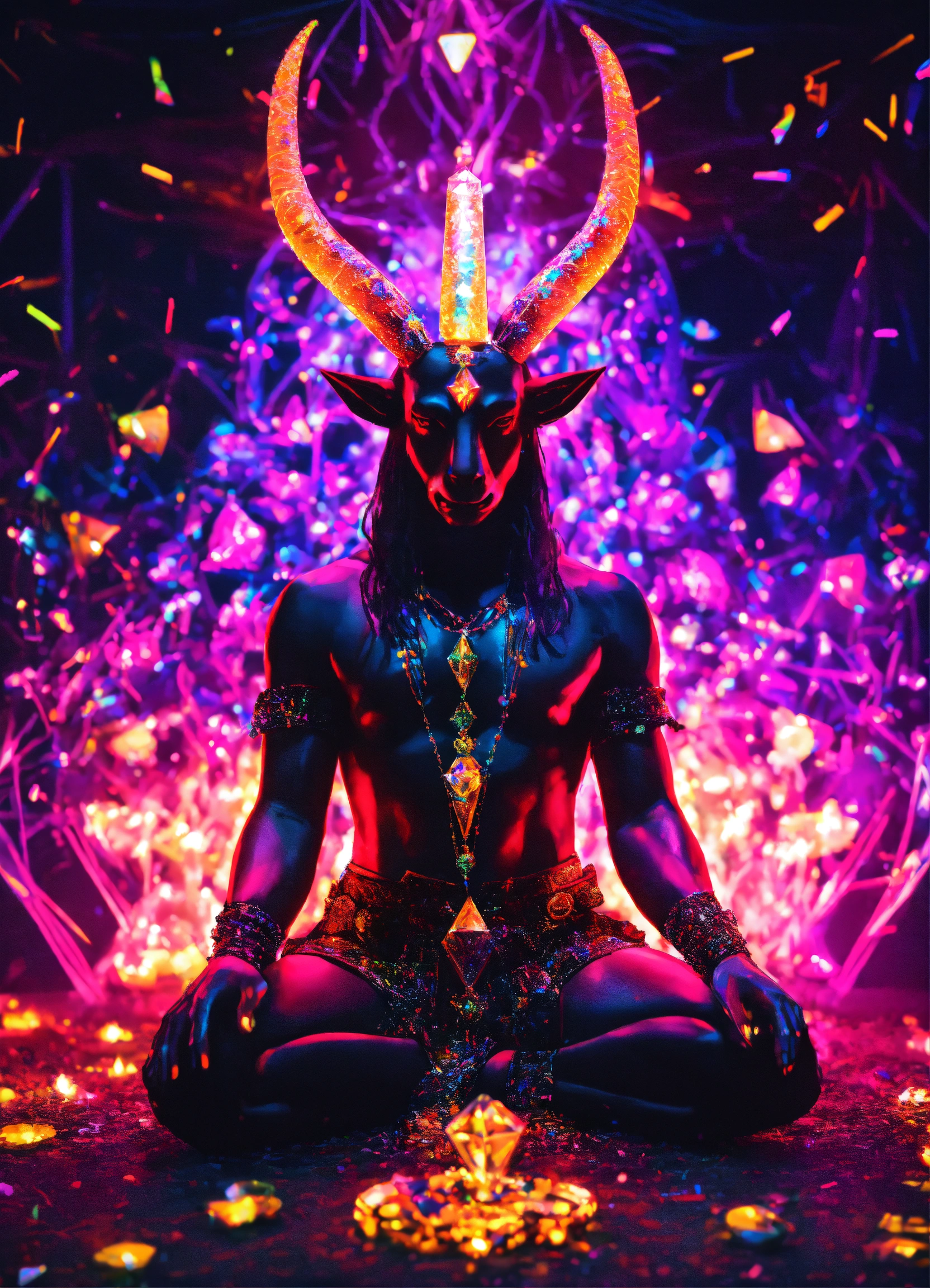 Baphomet made of diamonds and confetti black neon light dmt neon confetti light crystal sacred geometry confetti fireworks