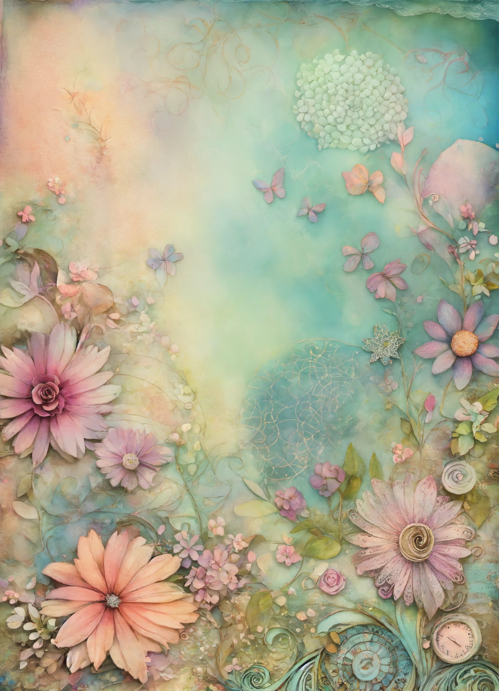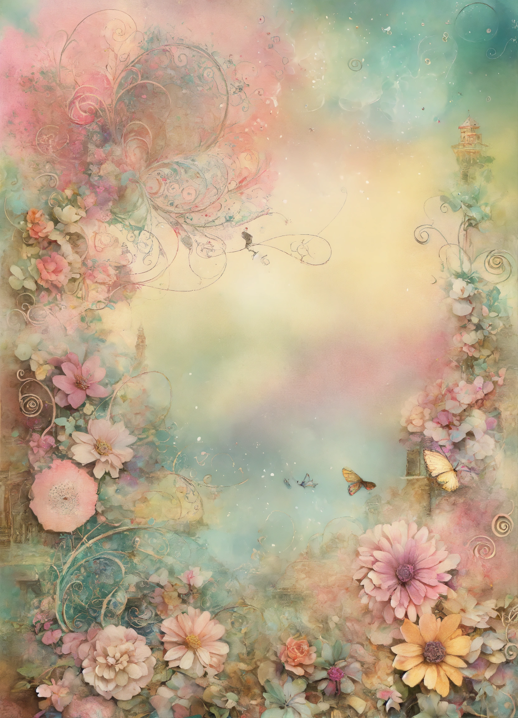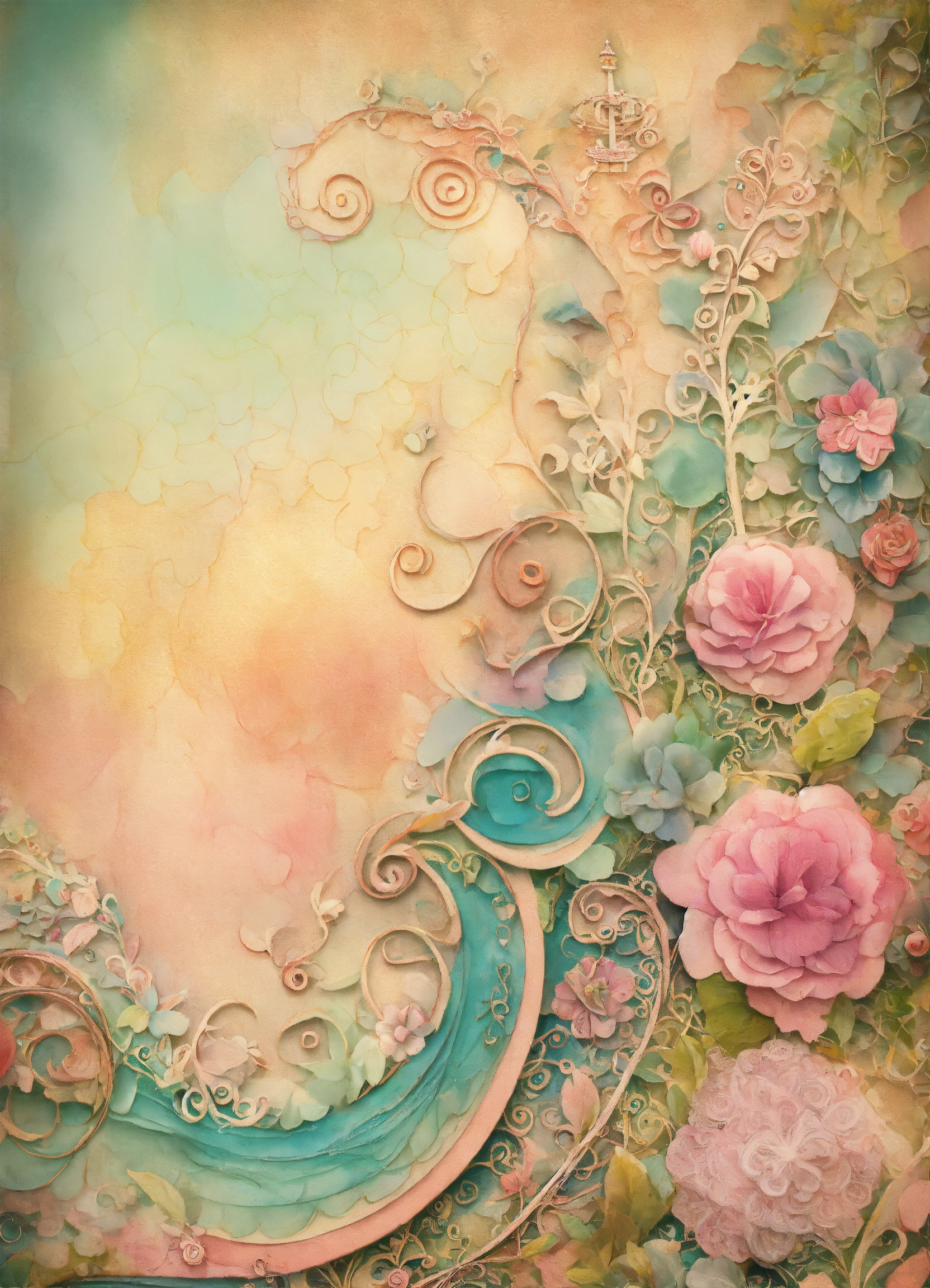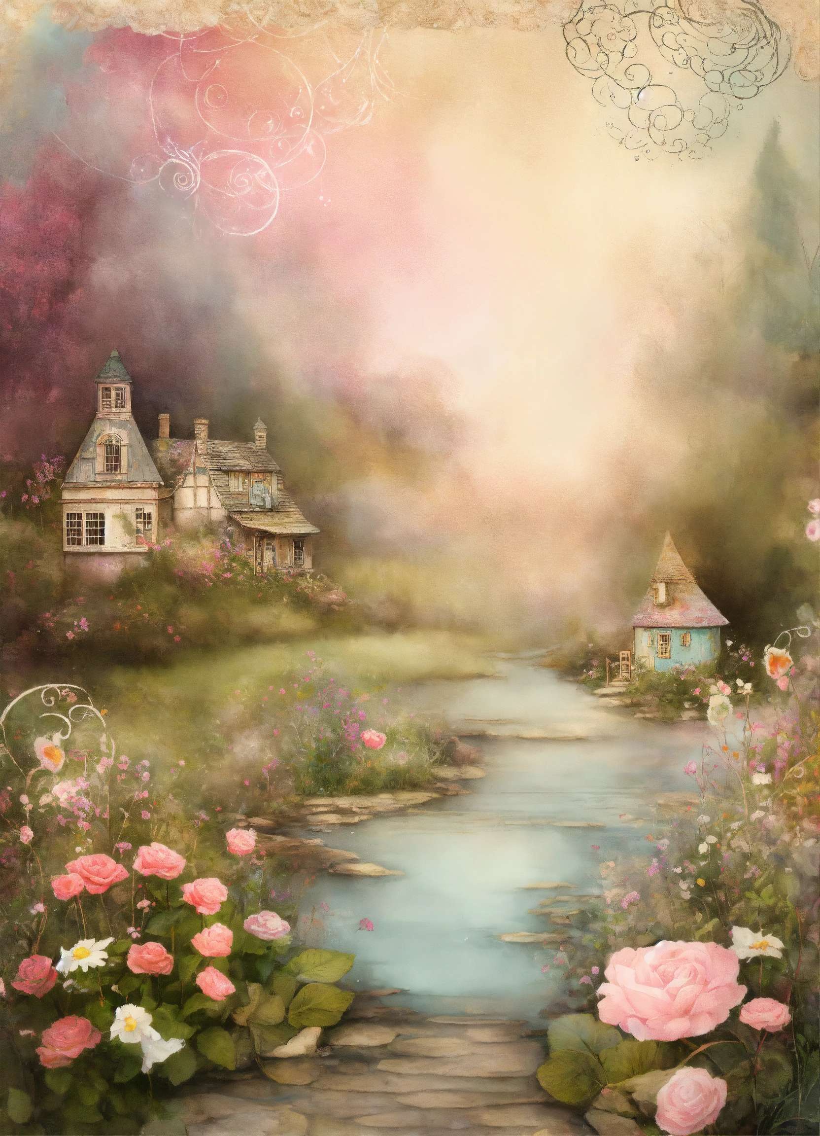 Shabby chic dreamy mist pastel junk journals zentangle swirling magical fairytale abstract art style