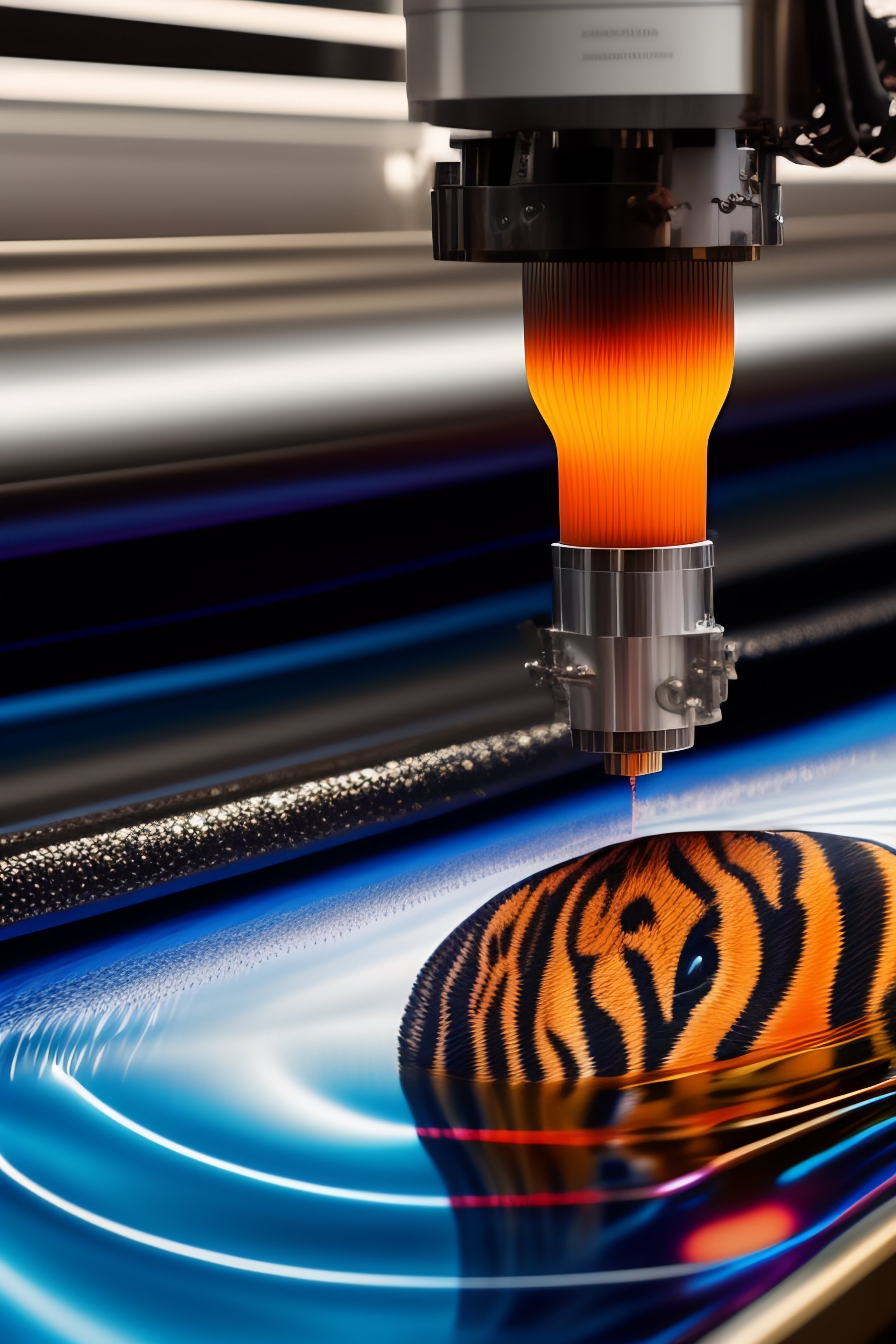 Direct-to-garment printing is a process of printing on textiles using specialized aqueous ink jet technology. most dtg printers have a platen that holds the garment in place while the print head jets or sprays the printer ink onto the t-shirts, printing images such as tigers on them.