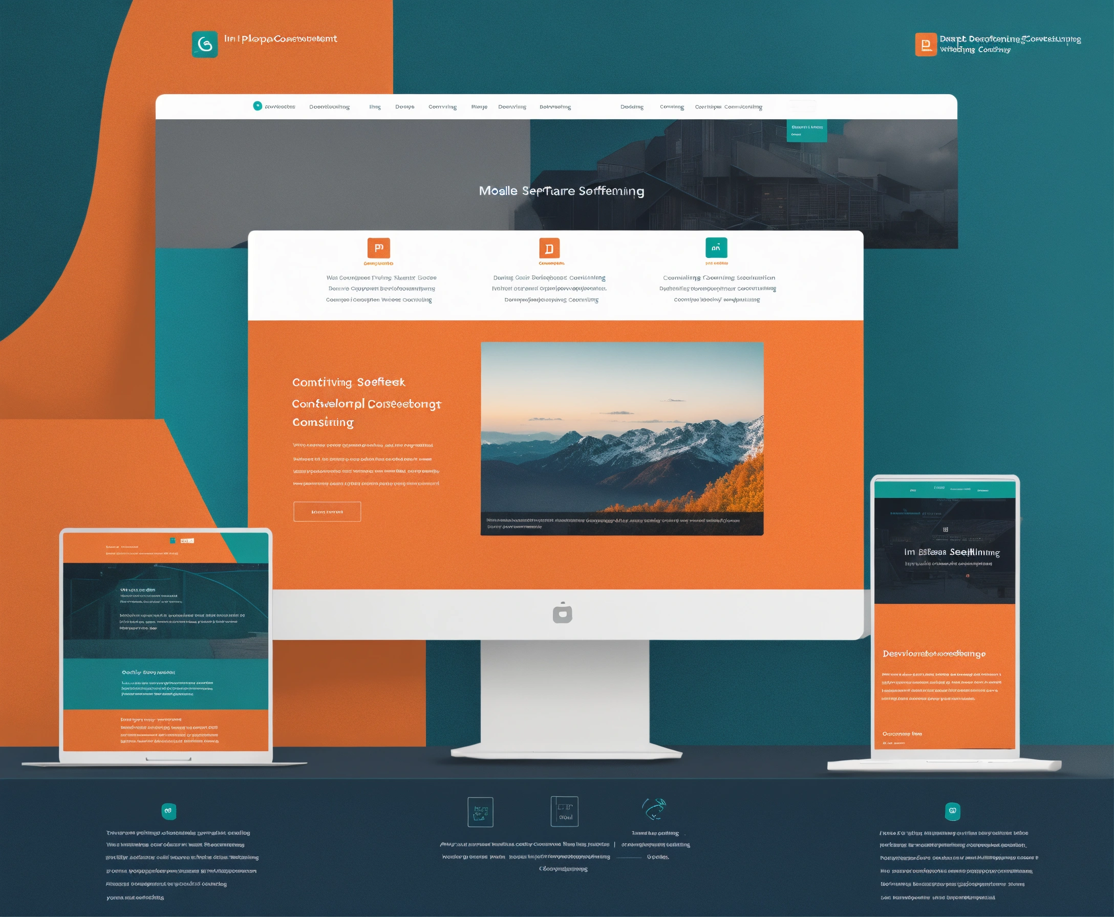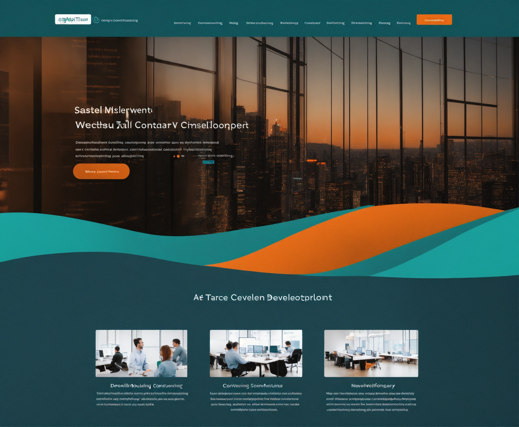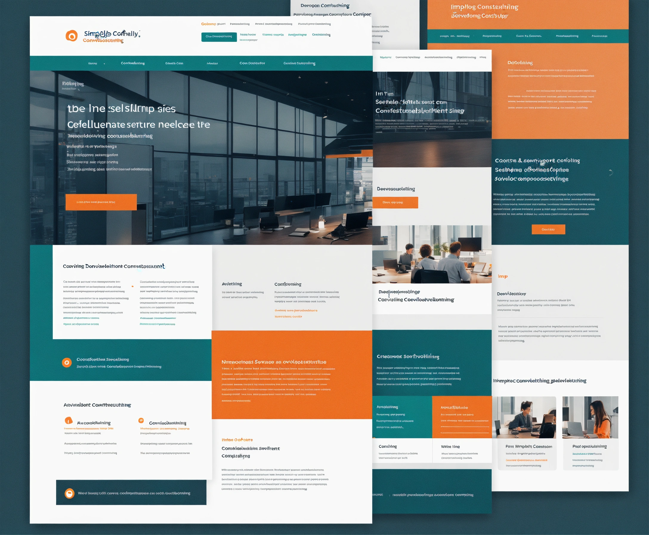 Simple, clean, modern software development consulting company website - in dark teal with orange accent