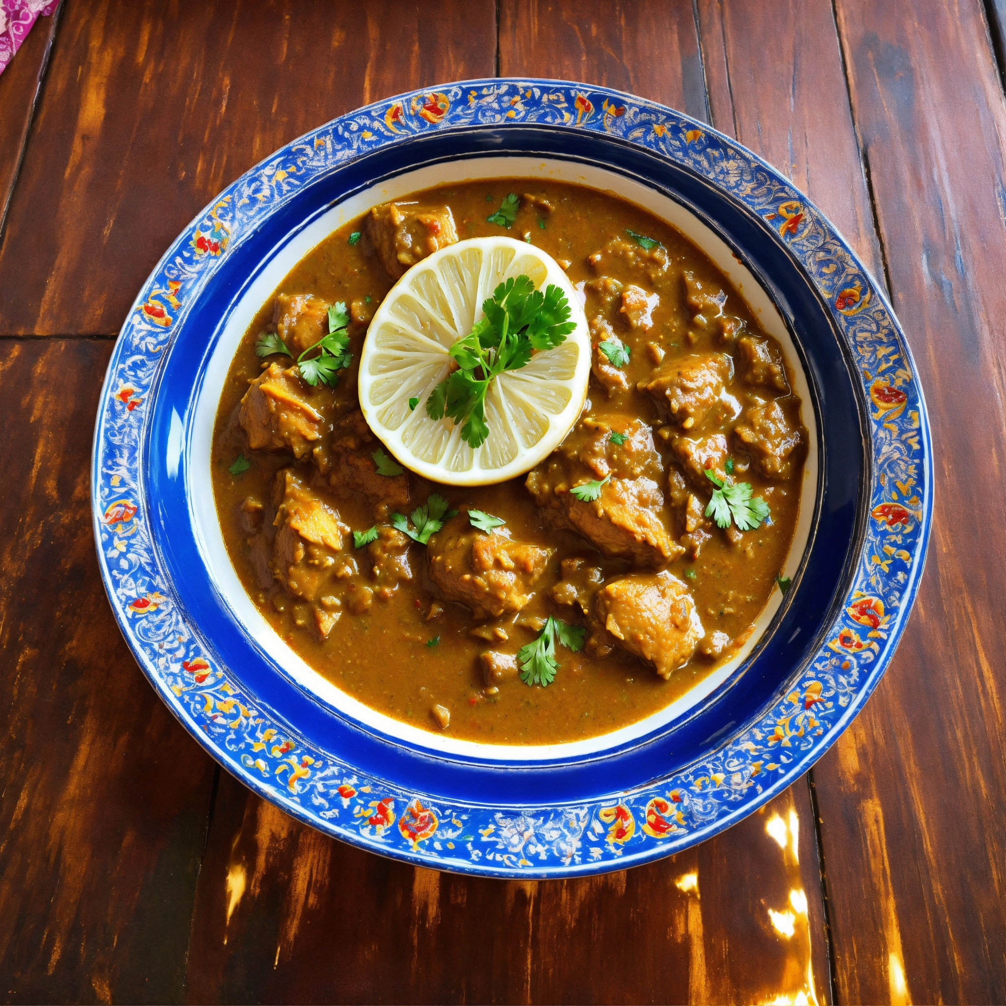 Pakistani mughlai chicken thin gravy with bones, bowl, masala background, traditional, appetising, delicous, hot, leg pieces . thin gravy