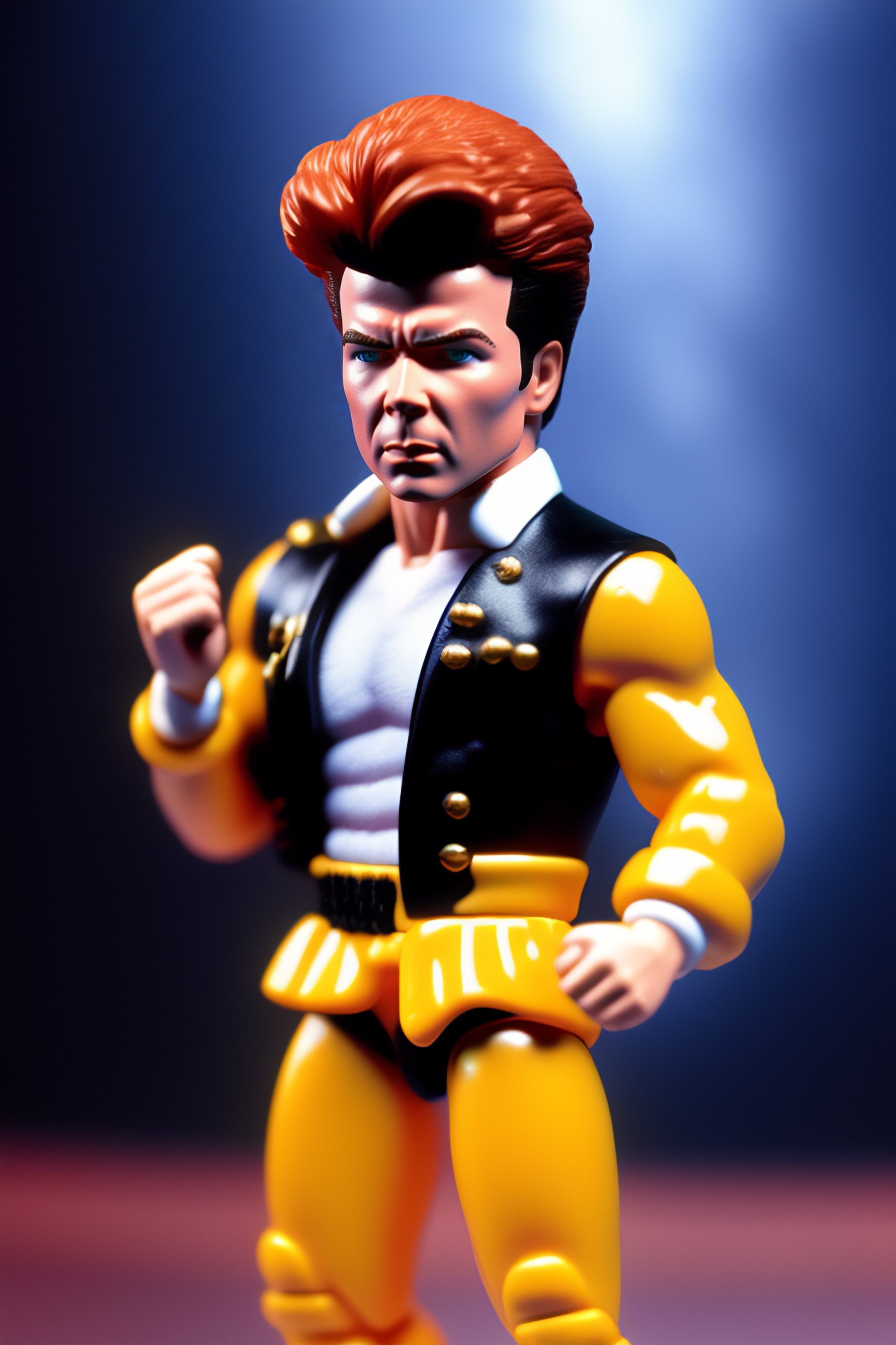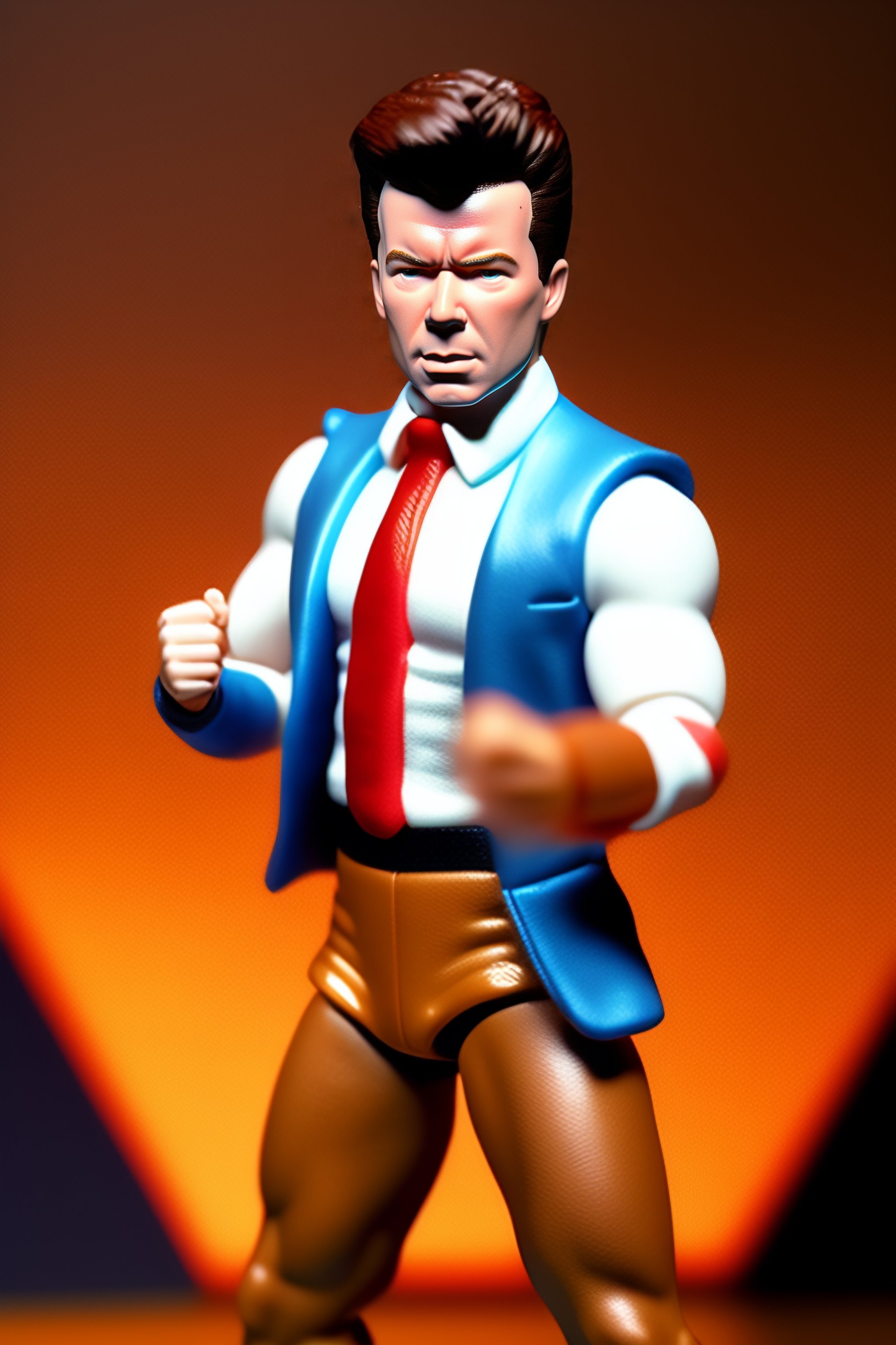 Rick astley as a 1 9 8 0 s wrestling action figure, explosion background sad and crying in a state opf depression