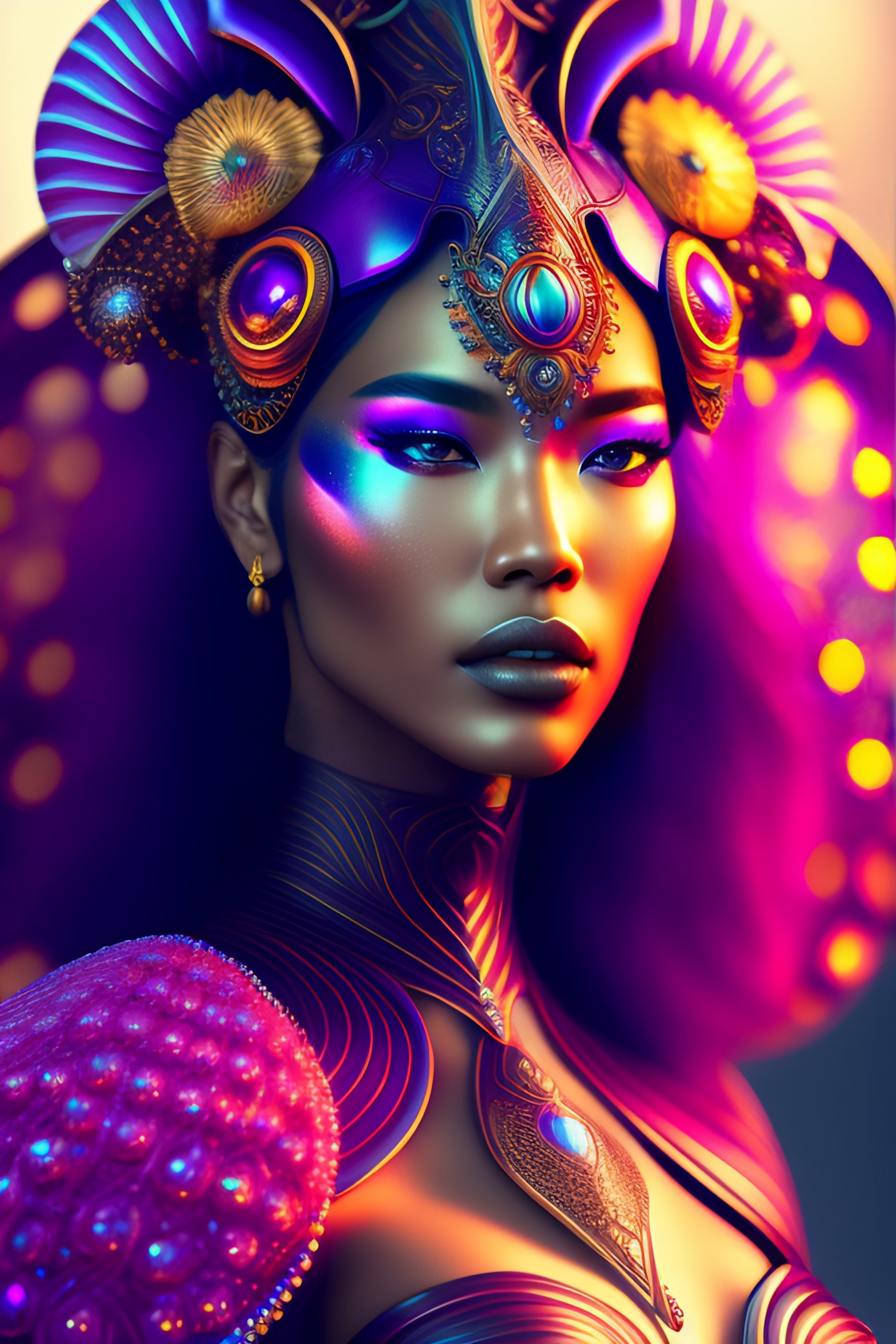 Goddess princess beautiful face close-up portrait ram skull zbrush sculpt. jellyfish phoenix head, nautilus, orchid, skull, betta fish, bioluminiscent creatures, intricate artwork octane render, very coherent symmetrical artwork. cinematic, hyper realism, high detail, octane render, iconic korean cyborg humanoid model with hallucinatory experience, lush magic plants and lace circuits, cyberpunk futuristic haute-couture clothes, dynamic, particulate, rich colors, intricate, elegant, highly detailed, the vogue, harper's bazaar art, fashion design, smooth, sharp focus, 16 k, a cinematic masterpiece