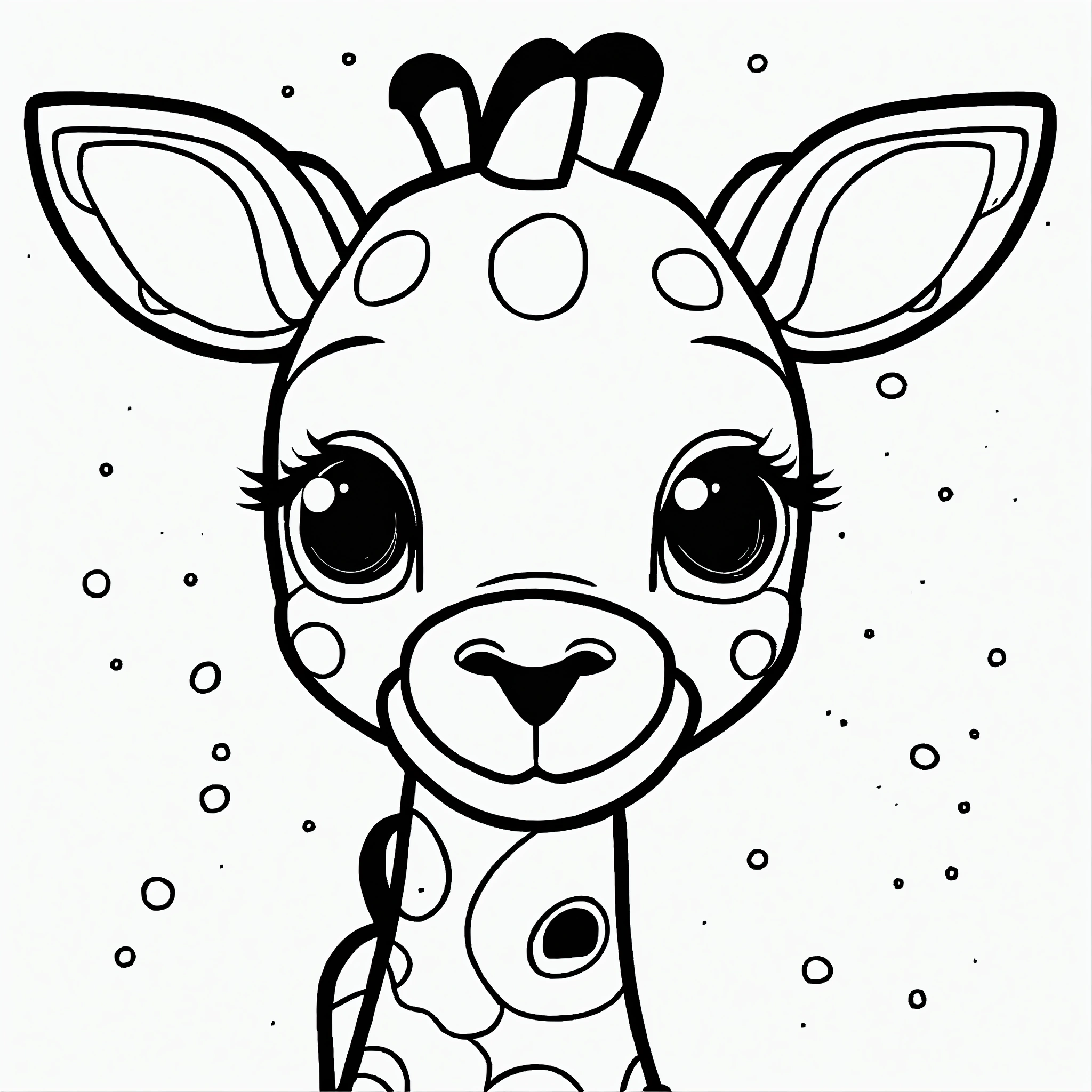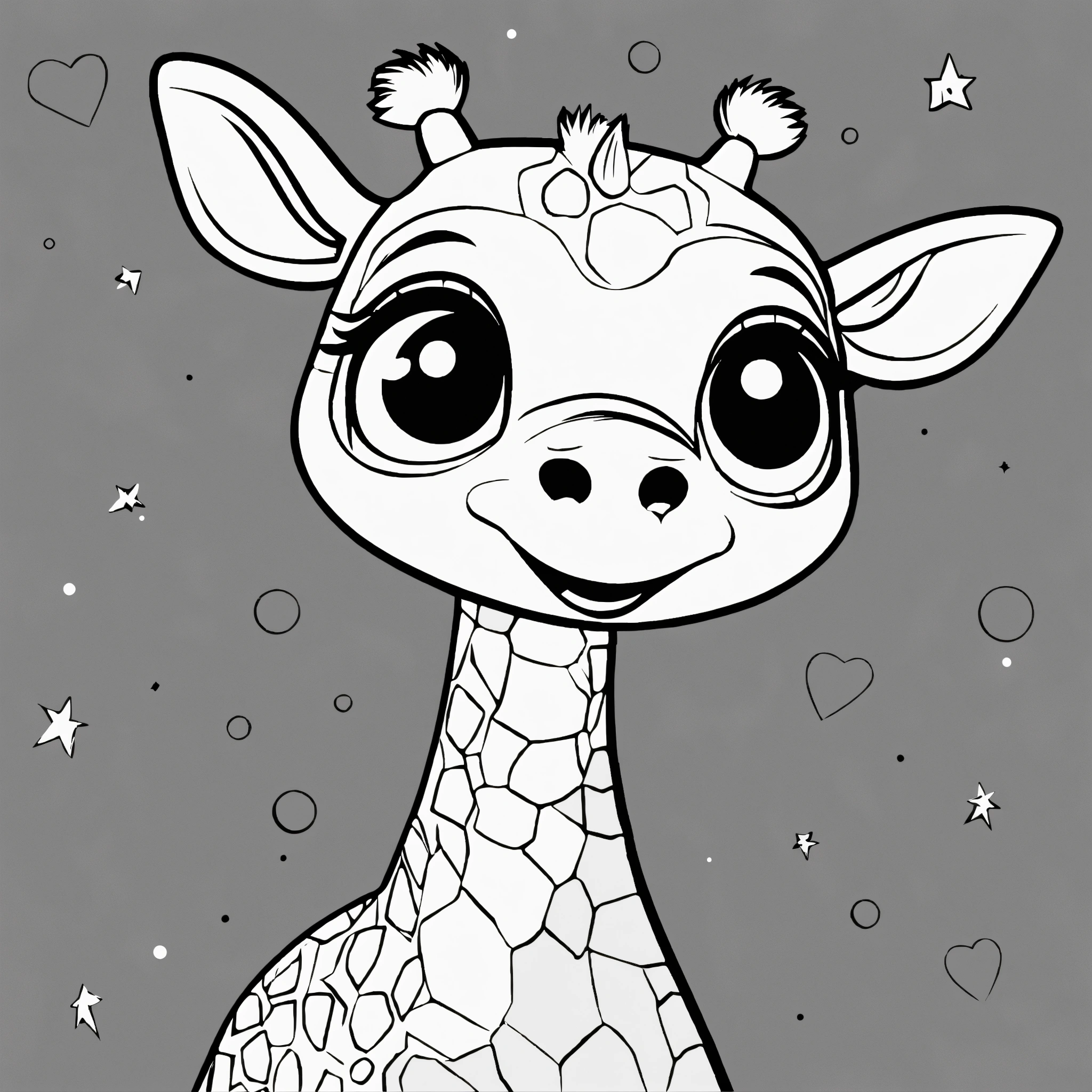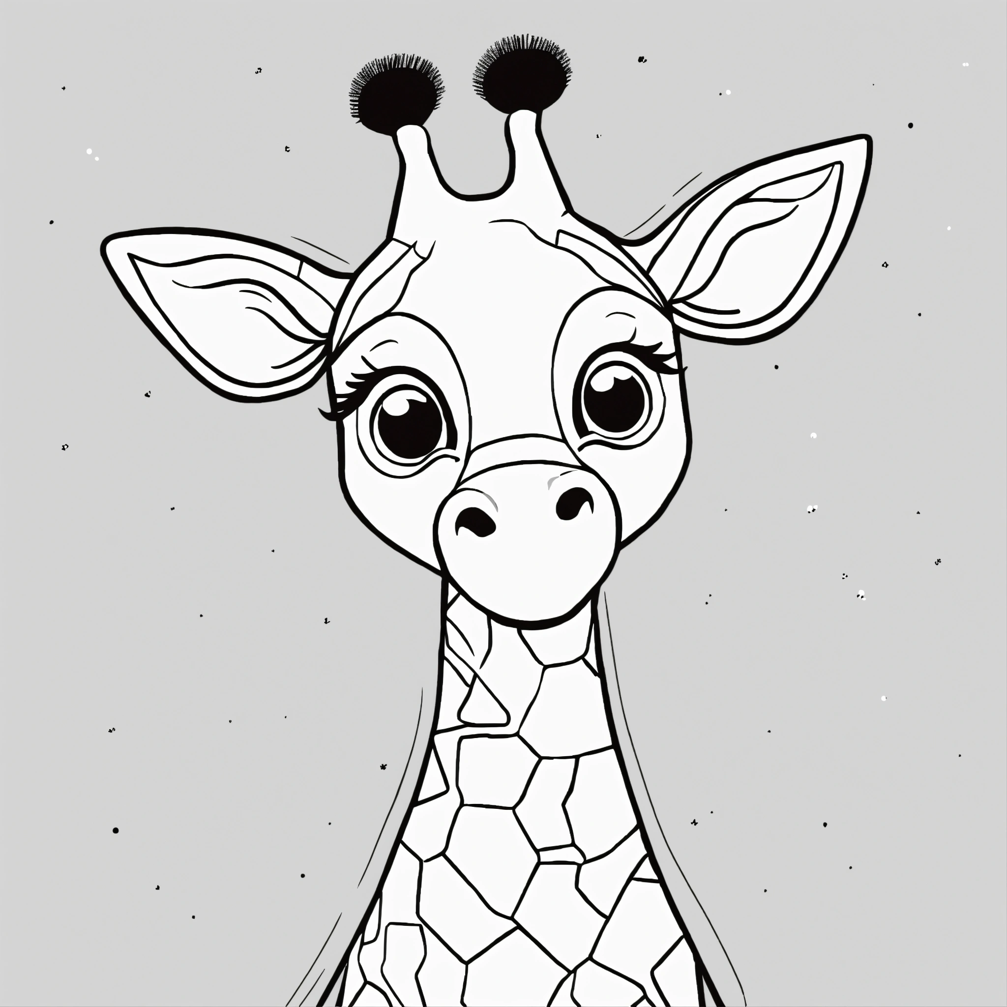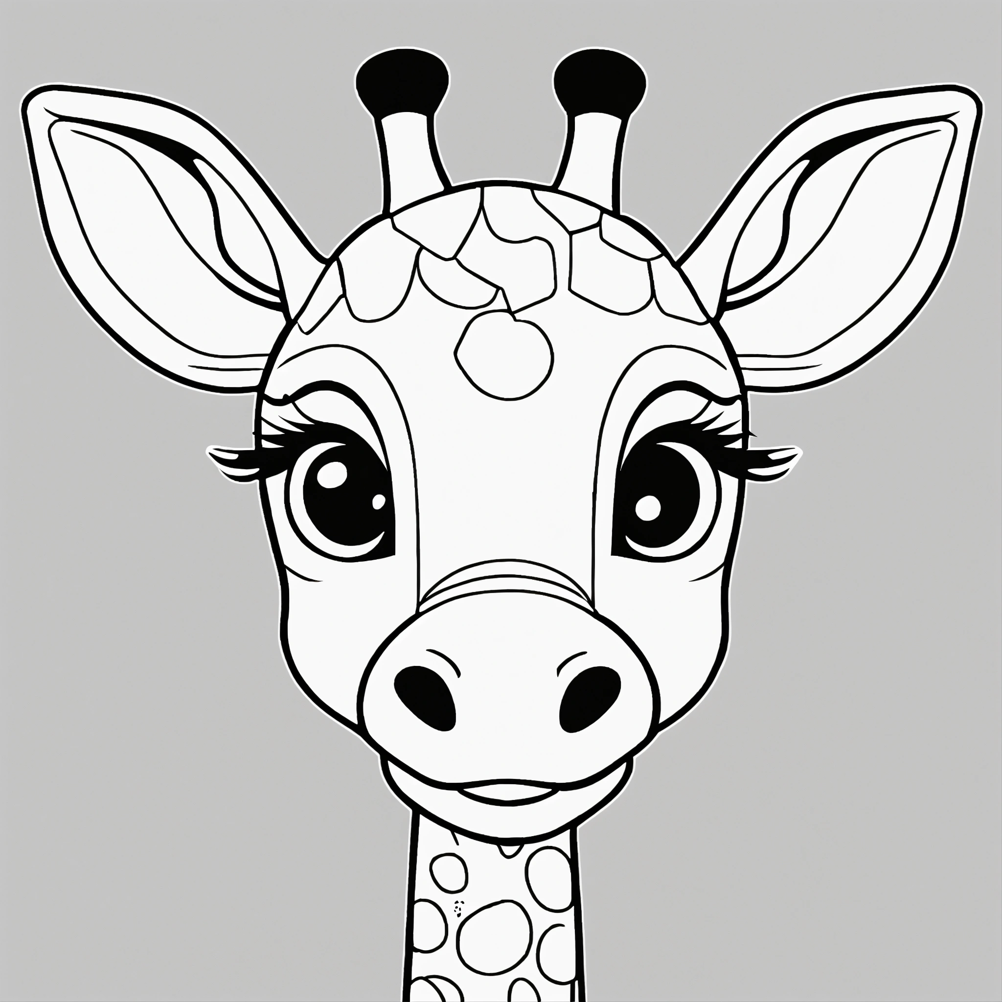 Cute giraffe for a toddler’s, big cute eyes, pixar style, simple outline and shapes, coloring page black and white, flat vector, white background, clean line art, simple, only lines