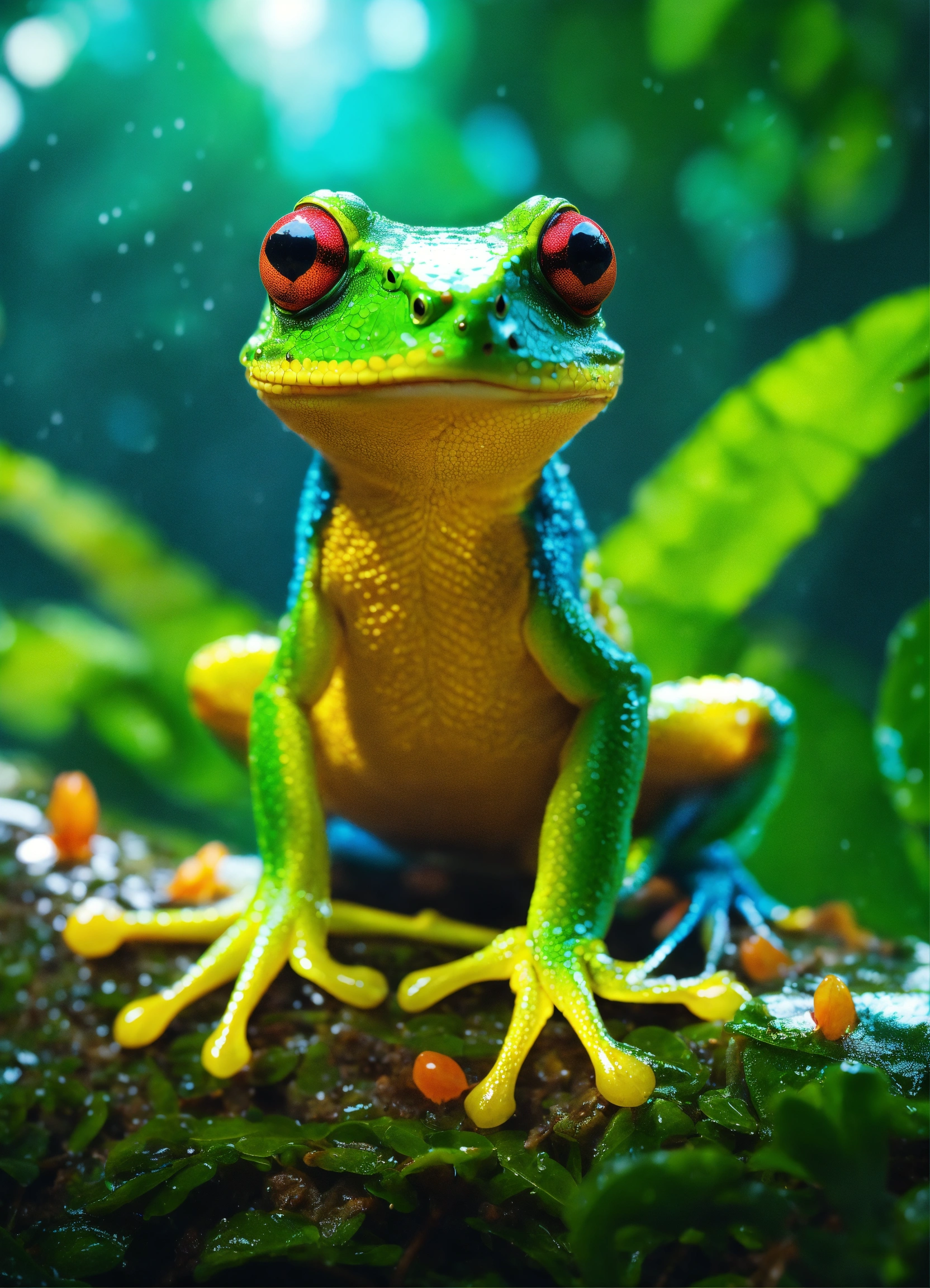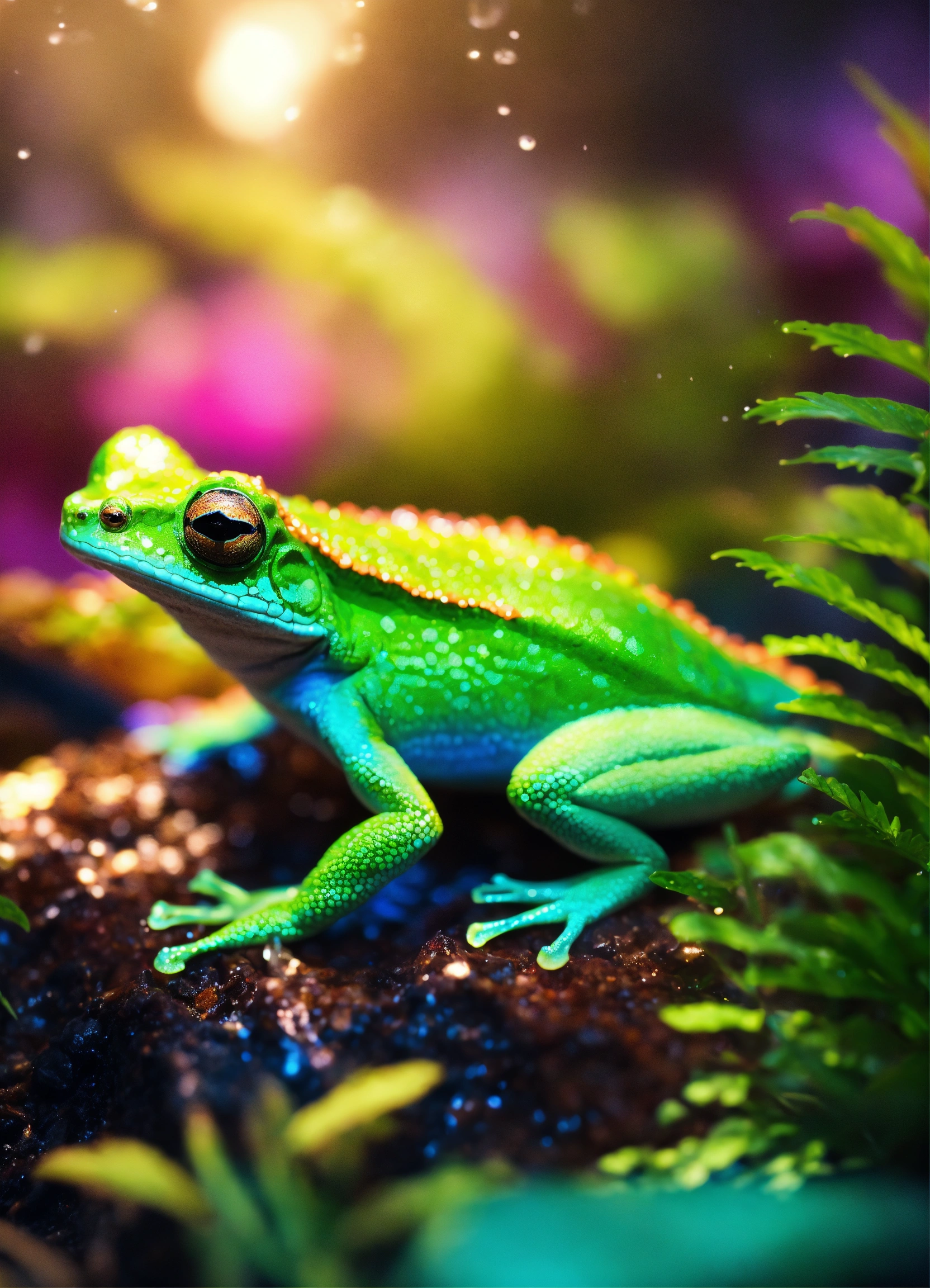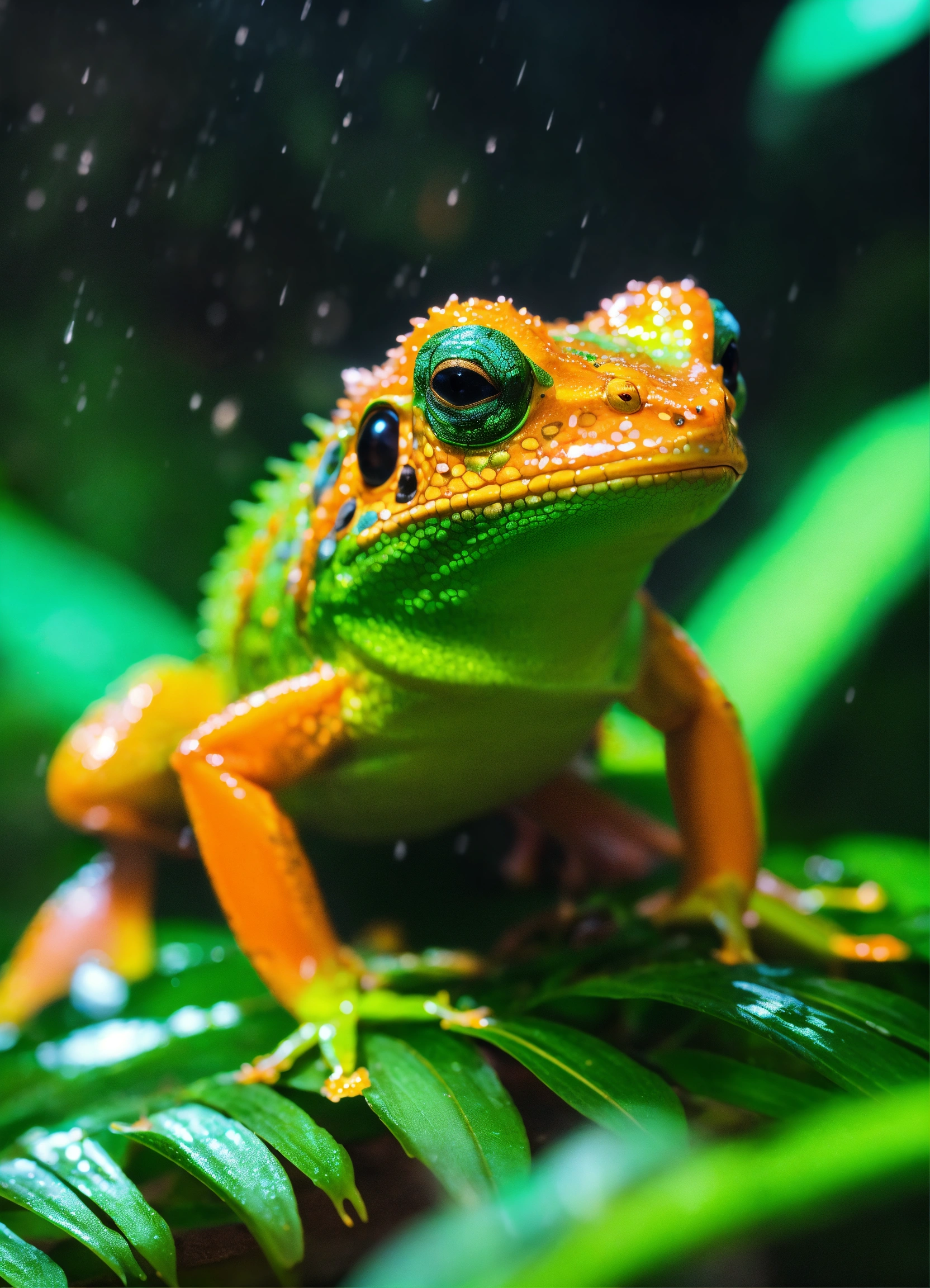 13. radiant rainfroguana this critter in 8k ultra 3d exudes the brilliance of a tropical rainforest, its radiant skin reflecting the lush greenery of its habitat.