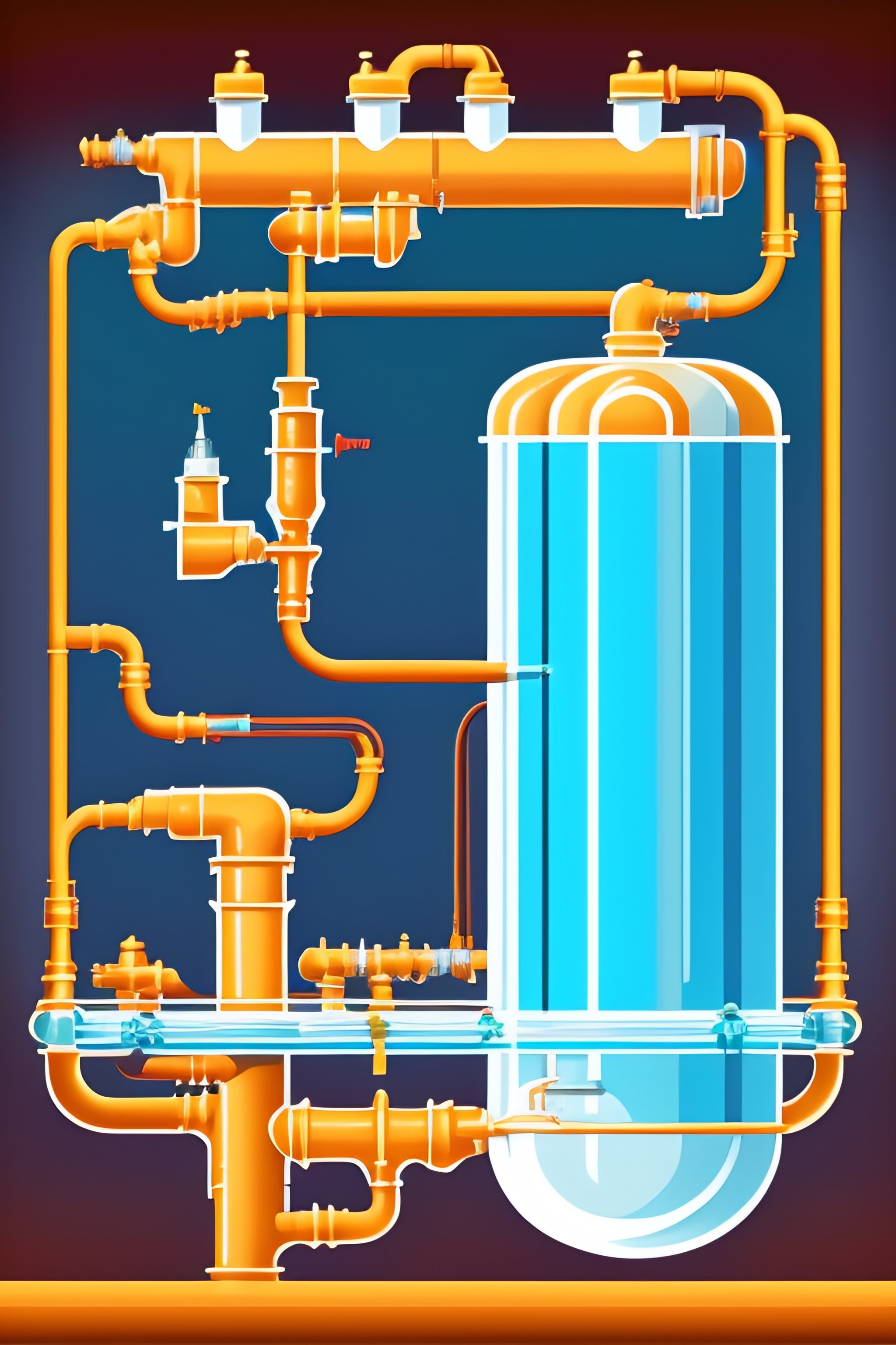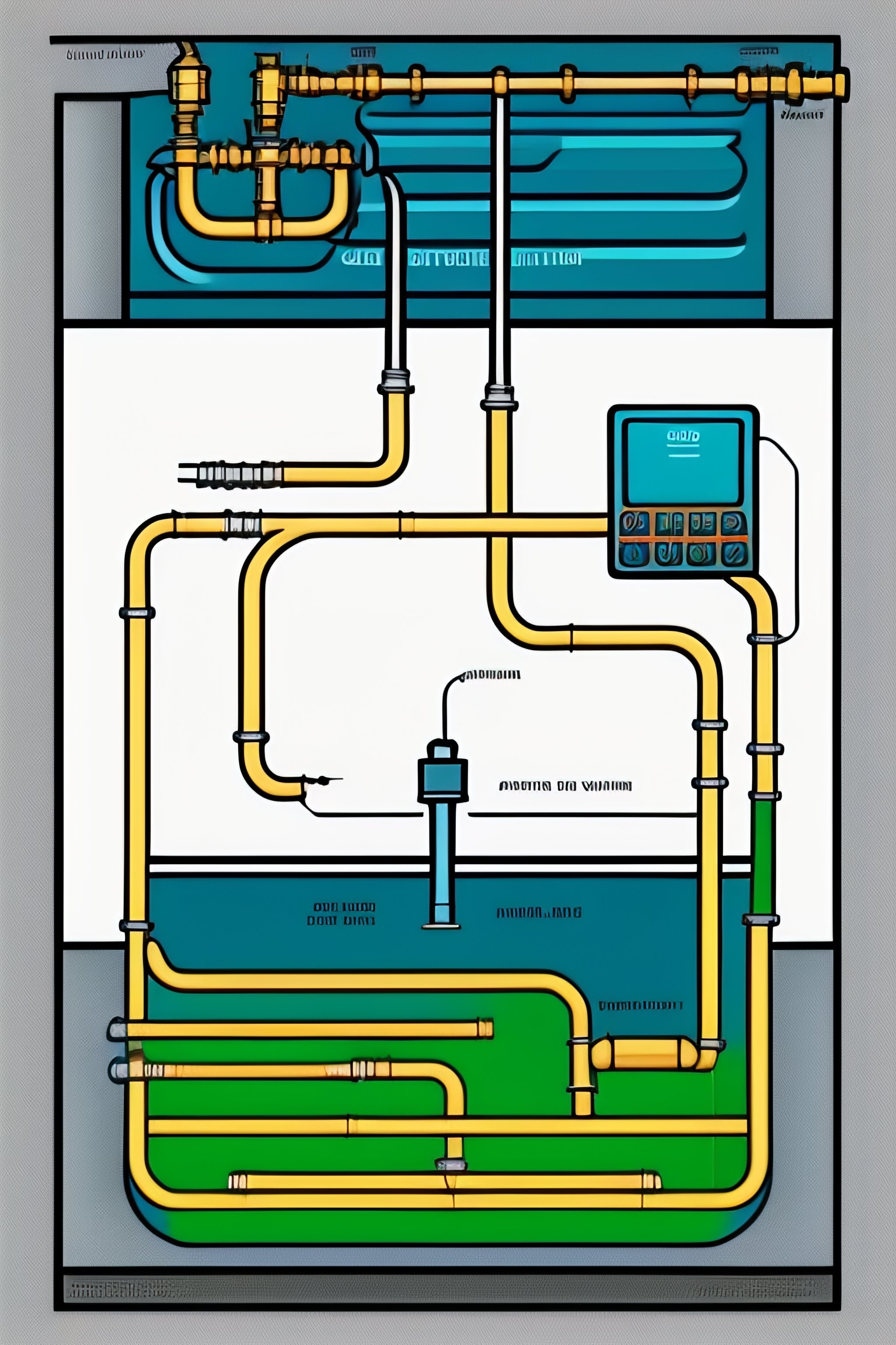 Draw a schematic illustration of a water distribution system inluding a reservoir, a tank, a pump, a valve and demand nodes