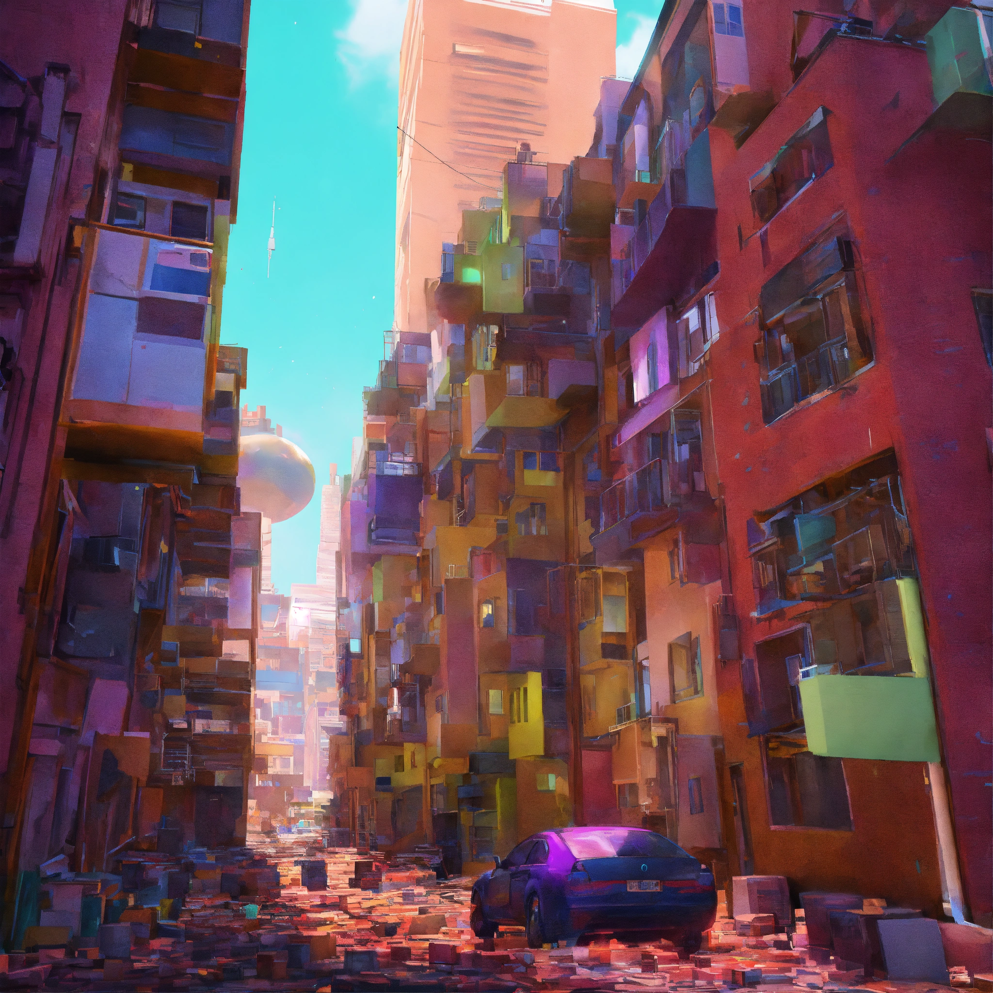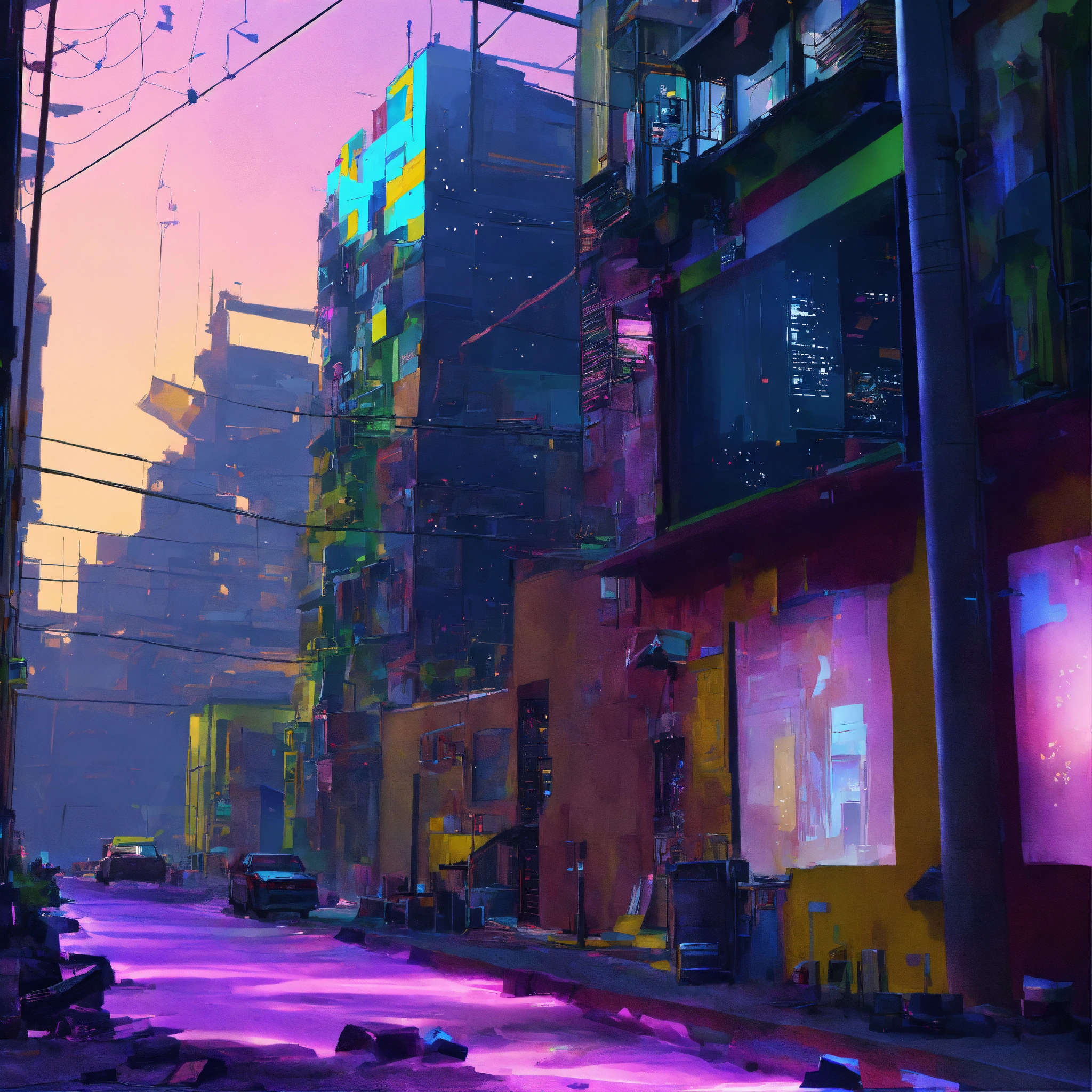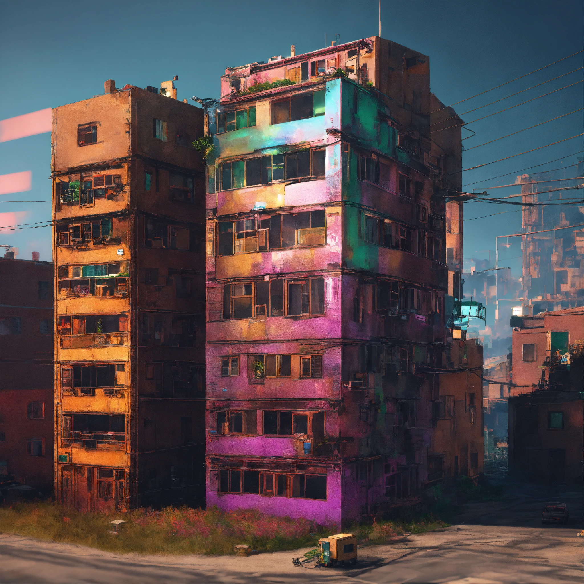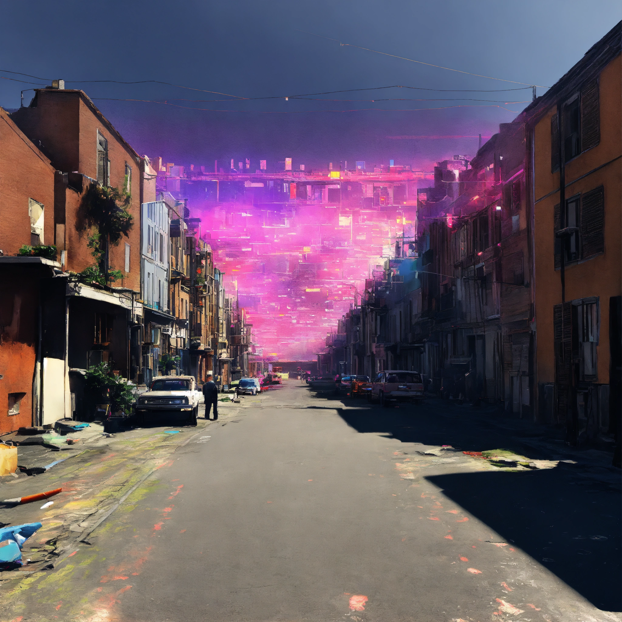 Un effet glitch dans un univers galactique avec des bâtiments comme un ghetto