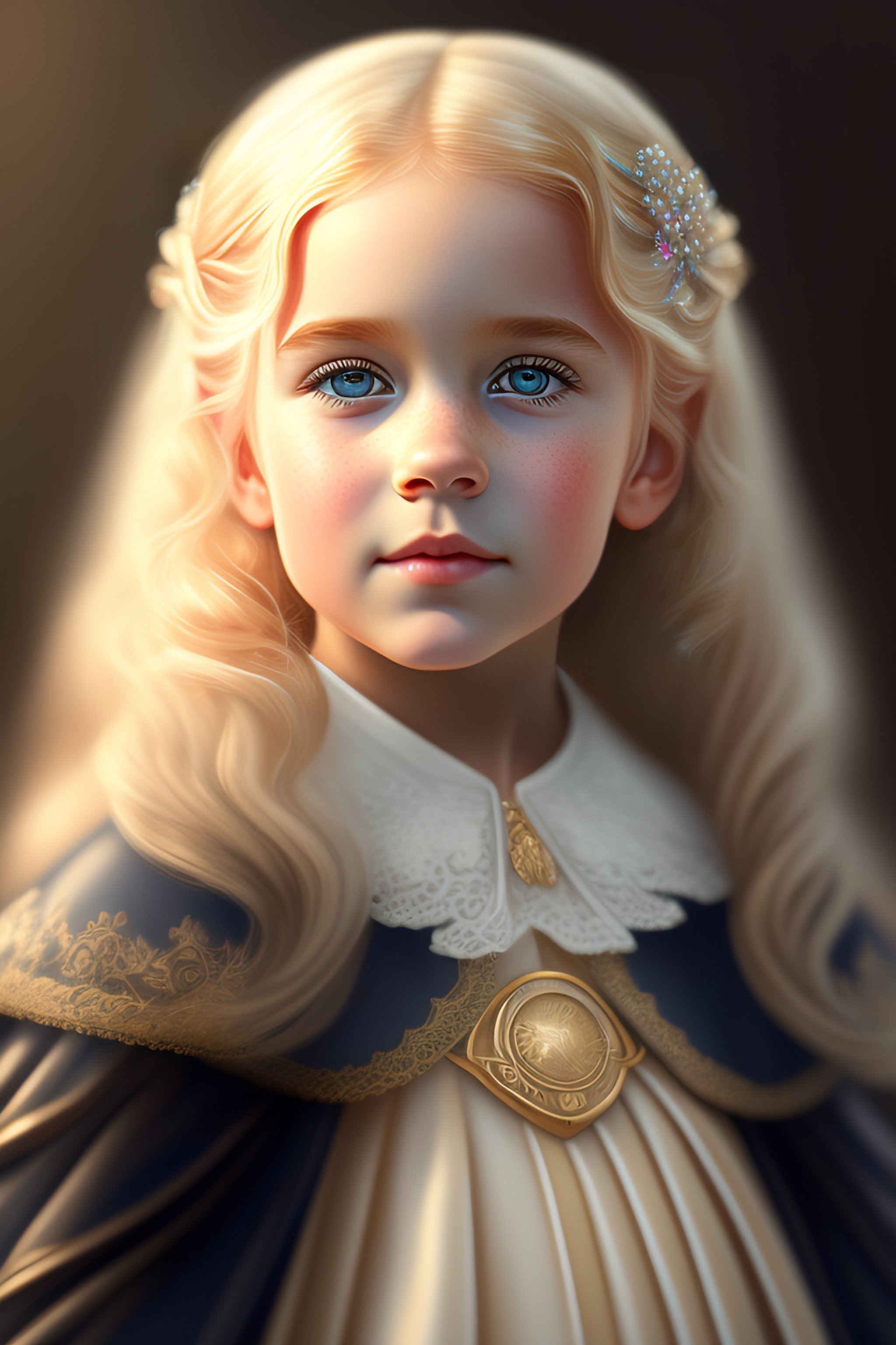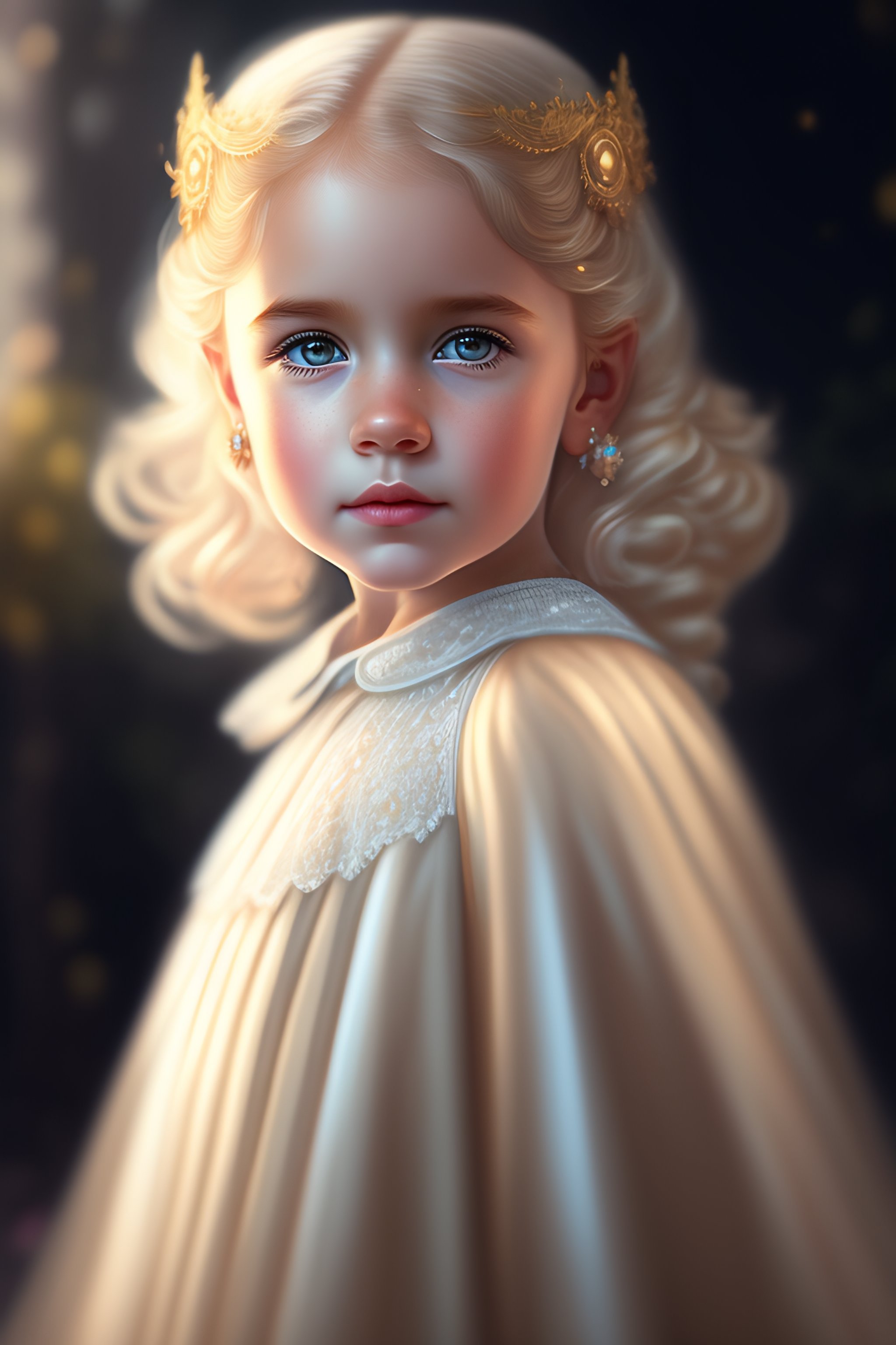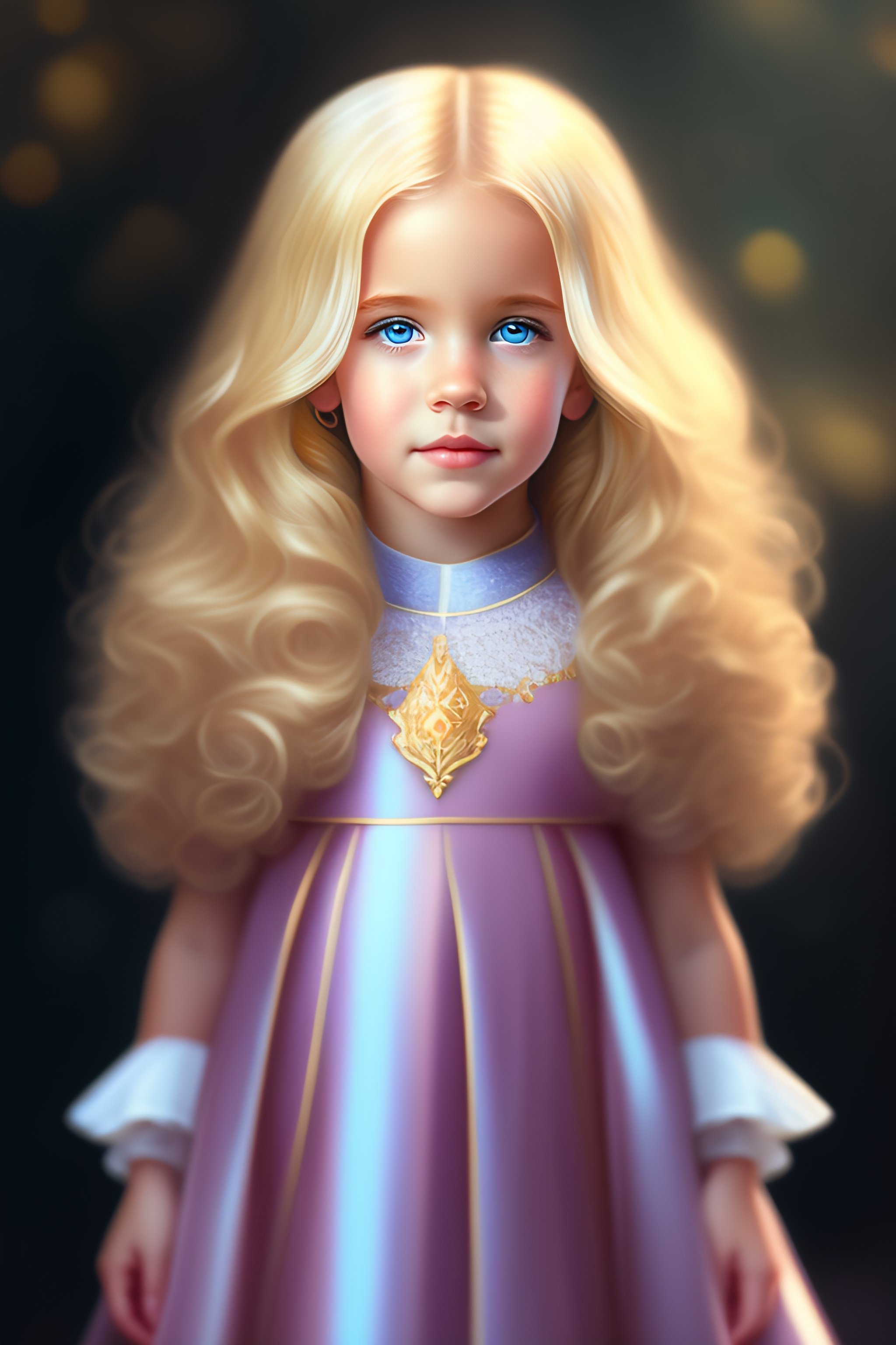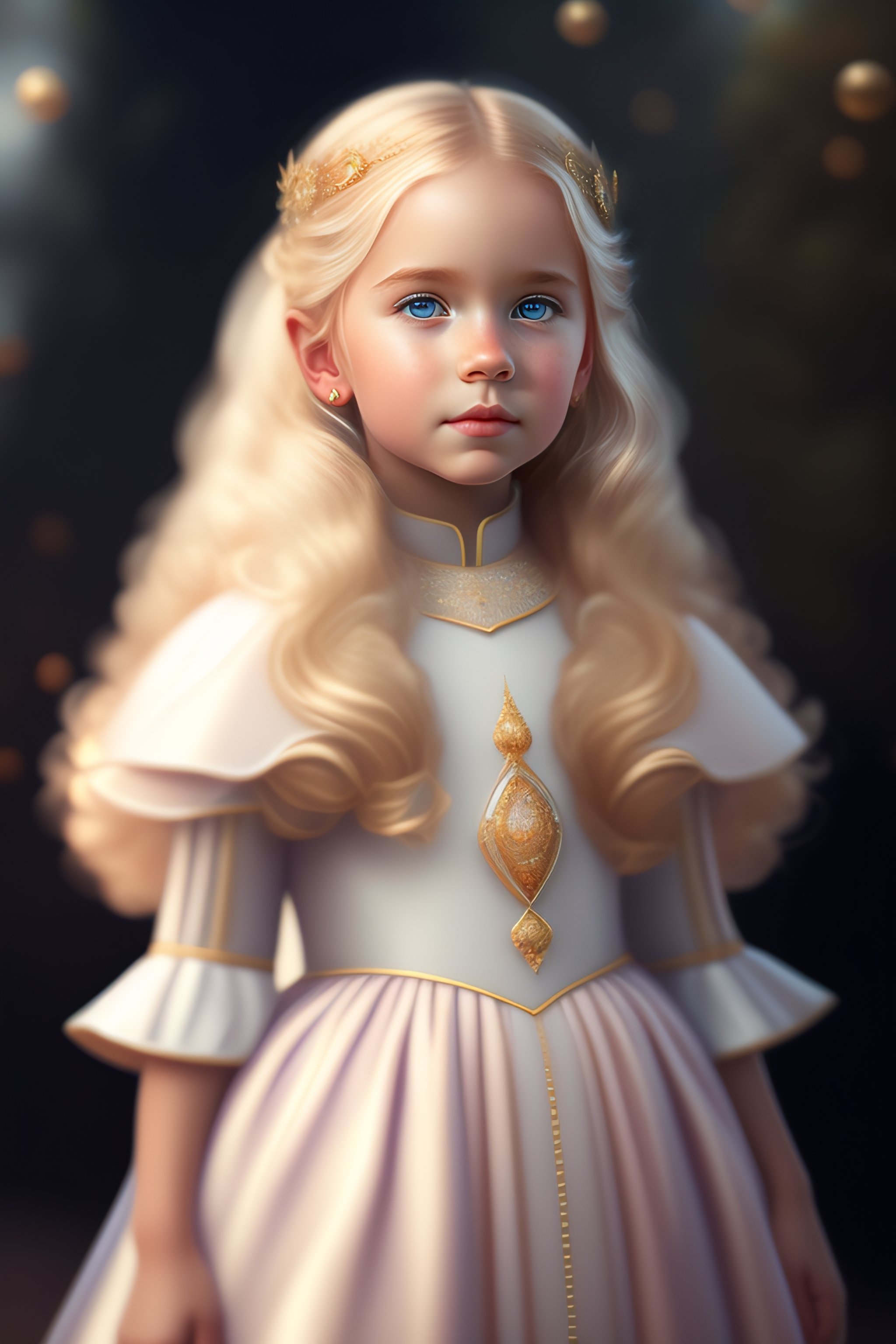 Little girl with spectral orbs floating in her hands dress like a princess, blond hair, digital art, realistic painting, character design, trending on artstation