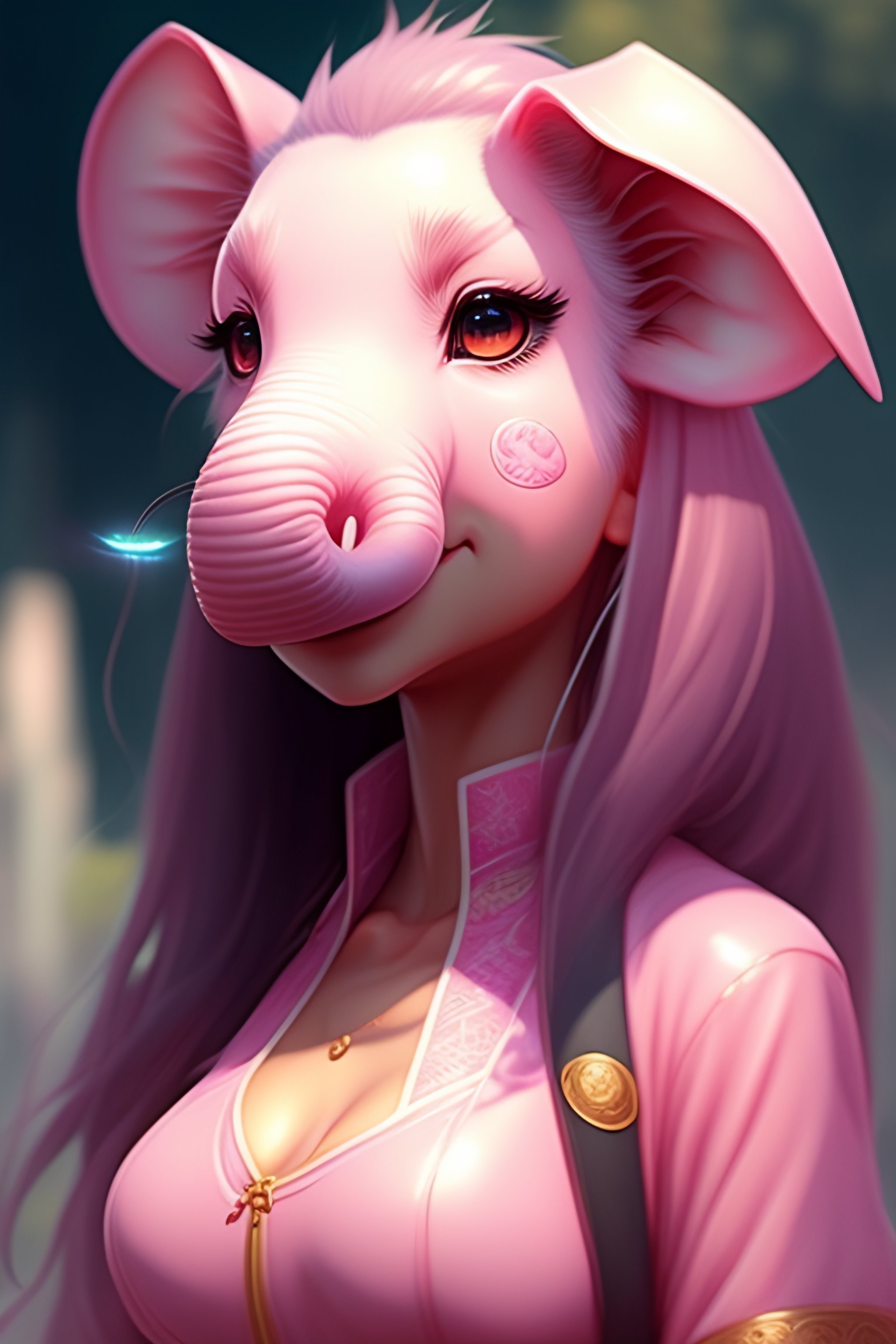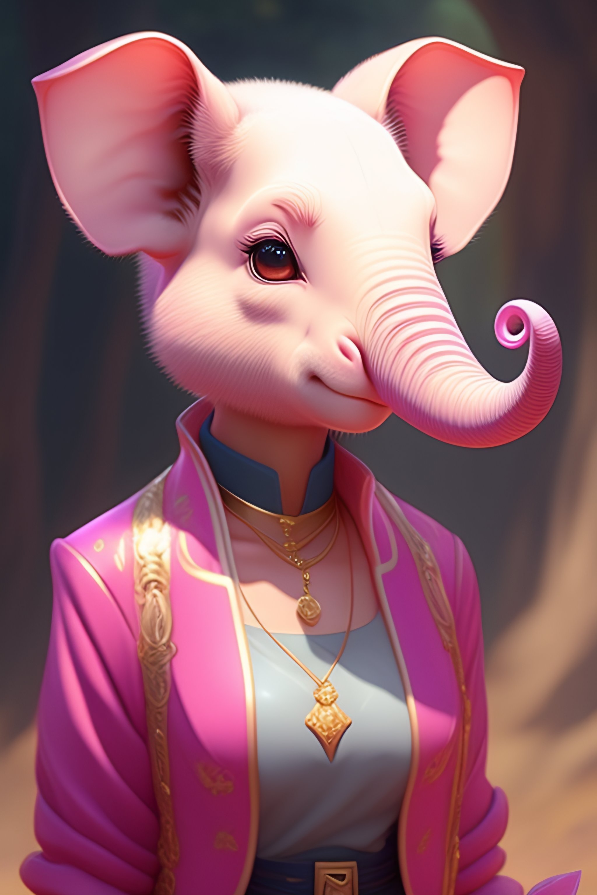 Character concept art of an anime pink elephant | | cute - face, fine details by stanley artgerm lau, wlop, rossdraws, james jean, andrei riabovitchev, marc simonetti, and sakimichan, tranding on artstation