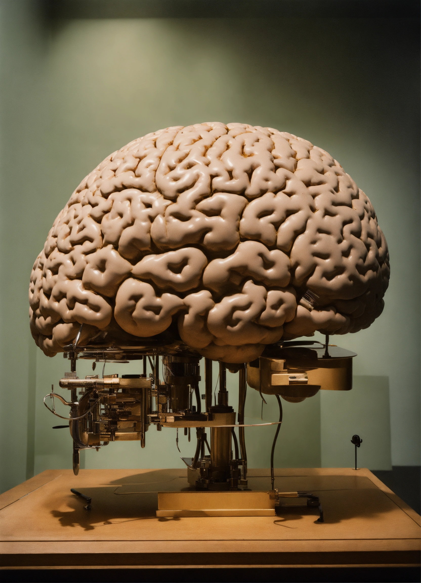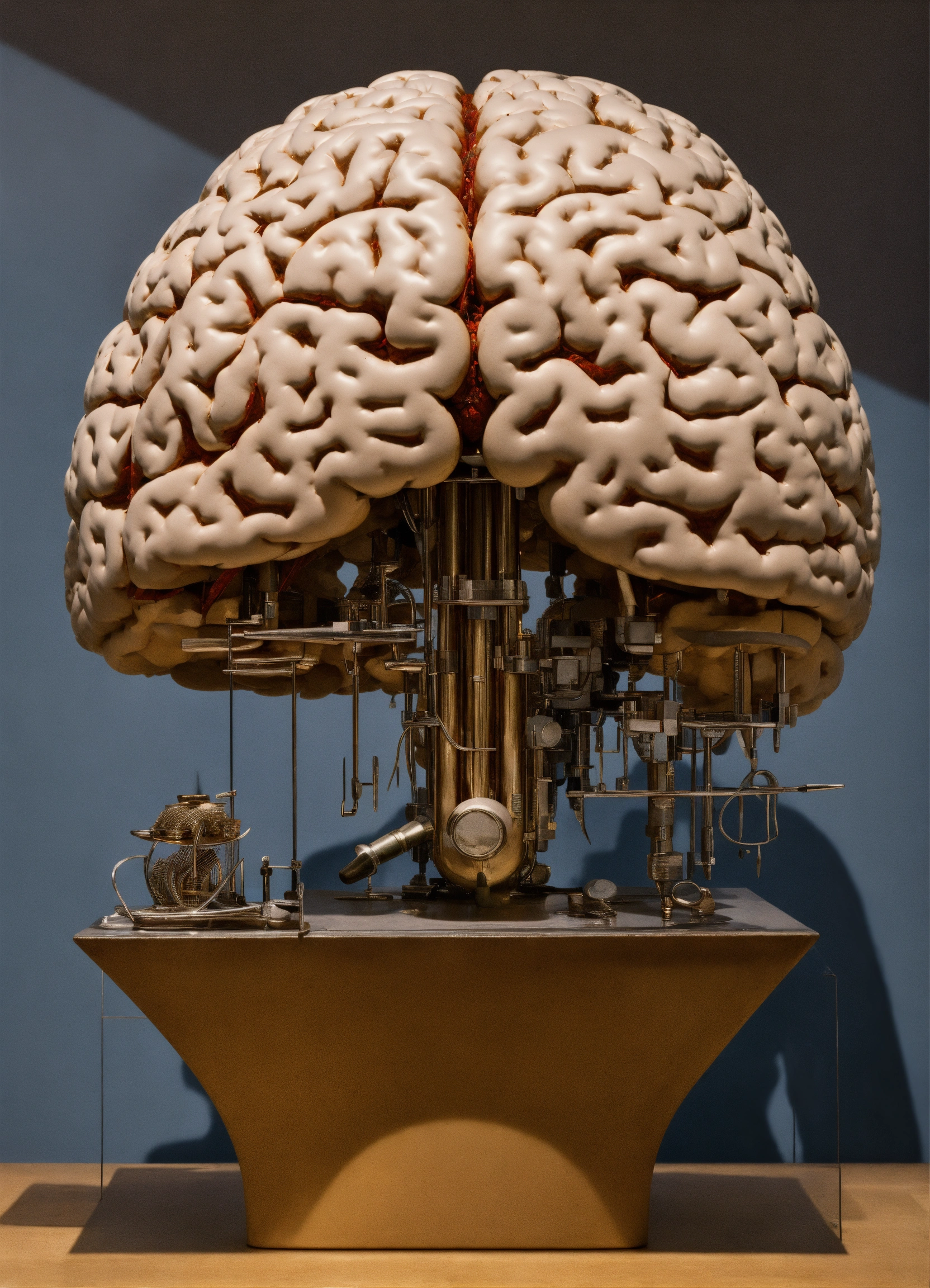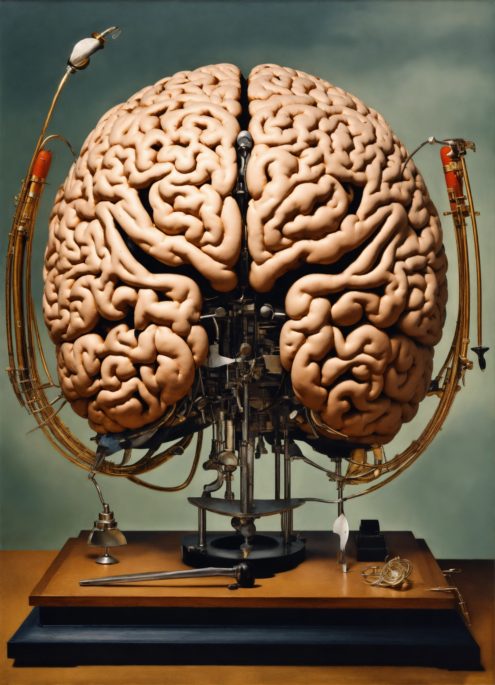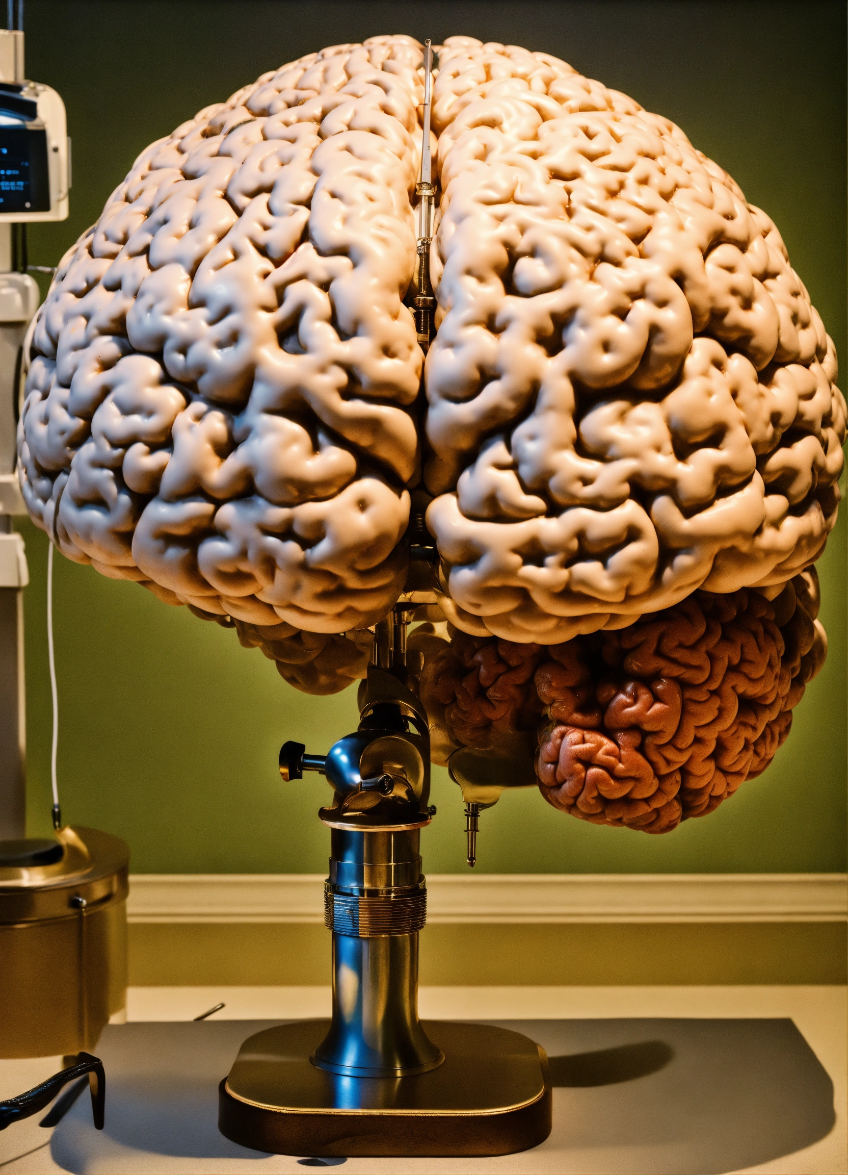 Medium close-up, a huge animal-like brain mixed complex surgical instruments and musicial instruments, surrealism, symbolism, minimalism, lucian freud, rene magritte, salvador dali, realistic photo, 4k realistic photo