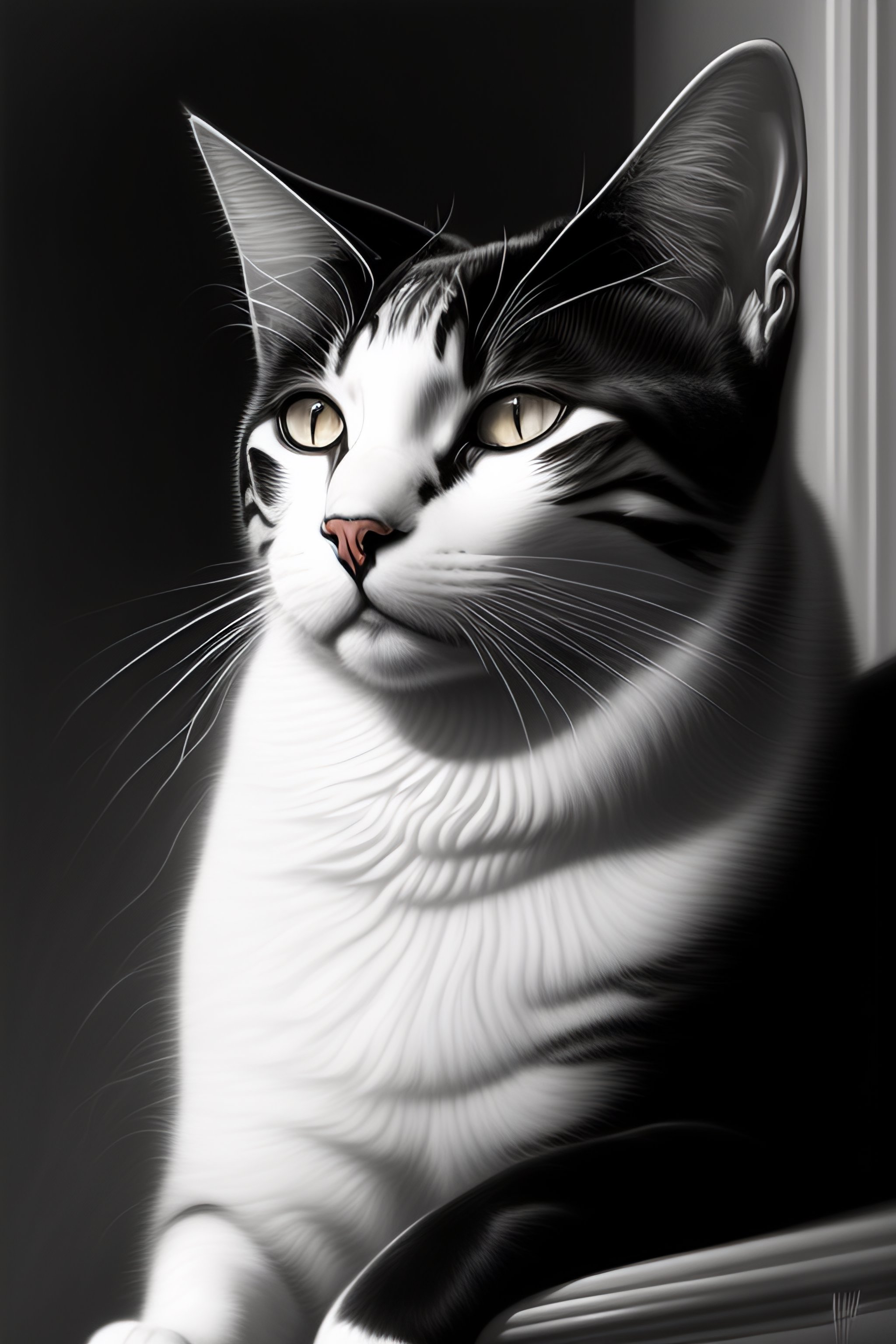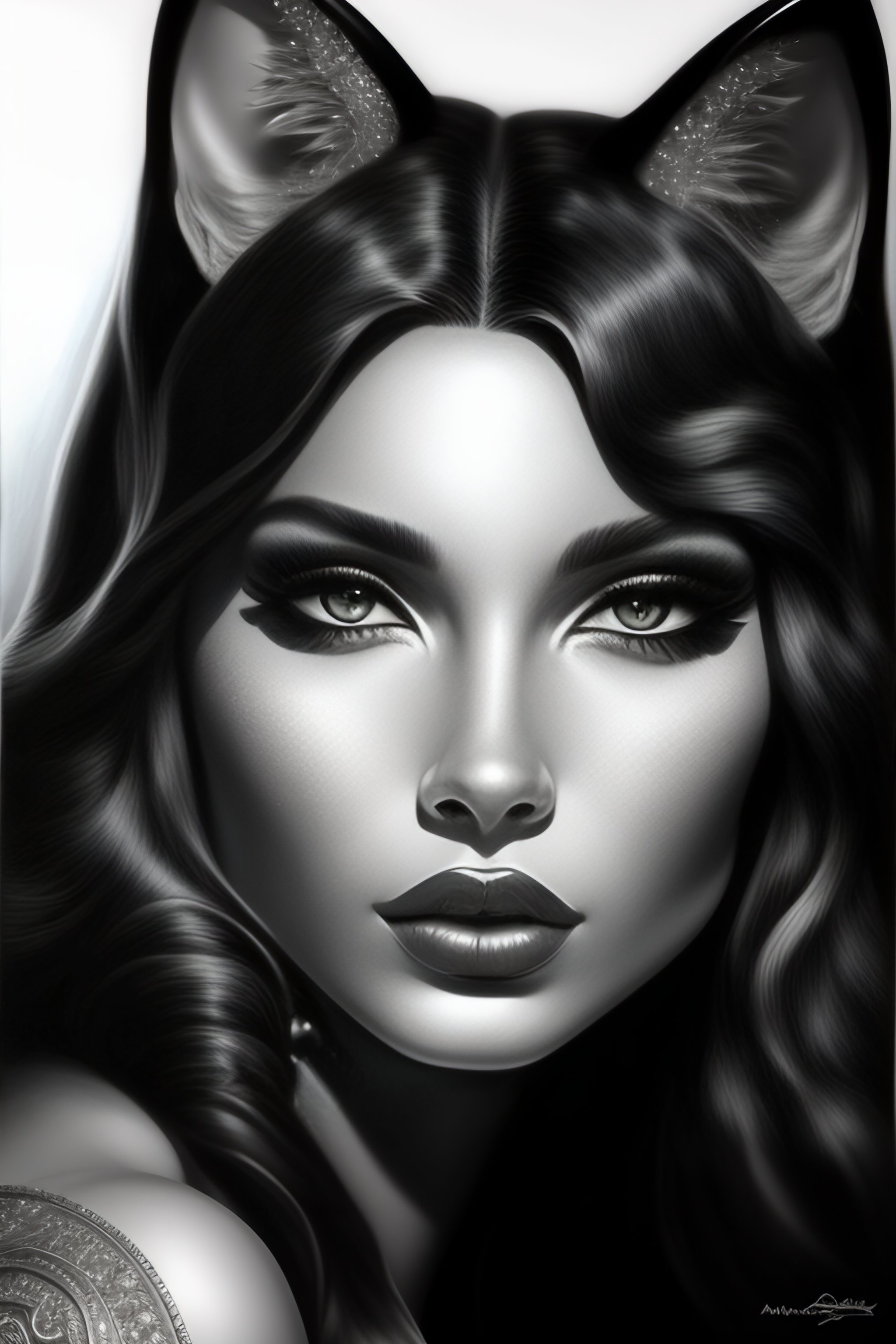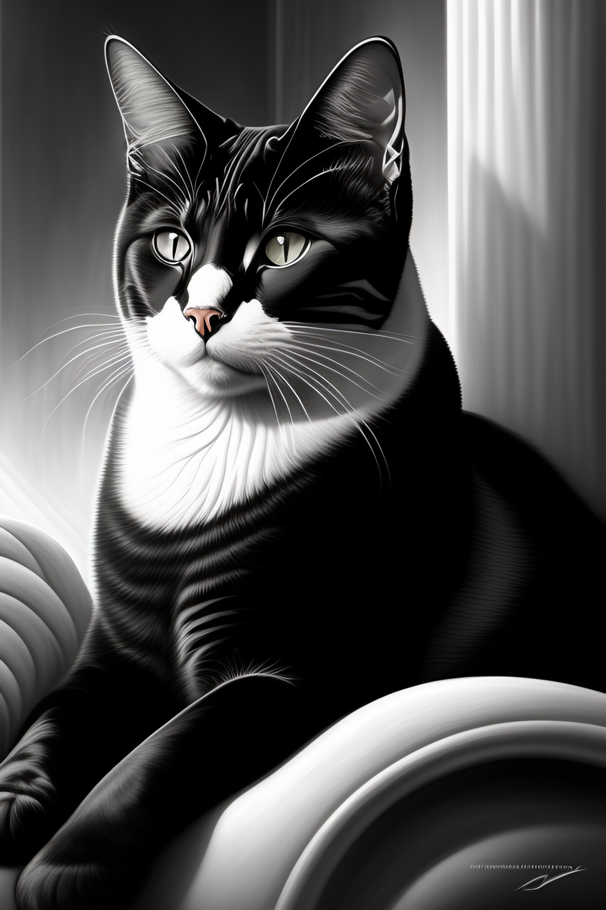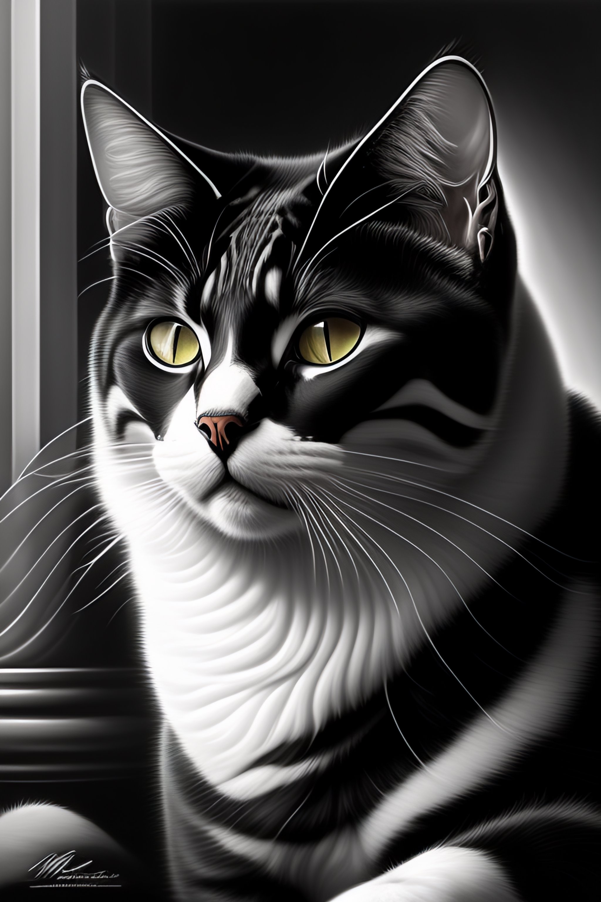A black and white painting of a beautiful cat, an ultrafine detailed painting, by mark brooks, featured on deviantart, fantasy art, detailed painting, deviantart, anime