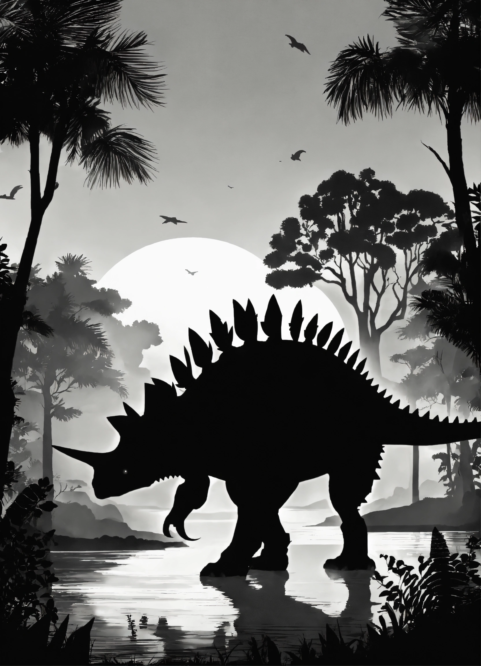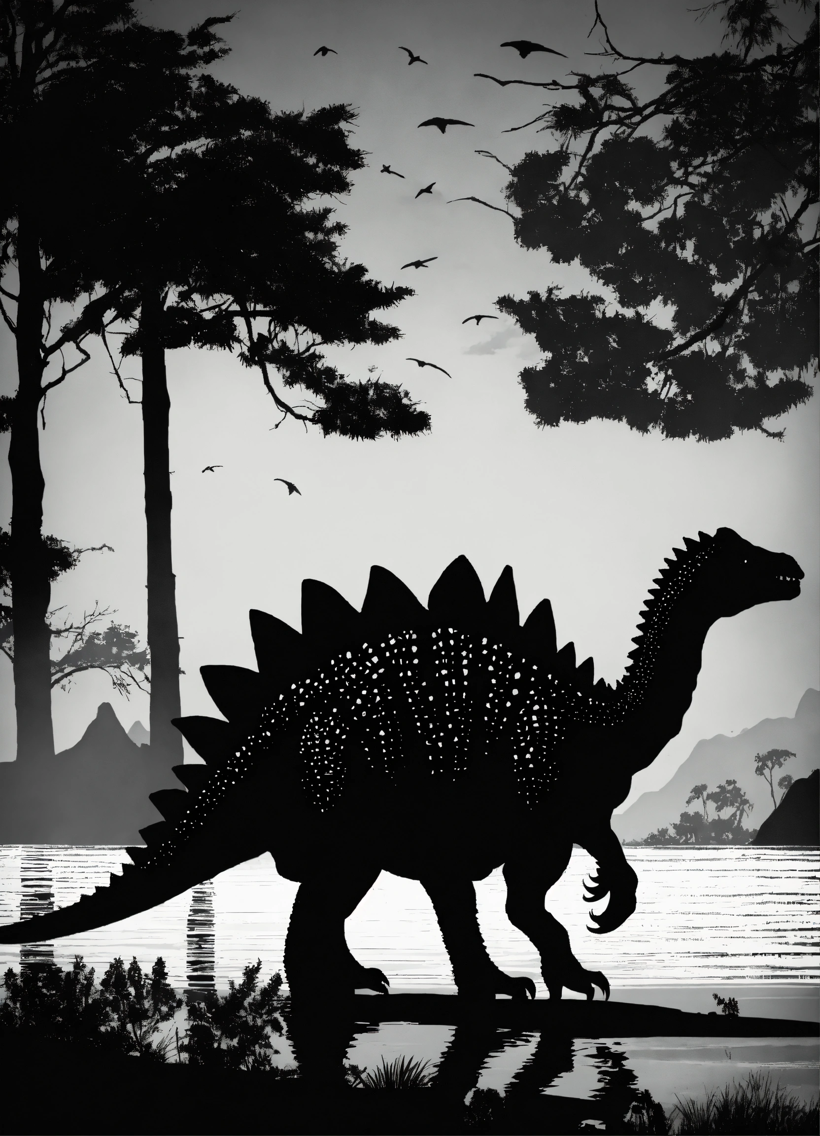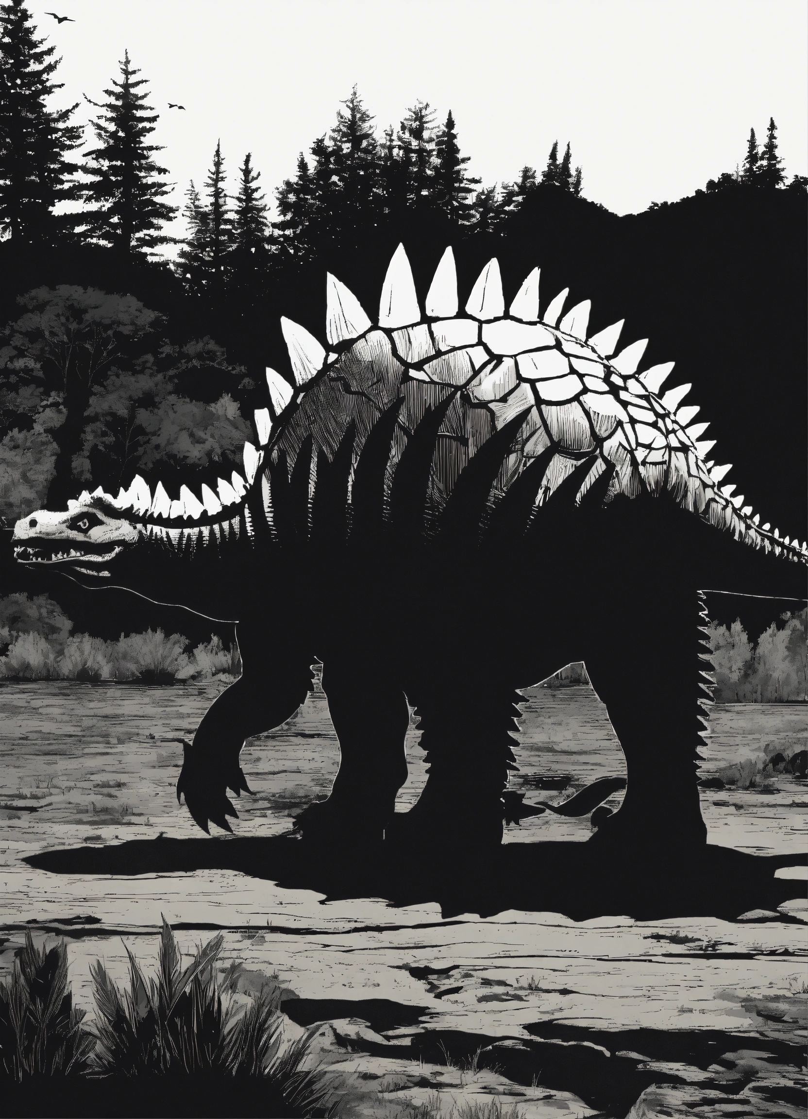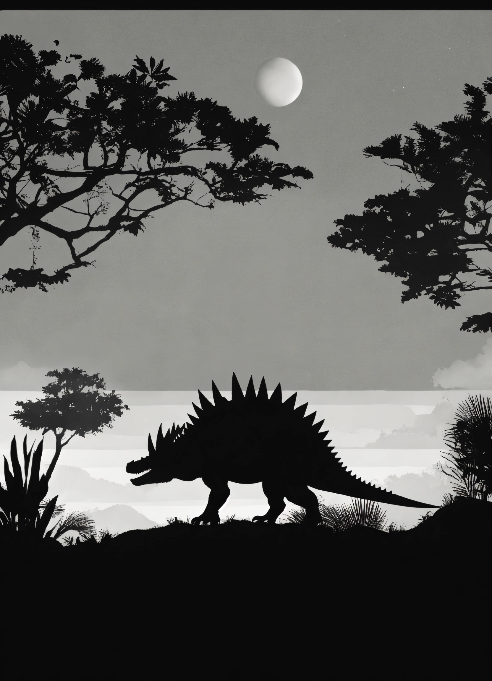 2d stegosaurus dinosaur black and white silhouette