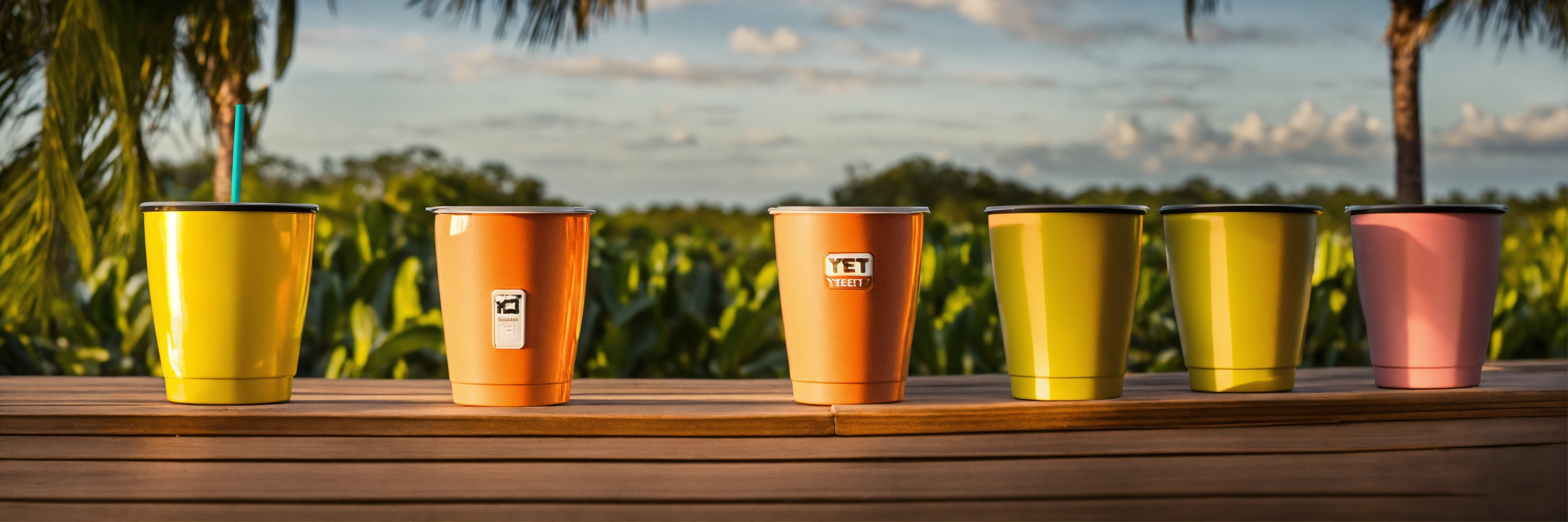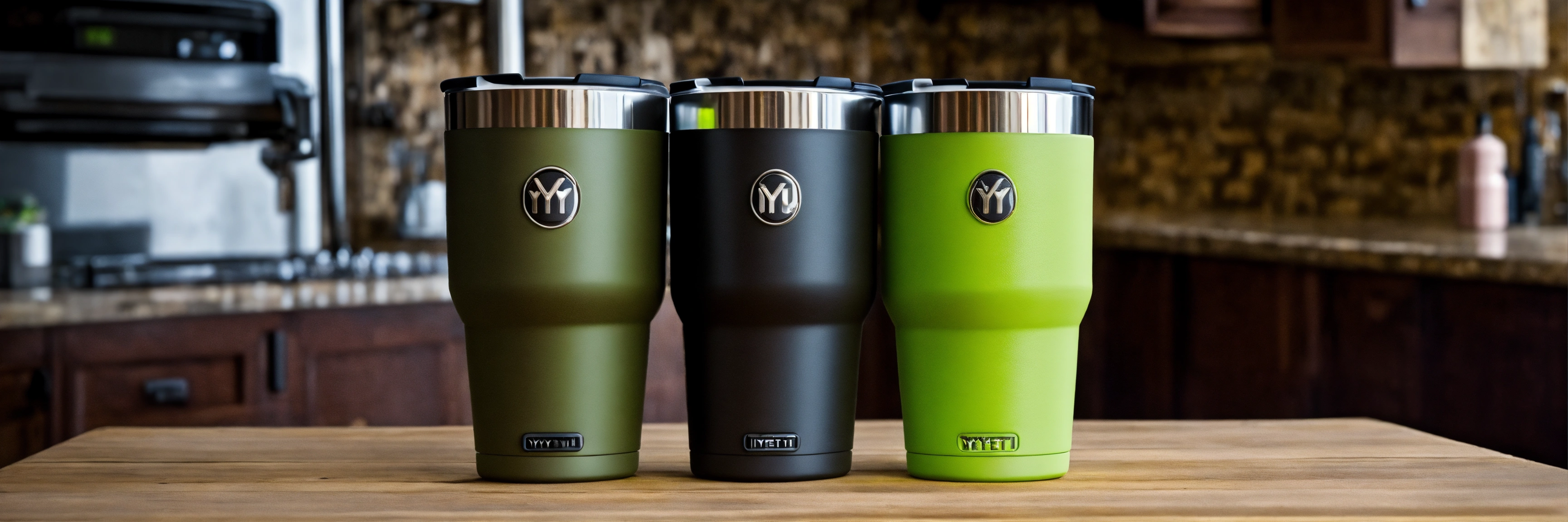 Imagen tipo fotográfica realista de producto de vasos termicos yeti en interiores modernos en mnerida yucatan y haciendas yucatecas