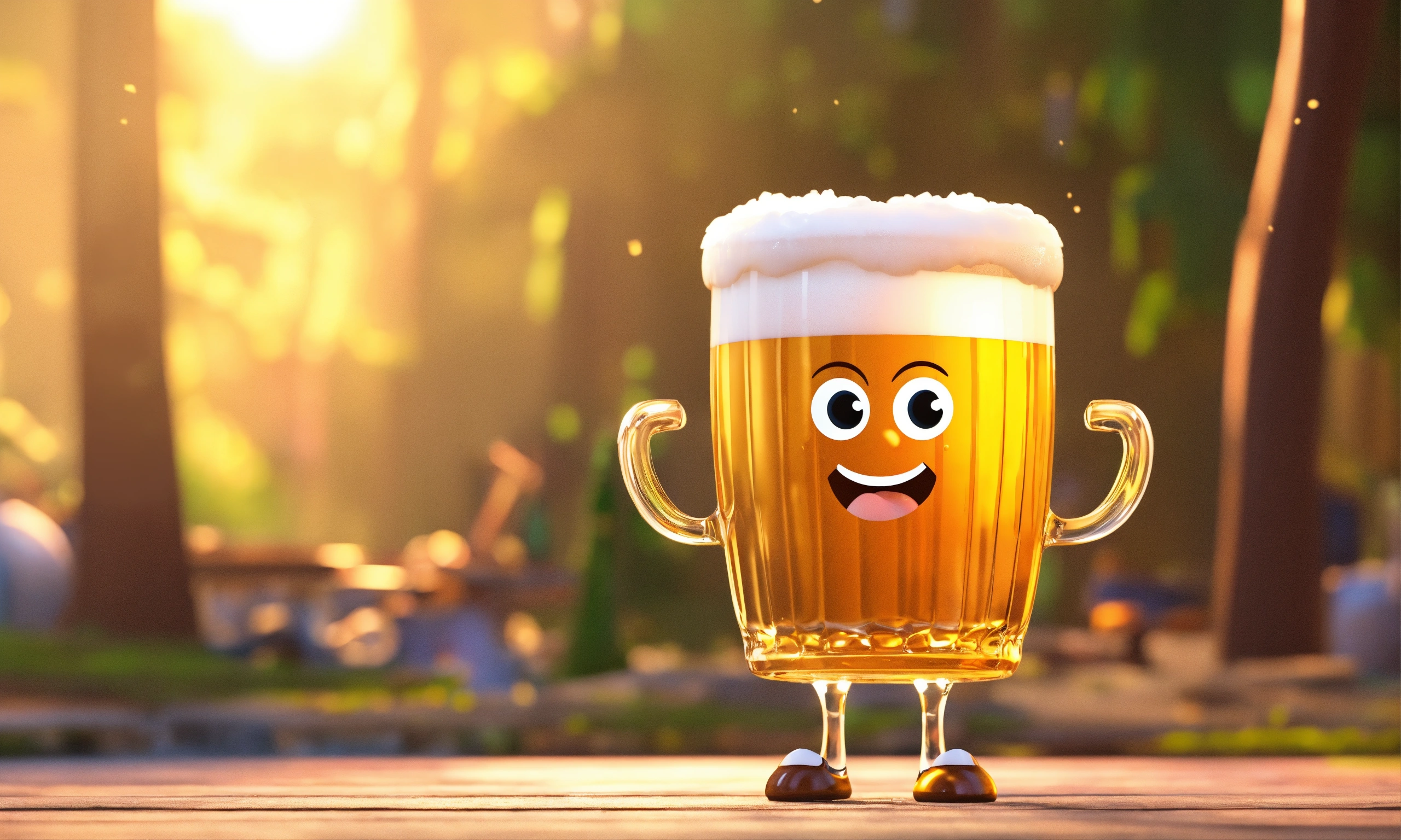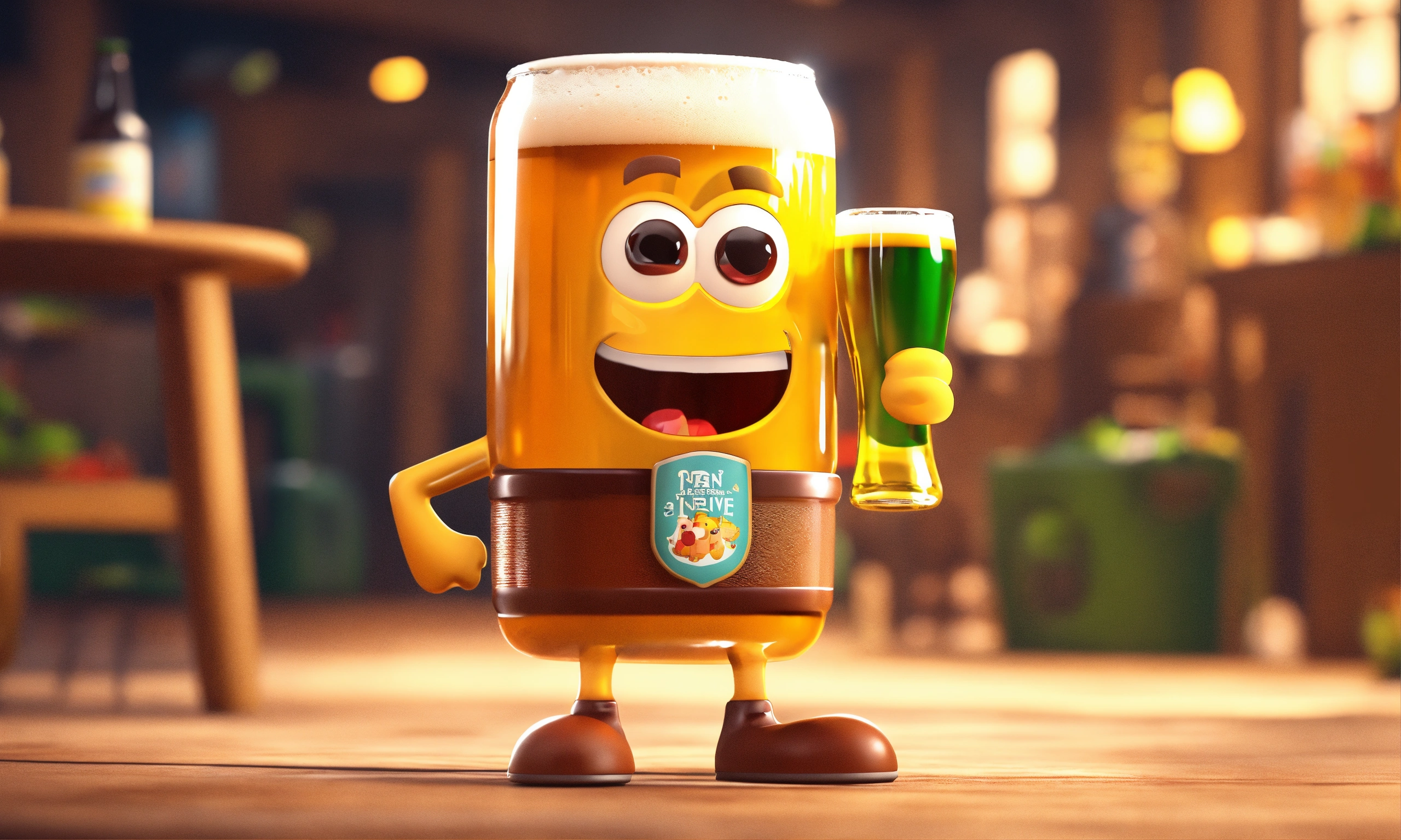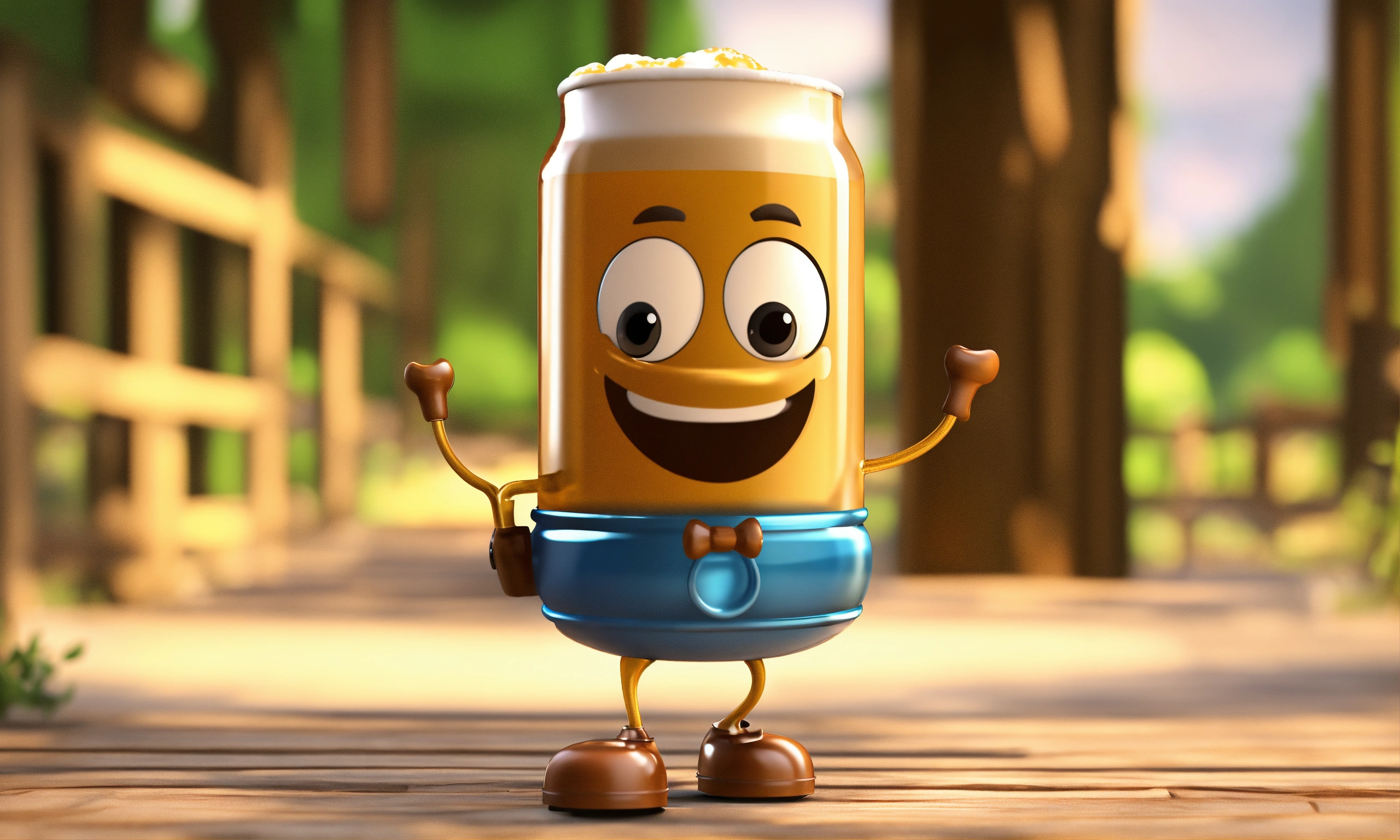 3d animation style cute cartoon beer standing on 2 legs