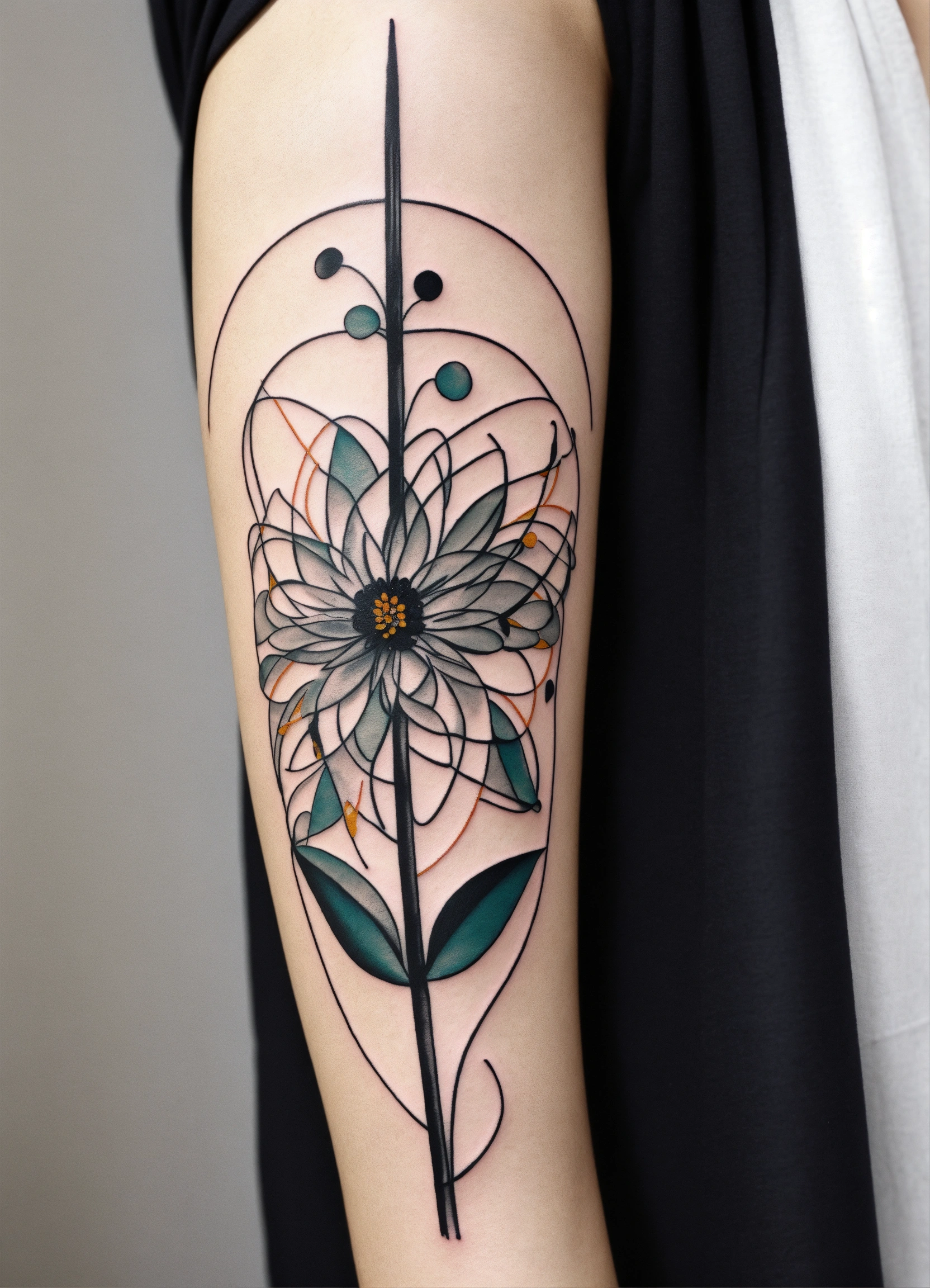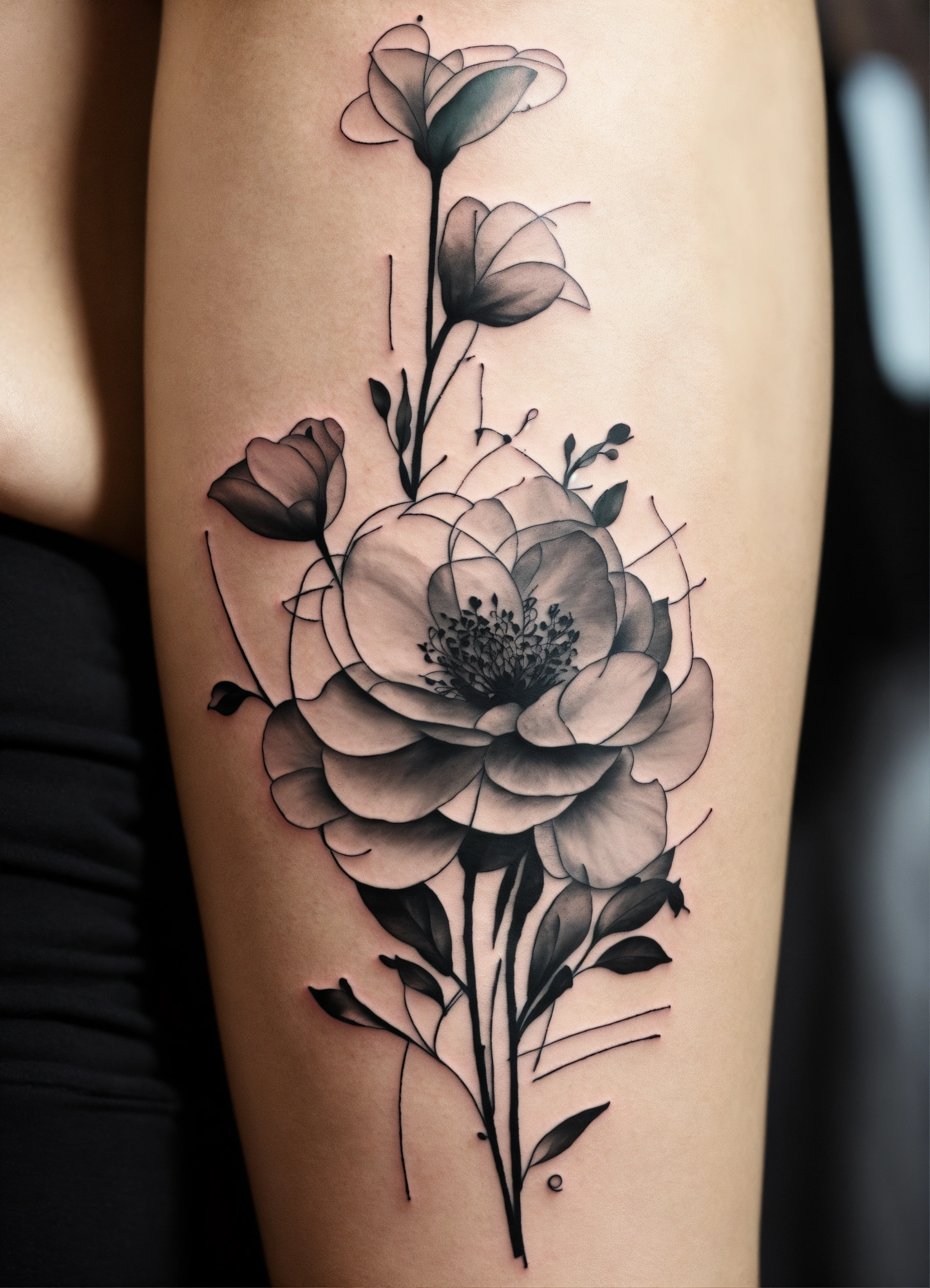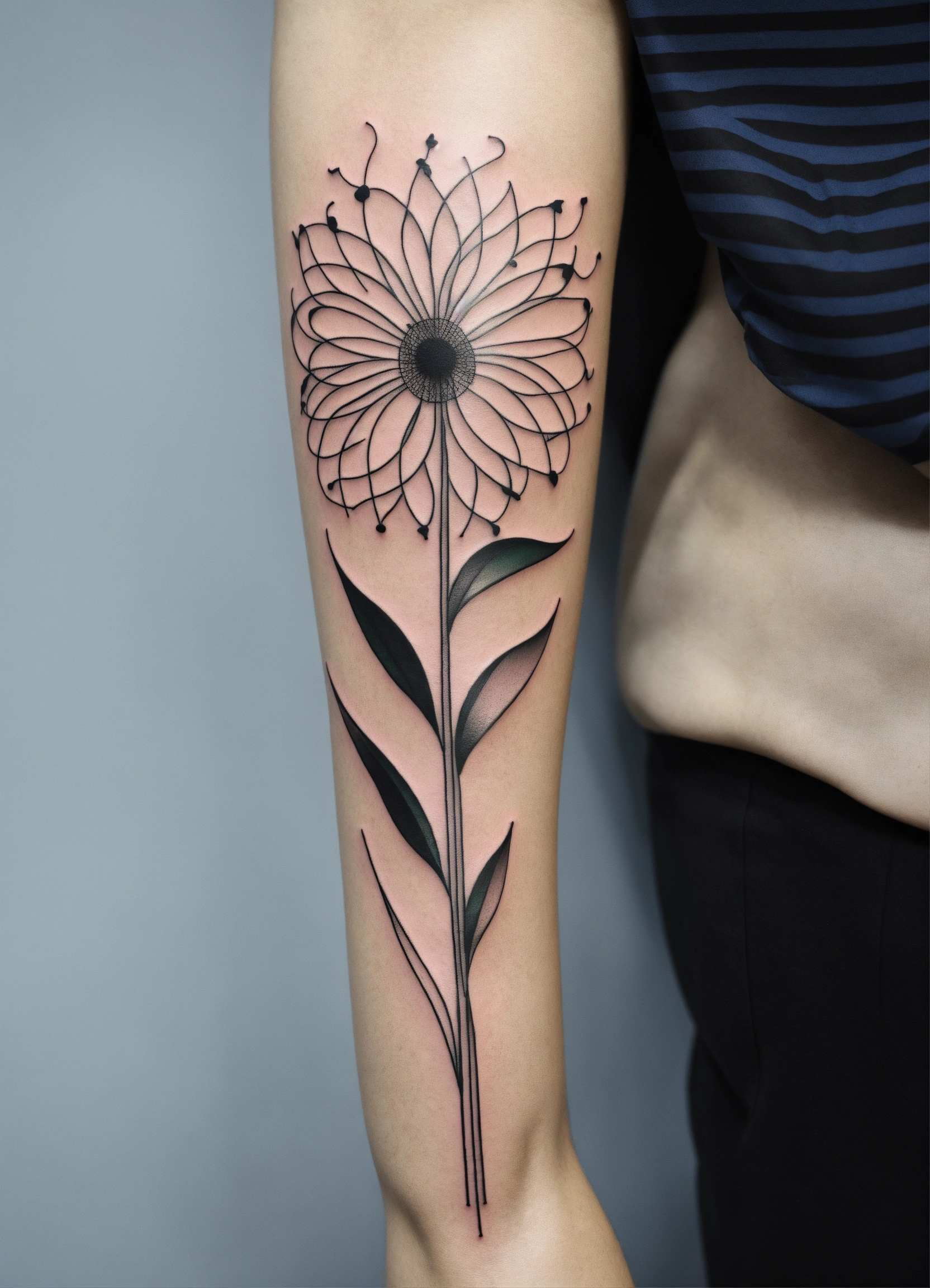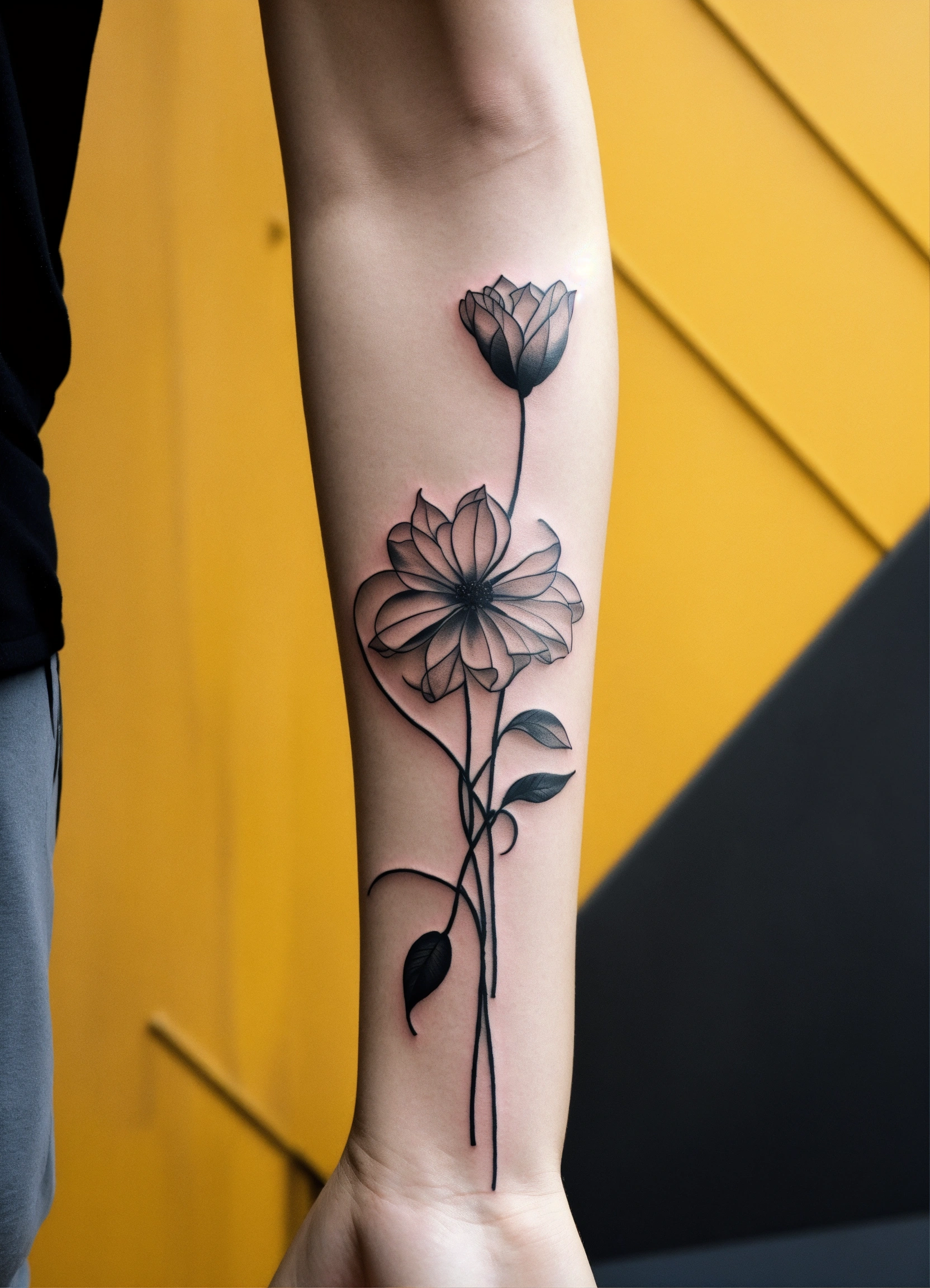 Tattoo dali paris noir gris lignes minimaliste courbes fleurs couleurs arm tattoo