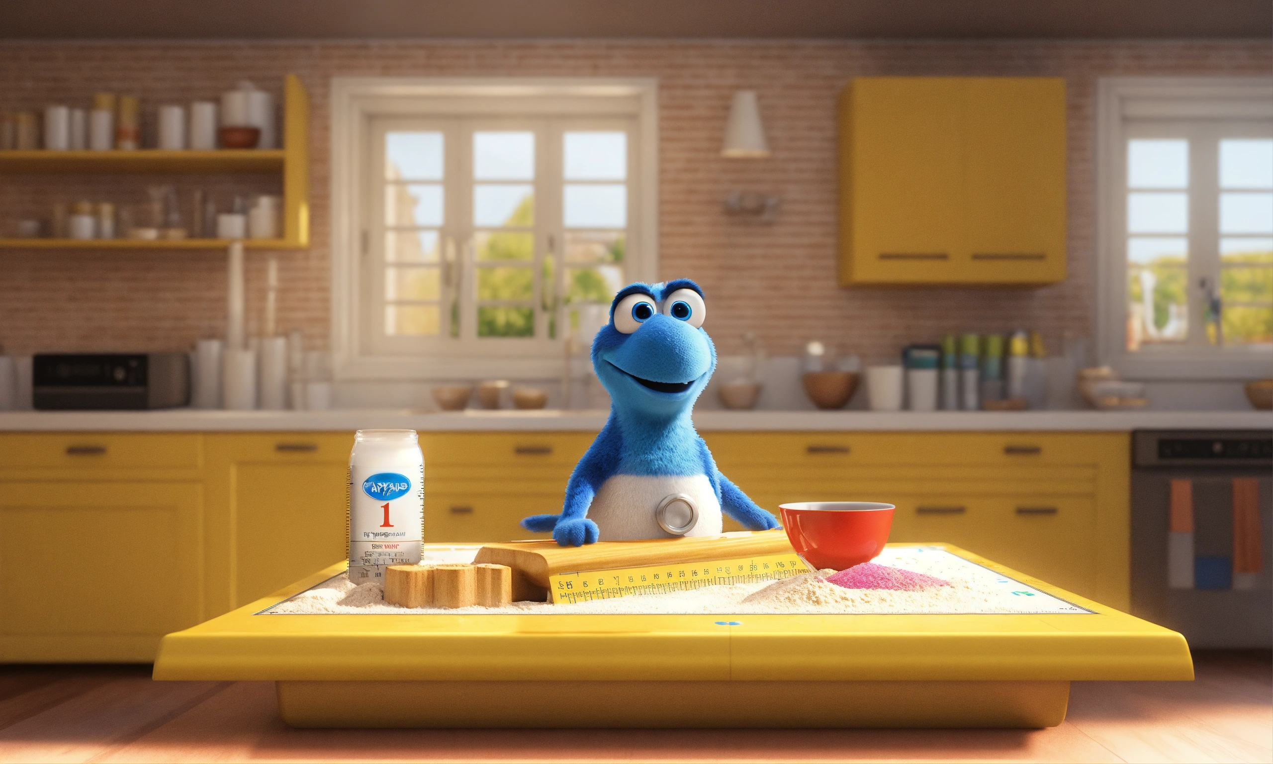 Image of a ruler with clear lines, the '1 cup' line for measuring flour, hyper-realistic, 8k, ultra hd, pixar style, disney style, cinema 4d, --ar 32