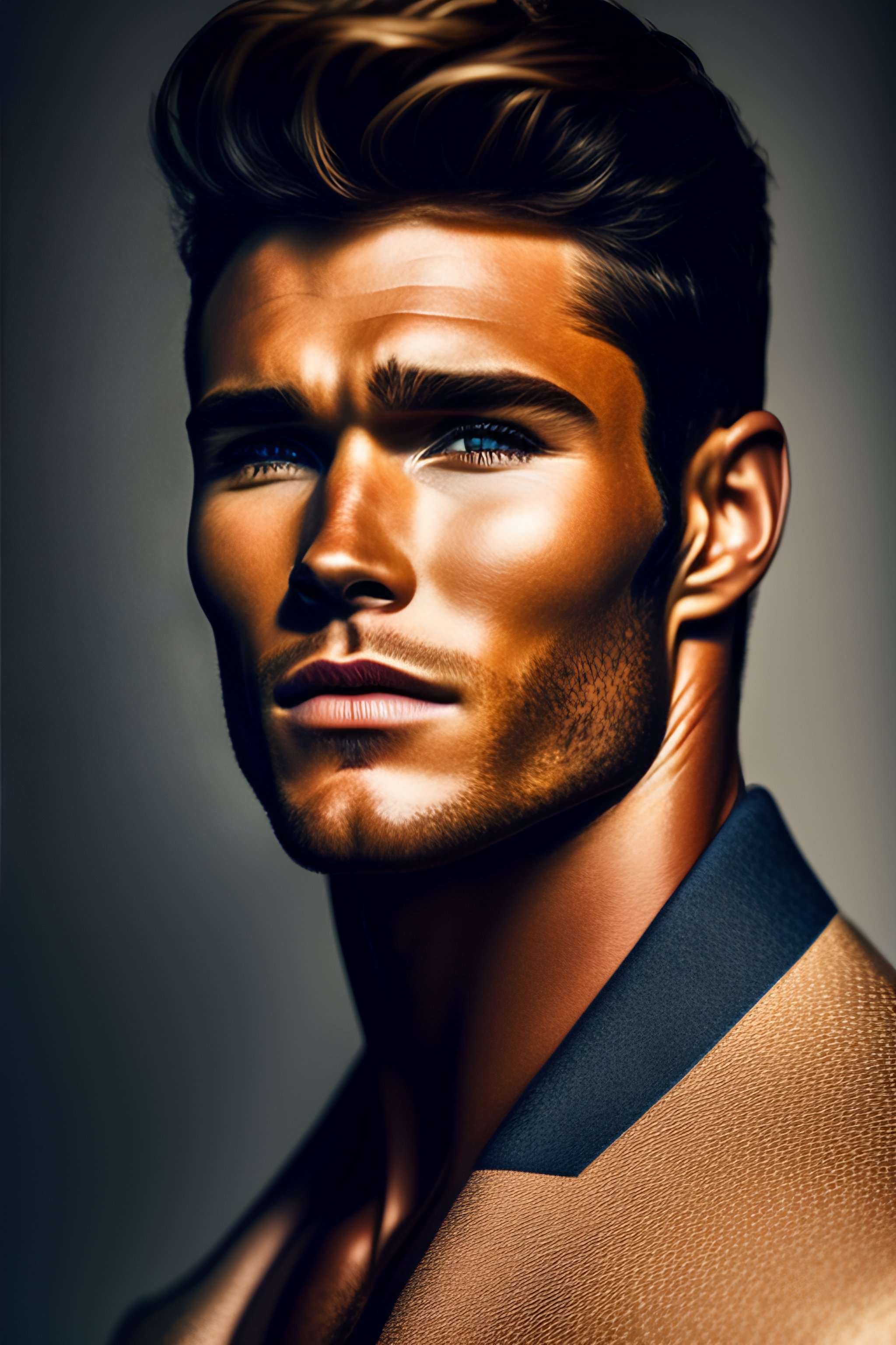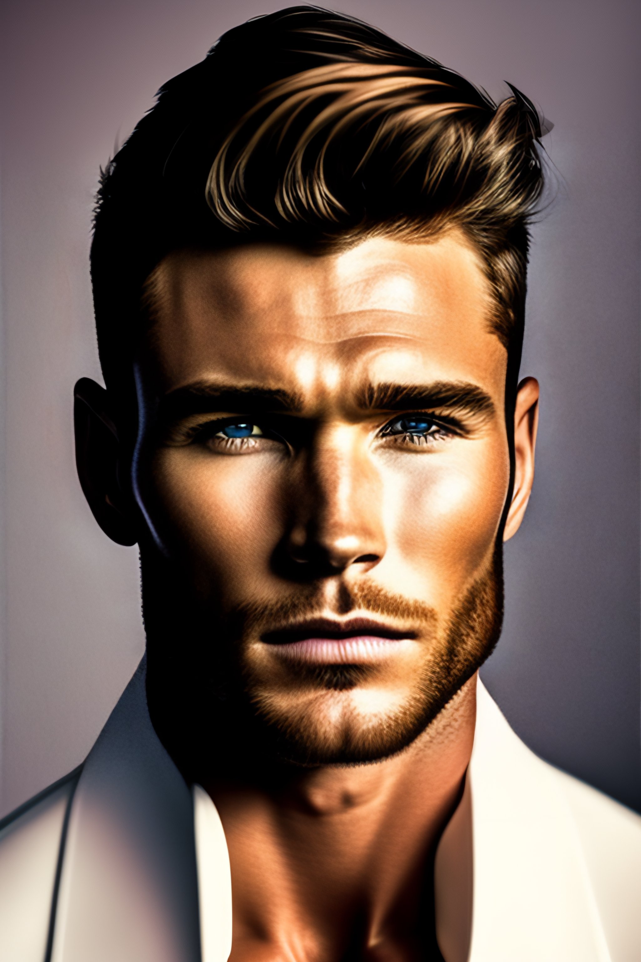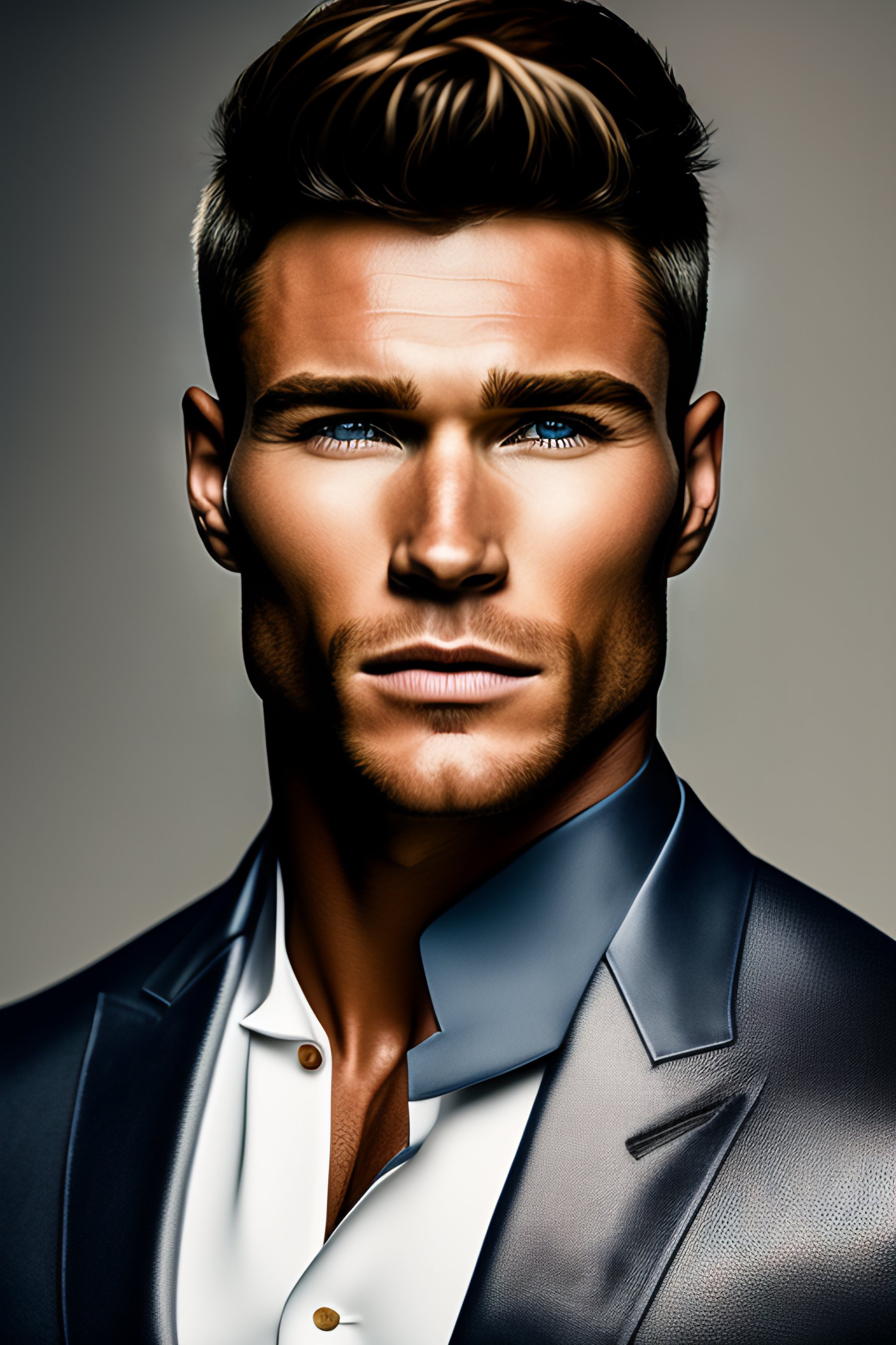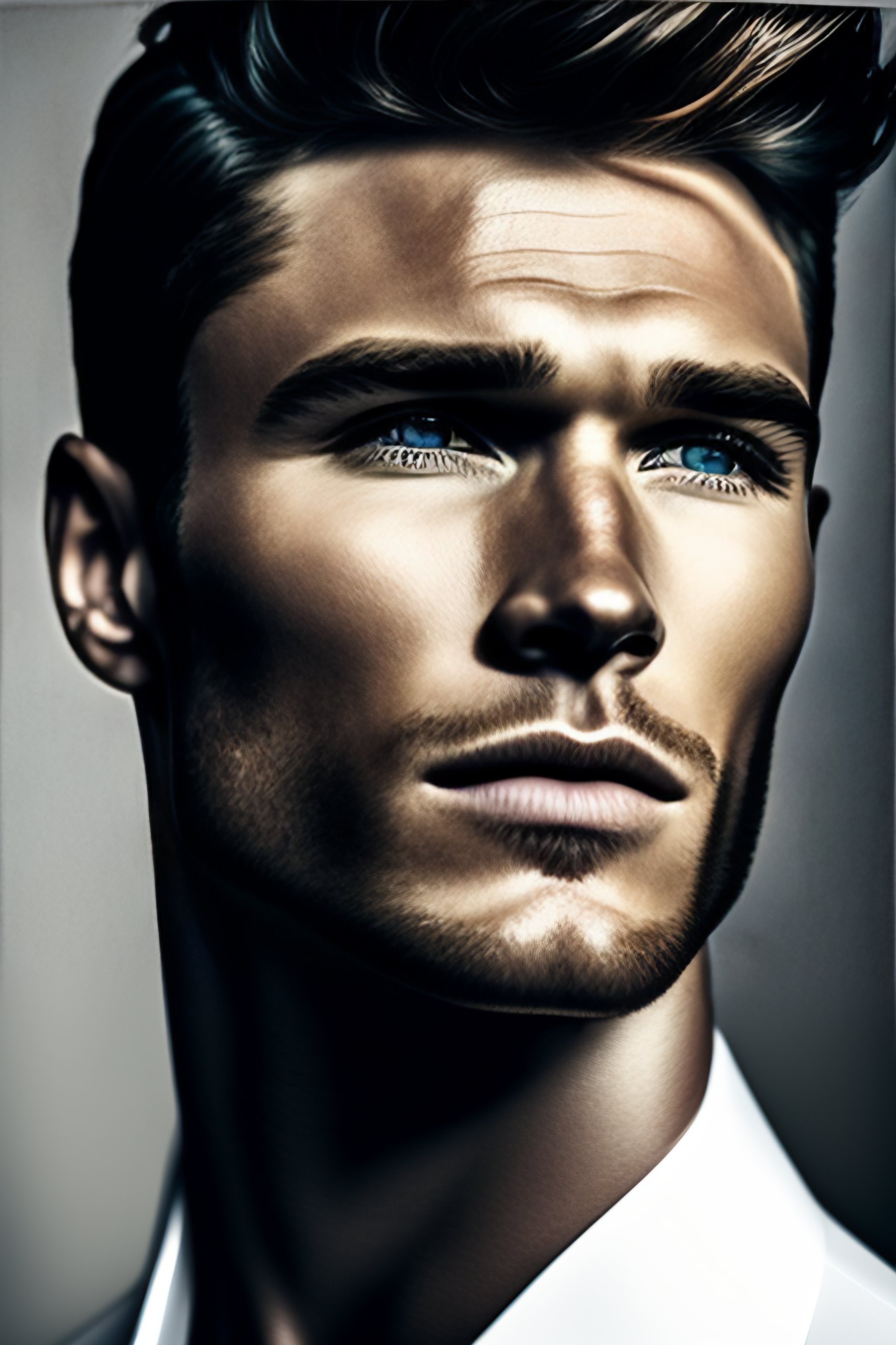 Portrait of scott eastwood, fashion editorial, studio photography, magazine photography, pointed nose, blurry background