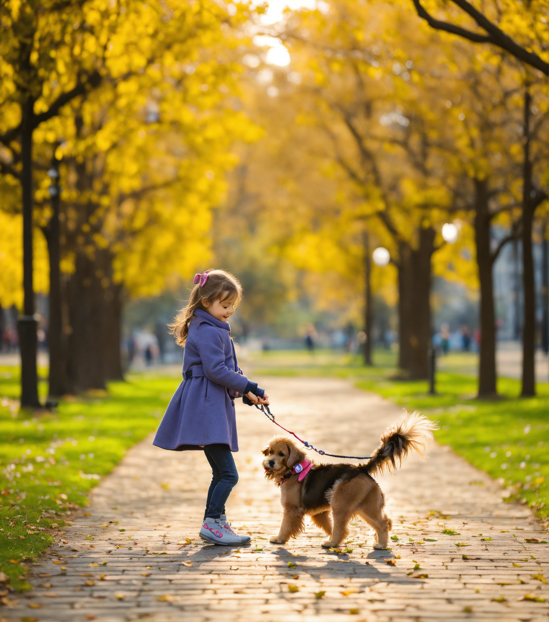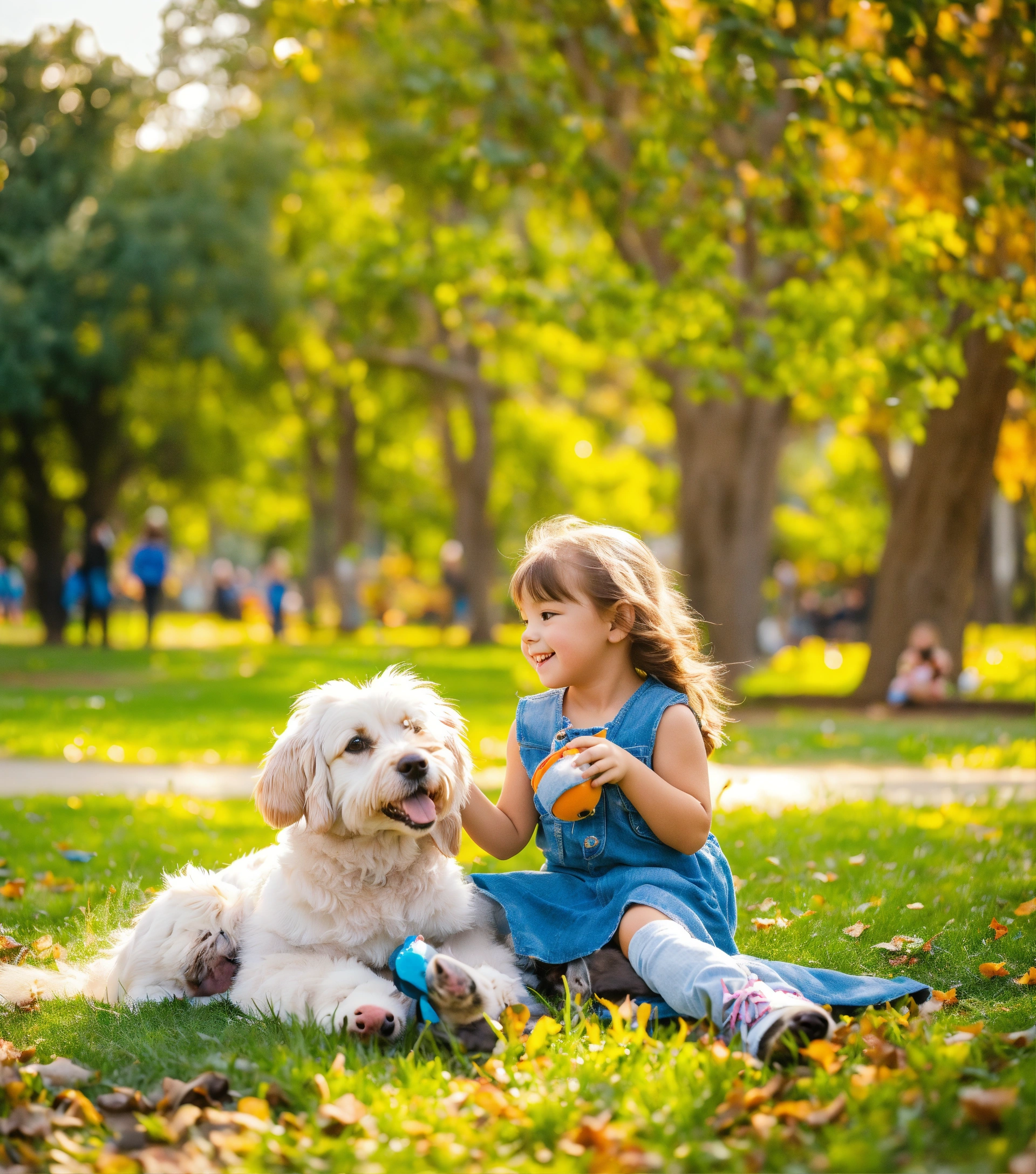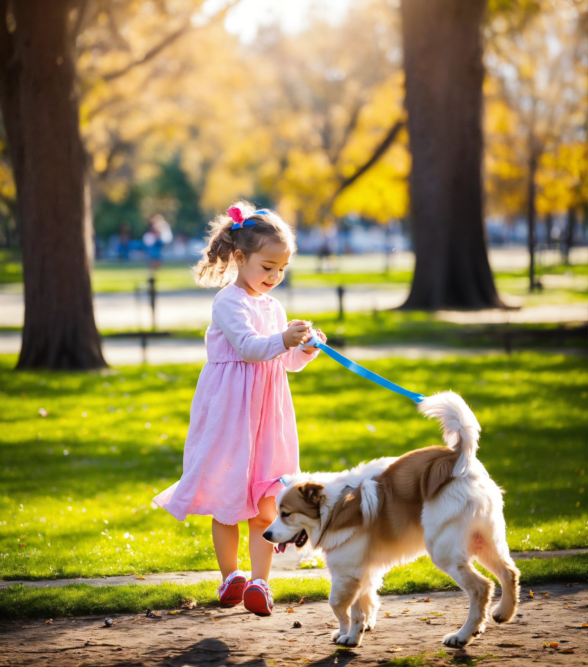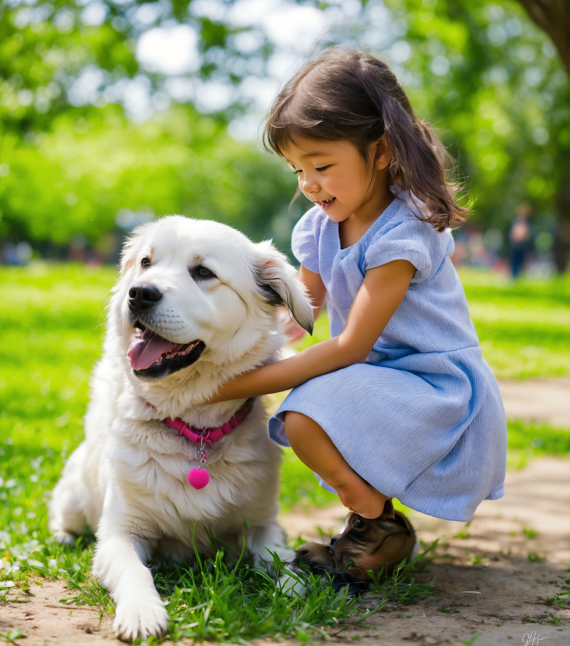 Little girl plays with her dog in the park